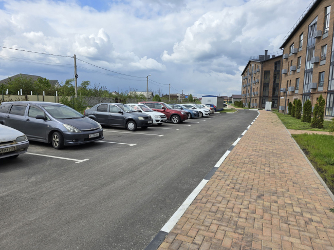 Парковочные места расположены по периметру квартала, проезд во внутренний двор предусмотрен только для спецтехники, что обеспечивает безопасность и тишину в жилой зоне.