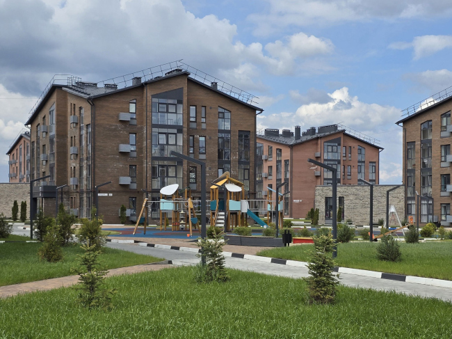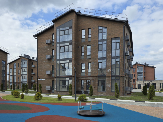 Архитектурные решения включают четырёхэтажные дома с лифтами, на этажах расположено по 6–7 квартир. В качестве конструктива используются: крупноформатные керамические блоки – энергоэффективность + экологичность, и сборные железобетонные перекрытия – скорость строительства + идеальная геометрия.