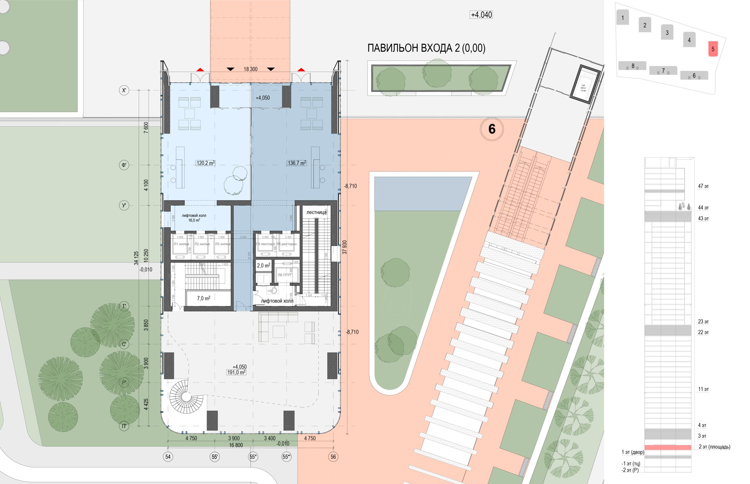 Victory Park Residences. План 2 этажа (площадь входа) на отметке +4,050