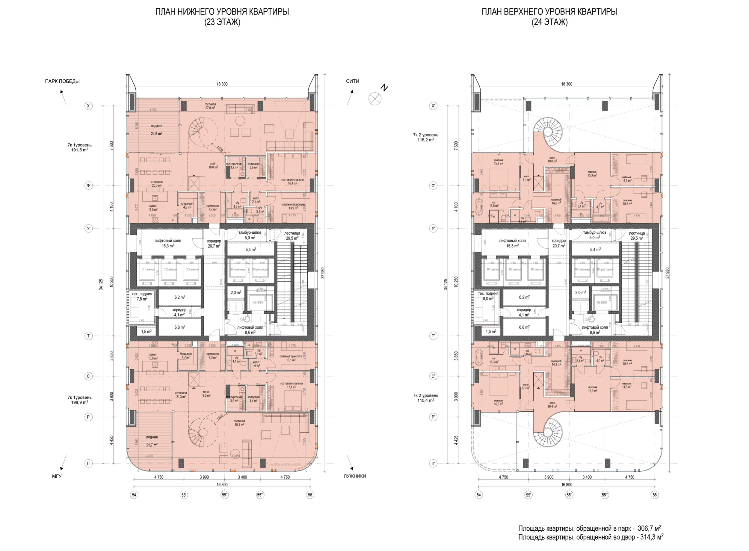 Victory Park Residences. План 23-42 этажа (двухуровневые кваритиры)