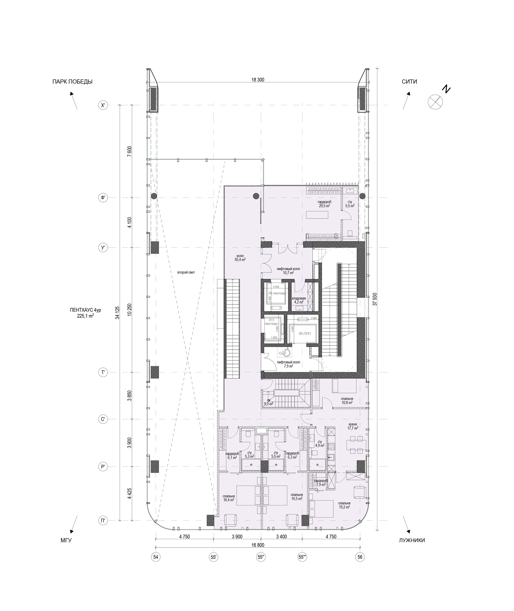 Victory Park Residences. План 50 этажа (пентхаус 4 уровень) на отметке +