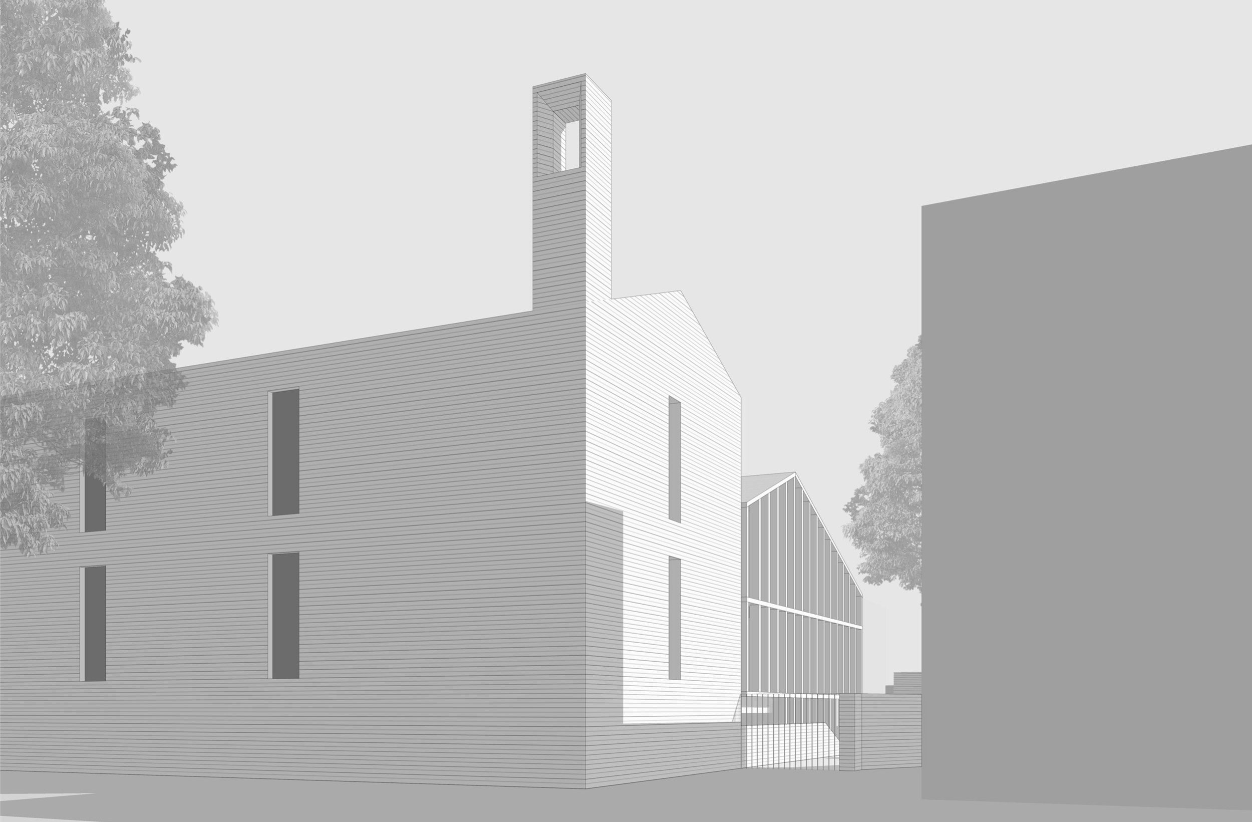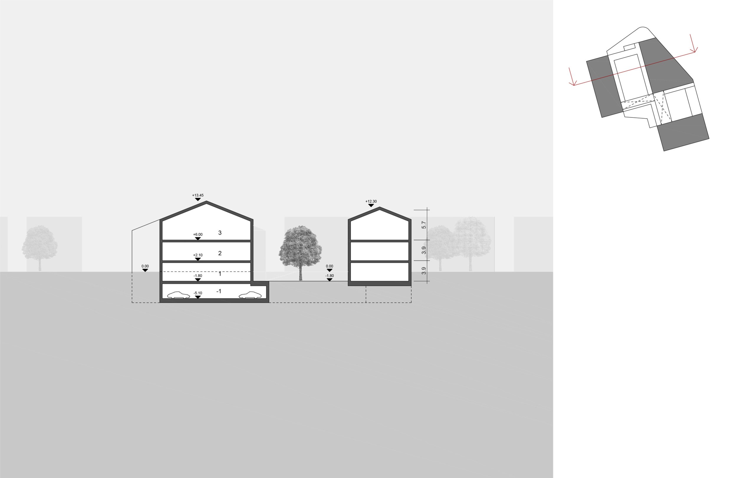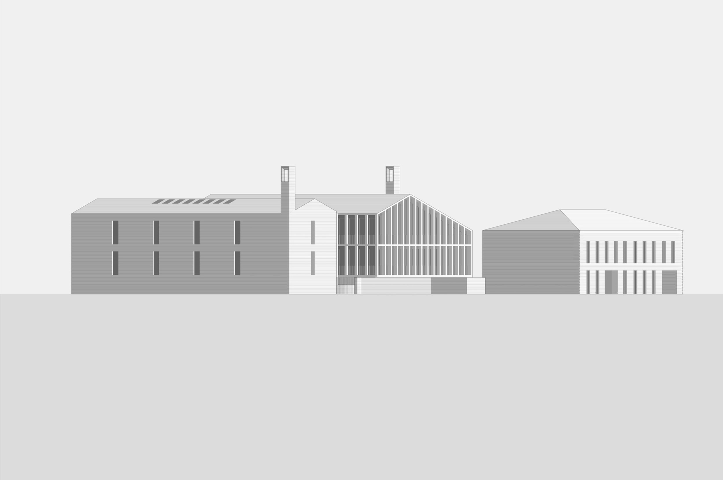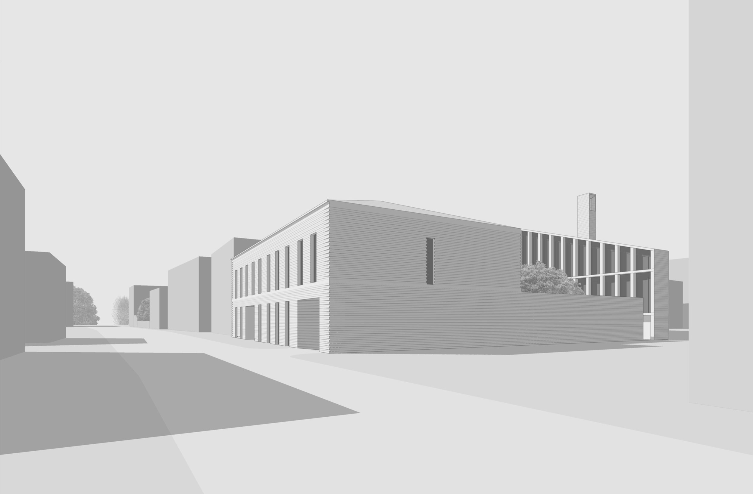 Два 3-этажных корпуса в глубине участка расположены вокруг центрального ландшафтного пространства. Их общий архитектурно-пространственный облик определяется вытянутой с юга на север формой и силуэтом скатных крыш.