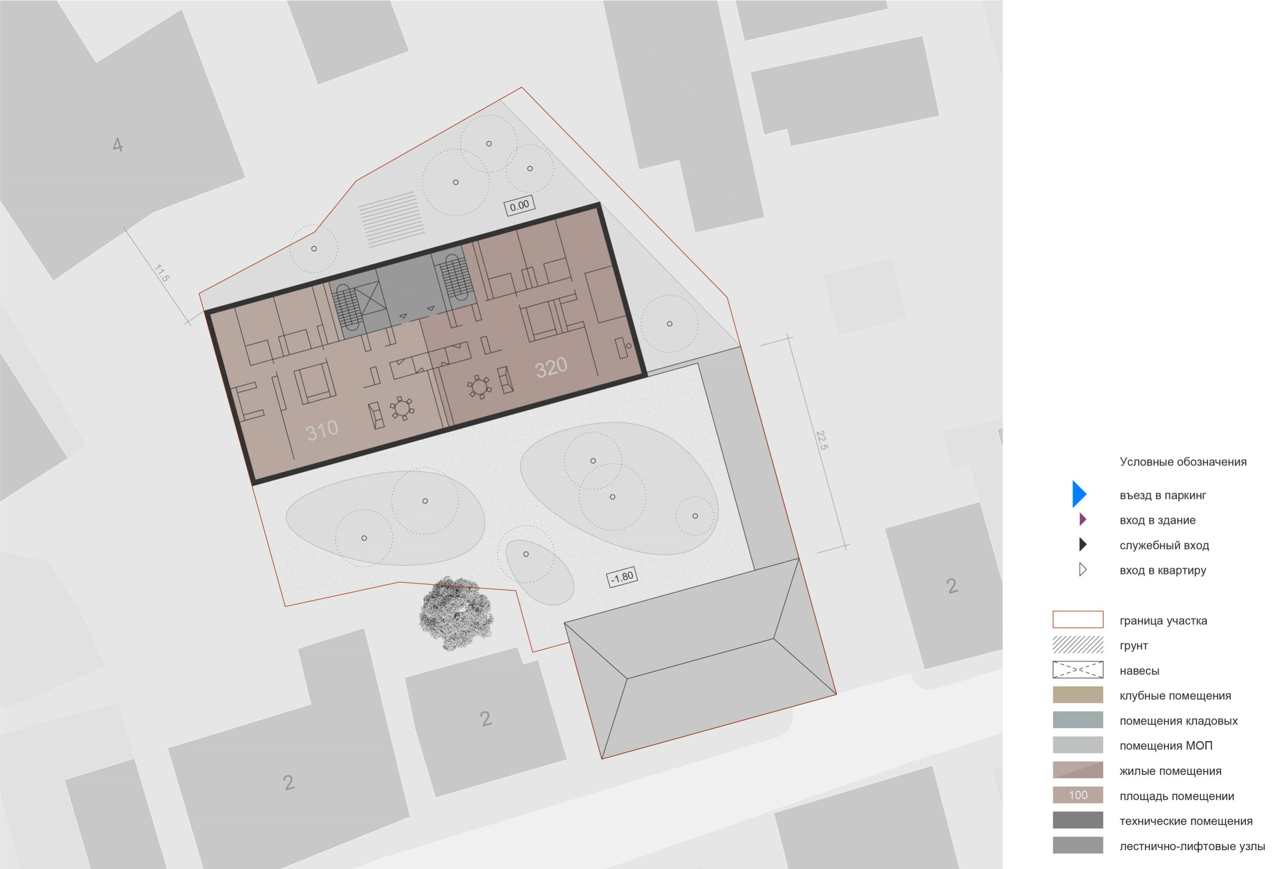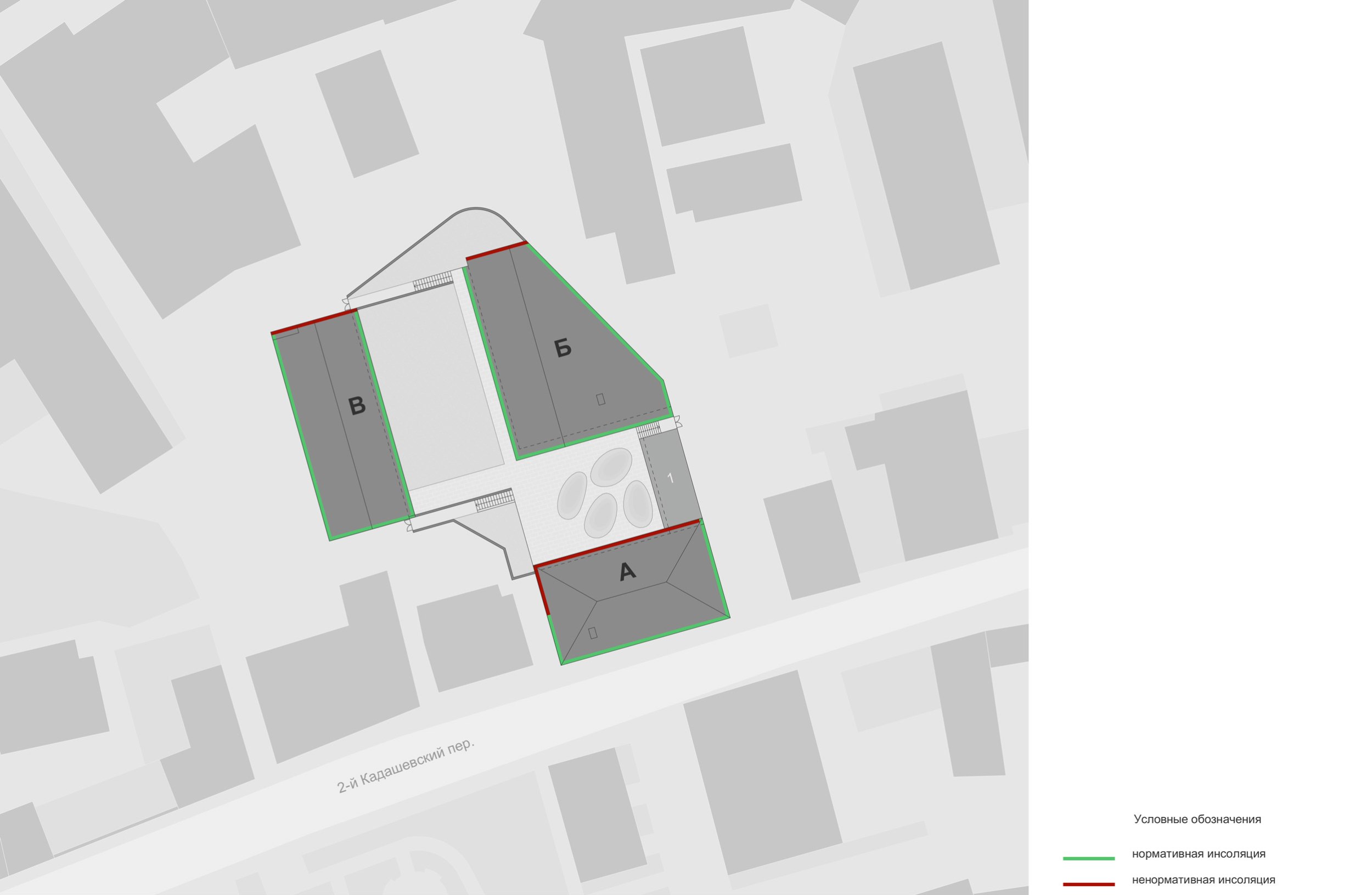 С южной стороны участок выходит на 2-й Кадашевский переулок. С севера и запада к границам примыкает 2–4-этажная административная застройка, с востока – производственная территория. В целом окружение отличается неоднородностью по этажности и функциональному назначению объектов.