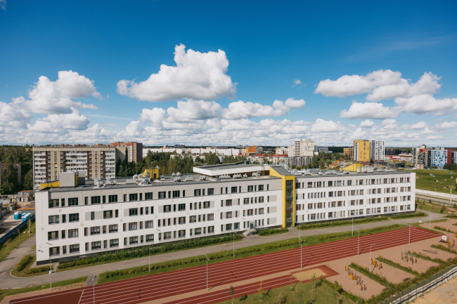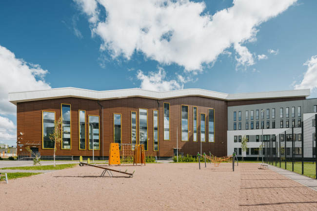 Описание предоставлено архитекторами Чтобы найти оптимальное направление, бюро провело внутренний конкурс идей, который позволил выявить не только самую удачную концепцию, но и набор решений, определивших принципы работы над подобным типом зданий. А... читать дальшеШкола Гатчина