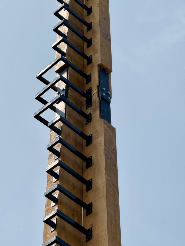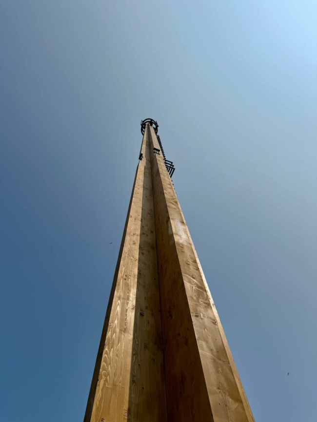 Ежегодно России требуется тысячи новых вышек, особенно в отдалённых регионах. Сокольский ДОК (Segezha Group) создал 20-метровую мачту из клееной древесины – два 10-метровых модуля. Проект разработан компанией «Норвекс Арт» с техническим надзором. Она на 30% легче металлических, поэтому проще доставка в труднодоступные районы. Кроме того, конструкция дешевле в производстве и экологичнее (углеродный след ниже на 40%).