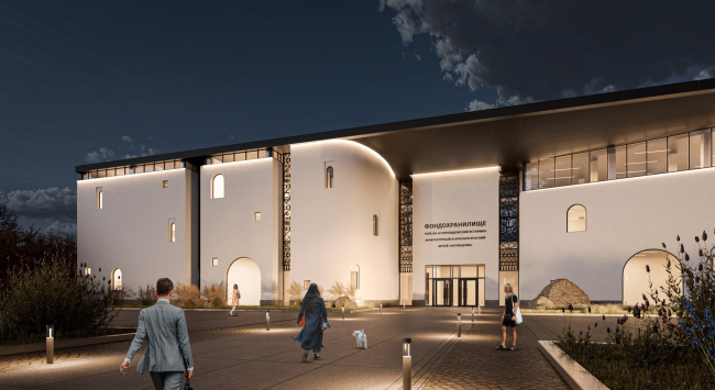В архитектурном образе концепции фондохранилища отражено стремление авторов к символике форм и историческим аллюзиям, выраженным в пластике элементов фасада, отсылающих к древнерусскому зодчеству. В качестве конструктивной схемы здания выбран железобетонный каркас.