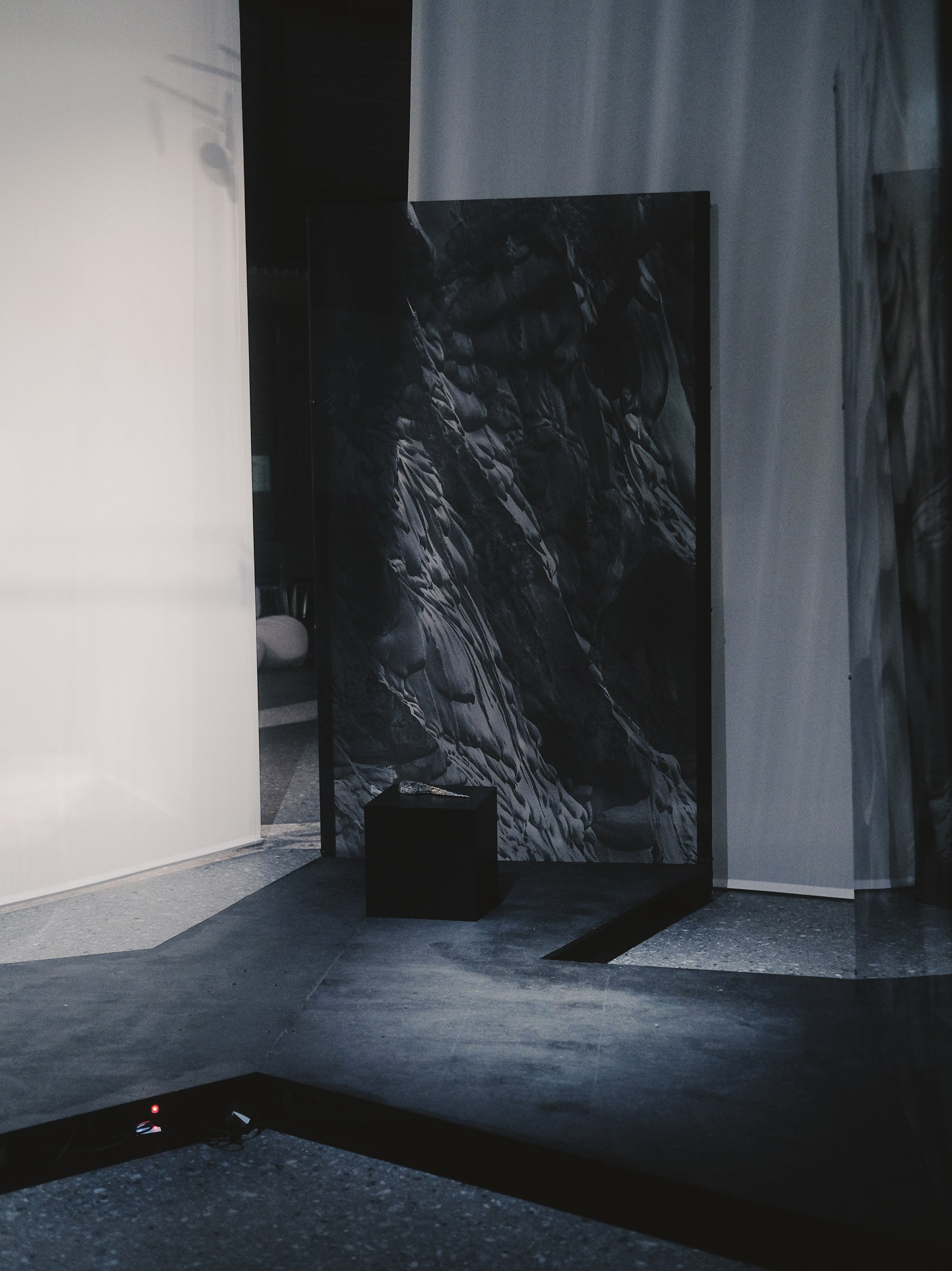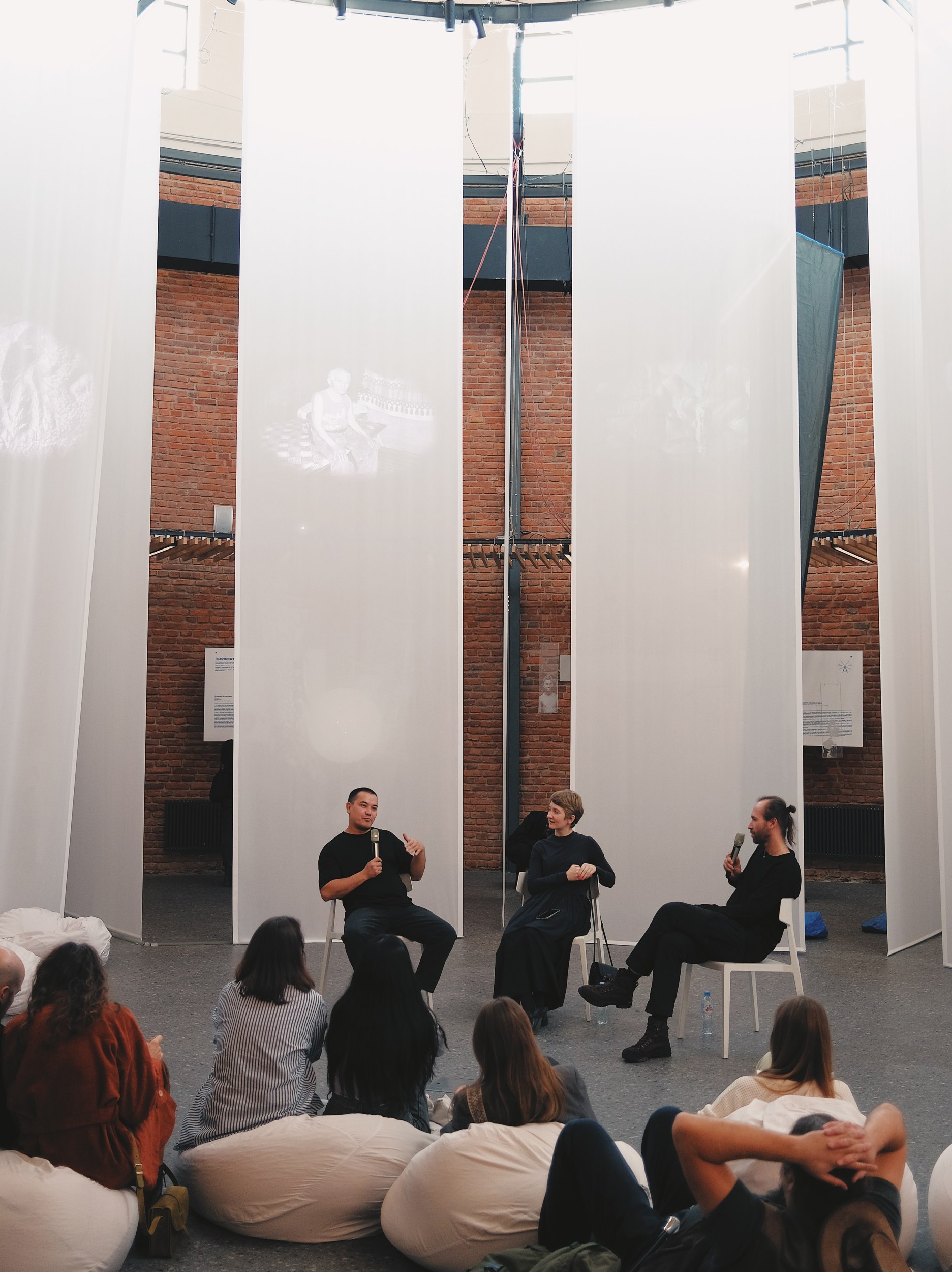 Чтобы создать условия, в которых посетитель мог бы воспринимать элементы выставки и по отдельности, и в единстве концепции, команда архитектурного бюро KLAUZURA совместно с кураторами Марией Туркиной и Полиной Слепенковой подобрала образ ячеистого пространства, разделённого на тематические сектора мягкими, бескаркасными перегородками из ткани, напоминающей вуаль. Это решение позволило выполнить две разнонаправленные задачи и стало равнодействующей силой между ними. В результате каждому автору был предоставлен свой «угол» для знакомства со зрителем, а у каждого посетителя появилась возможность планомерно и размеренно погрузиться в разные идеи – по отдельности, но всё ещё в одном общем пространстве.