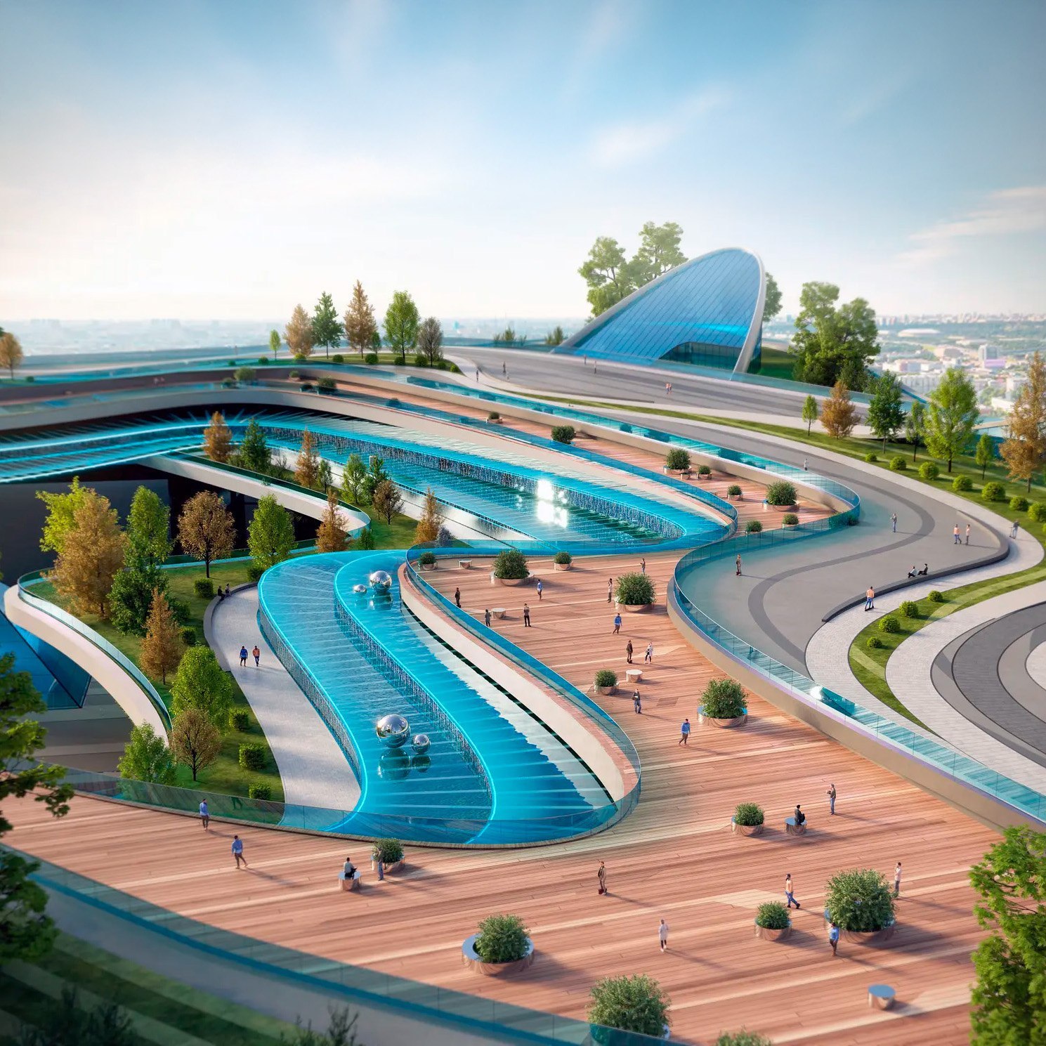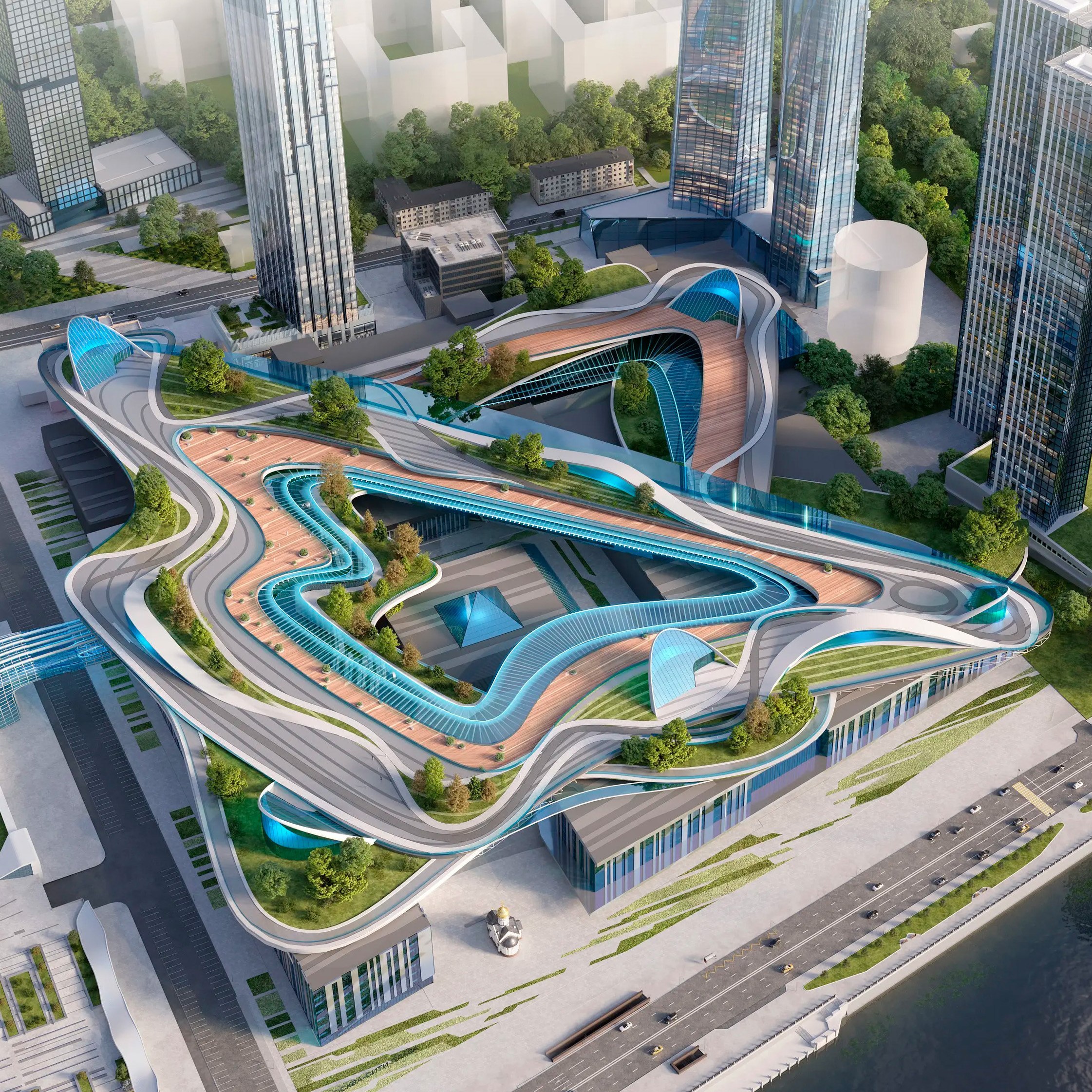 Сам проект выставочного центра может показаться спорным, т.к. это, по сути, глобальная реконструкция уже существующих корпусов «Экспоцентра» с созданием прогулочных дорожек с зеленым садом на крышах".