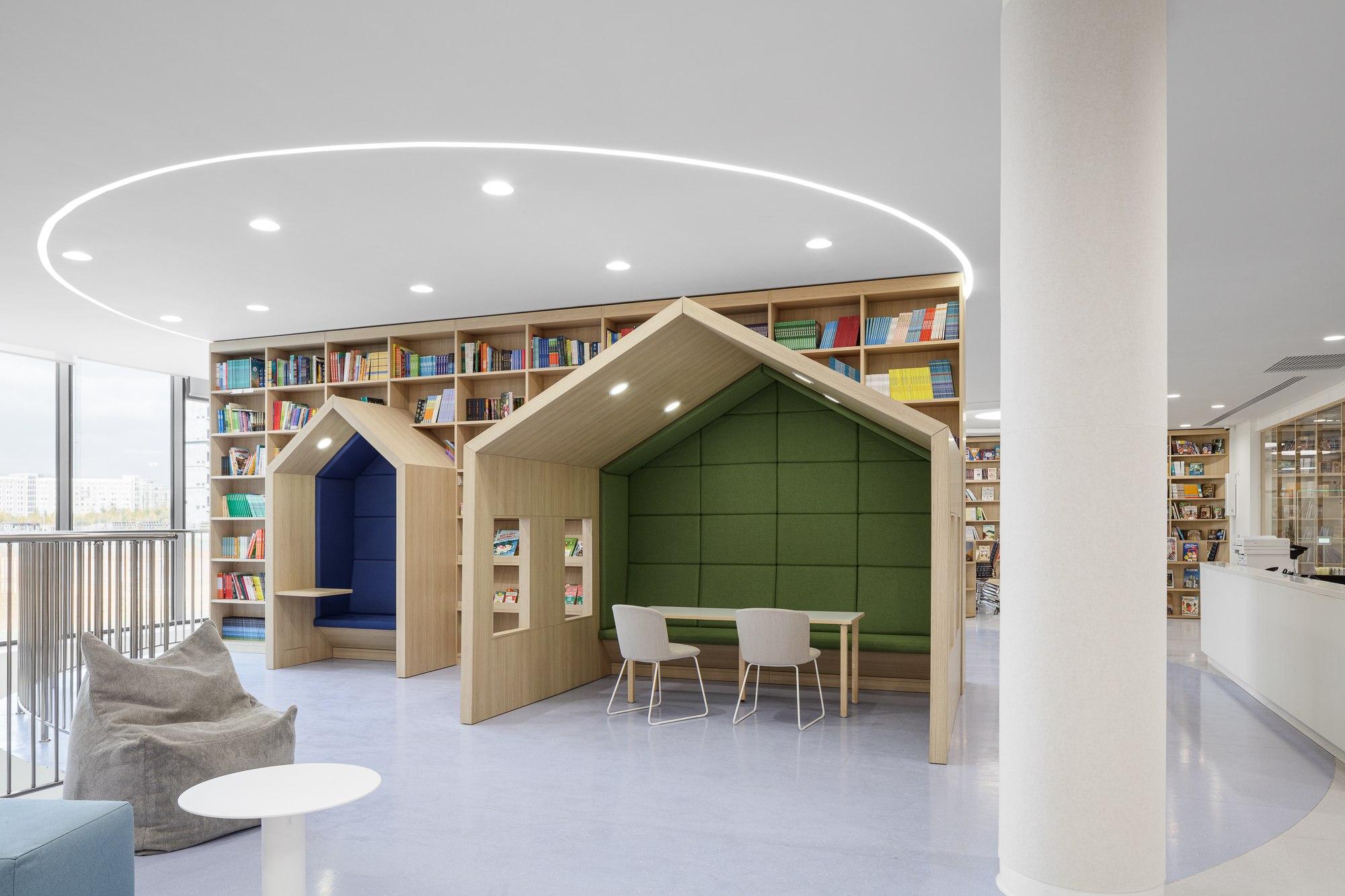 Бюро UNK architects и UNK design создали интерьеры кампуса «Летово. Джуниор» при участии NF studio, которая отвечала за образовательную технологию, учитывающую потребности и восприятие детей младшего и среднего школьного возраста.