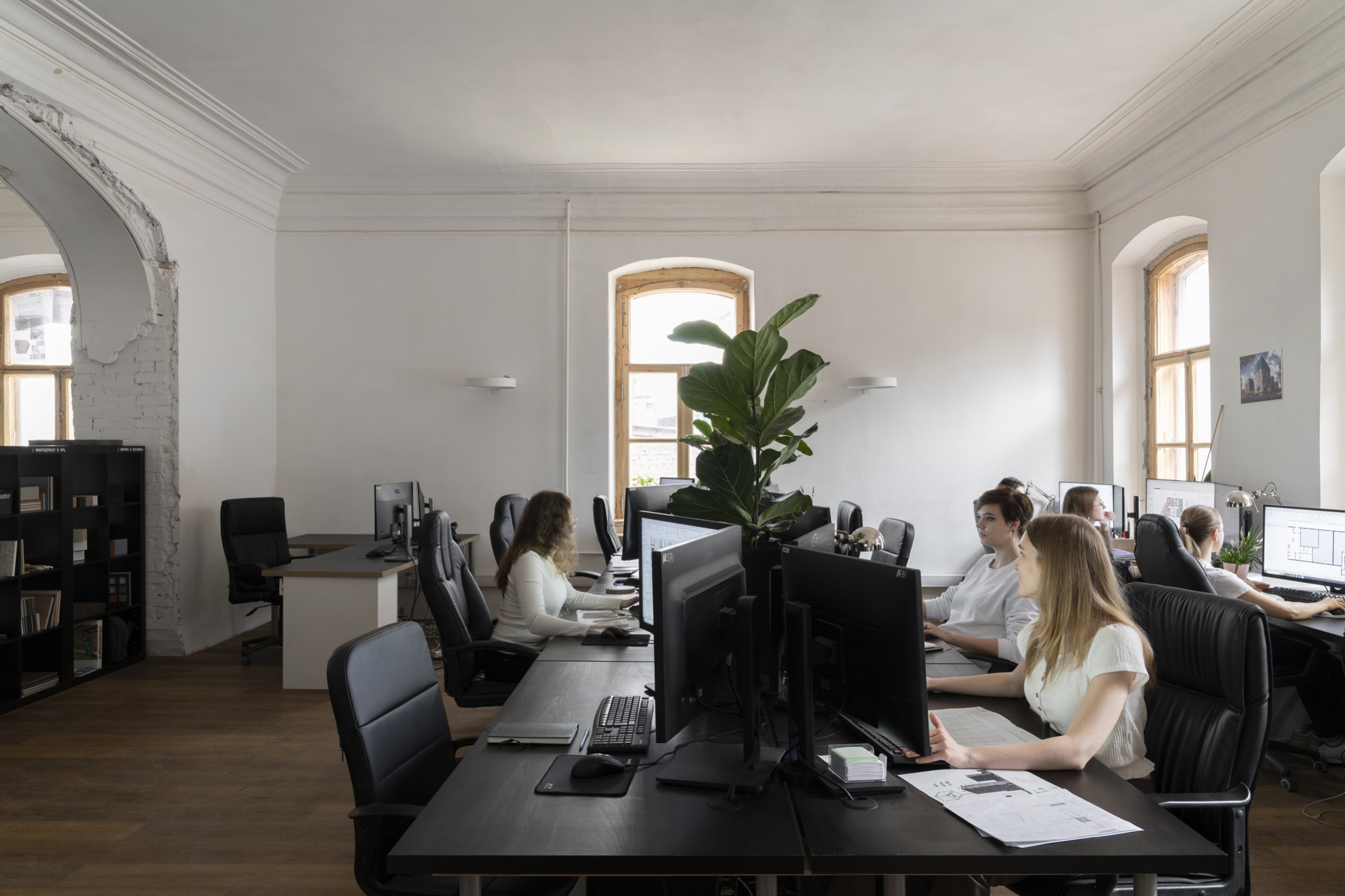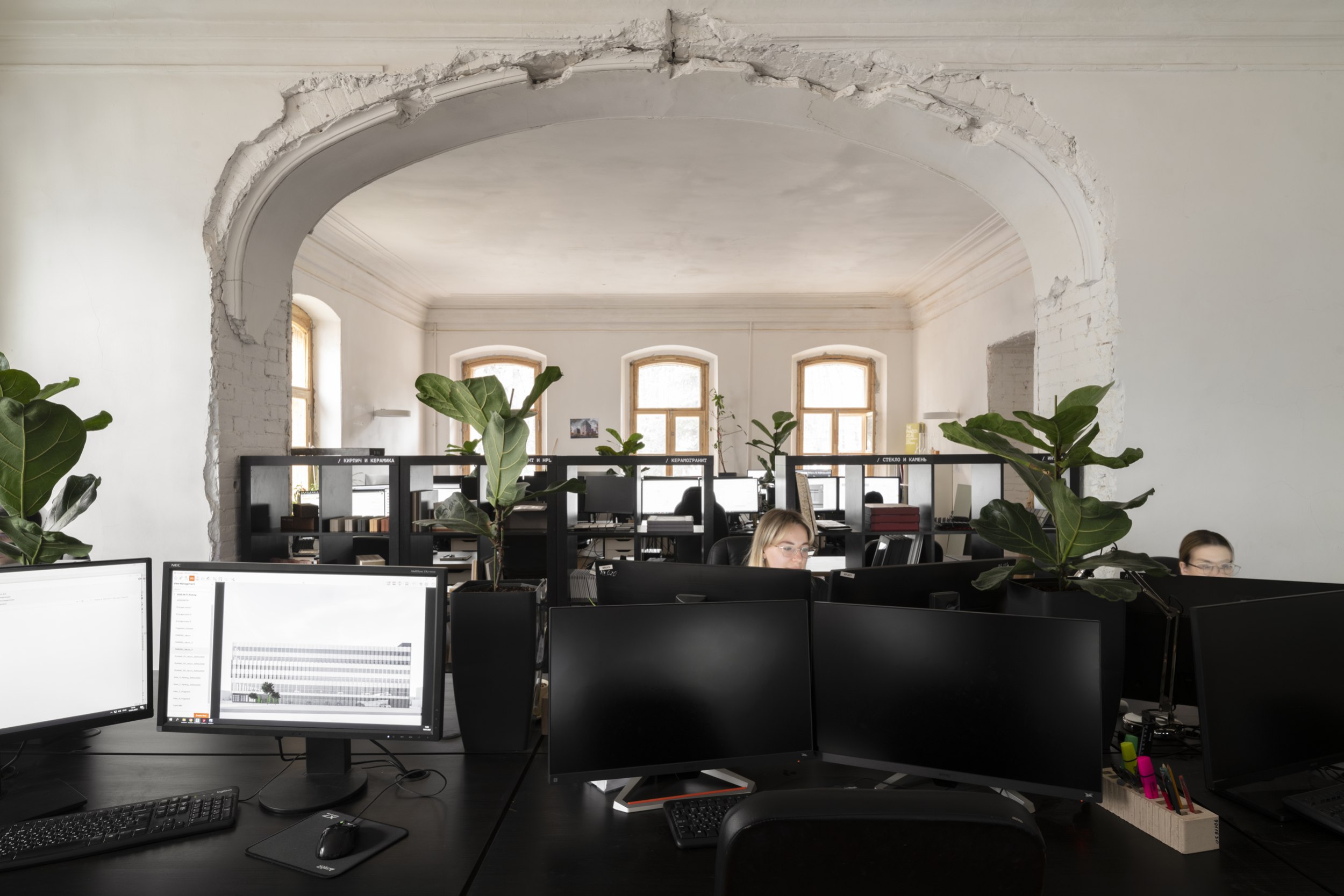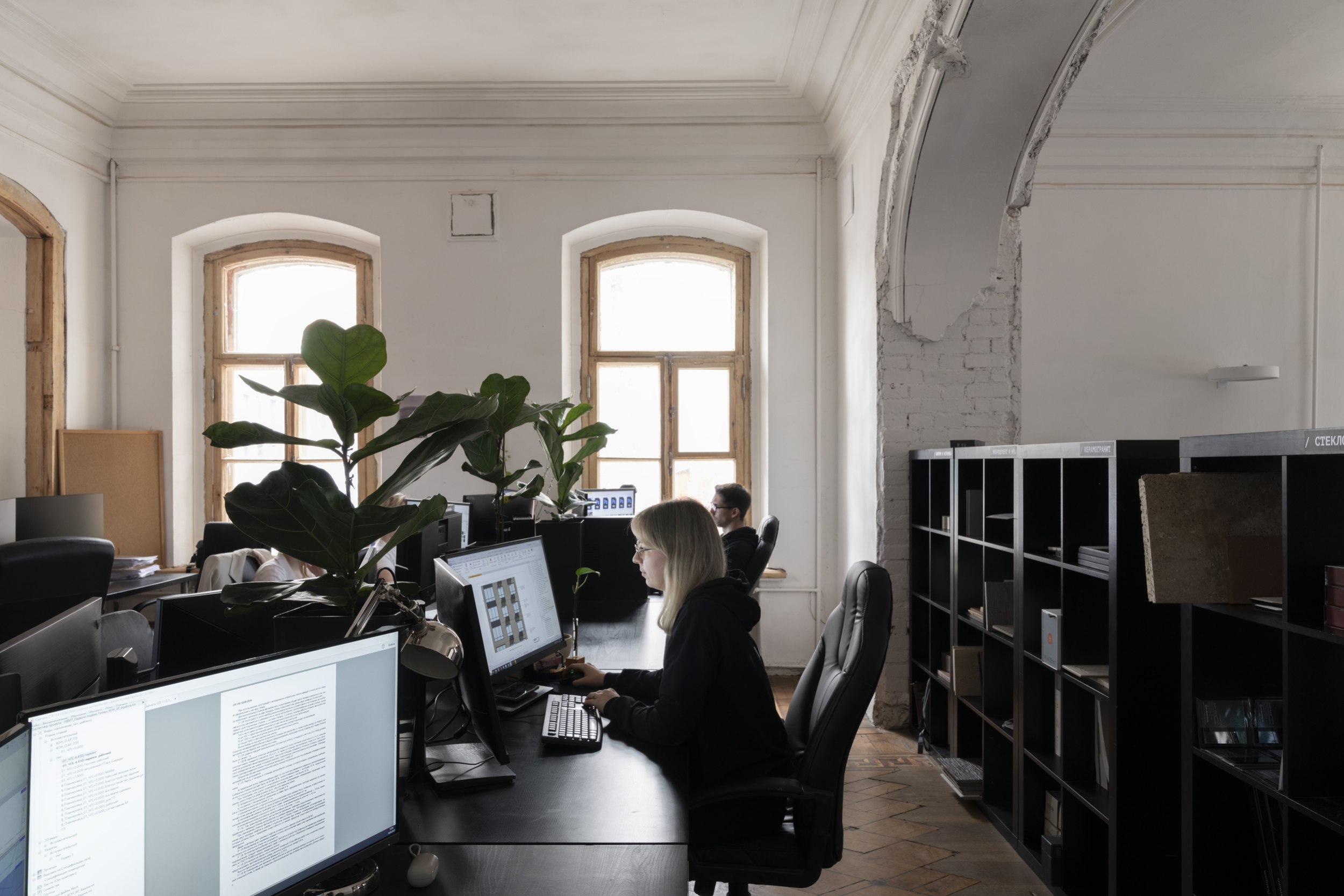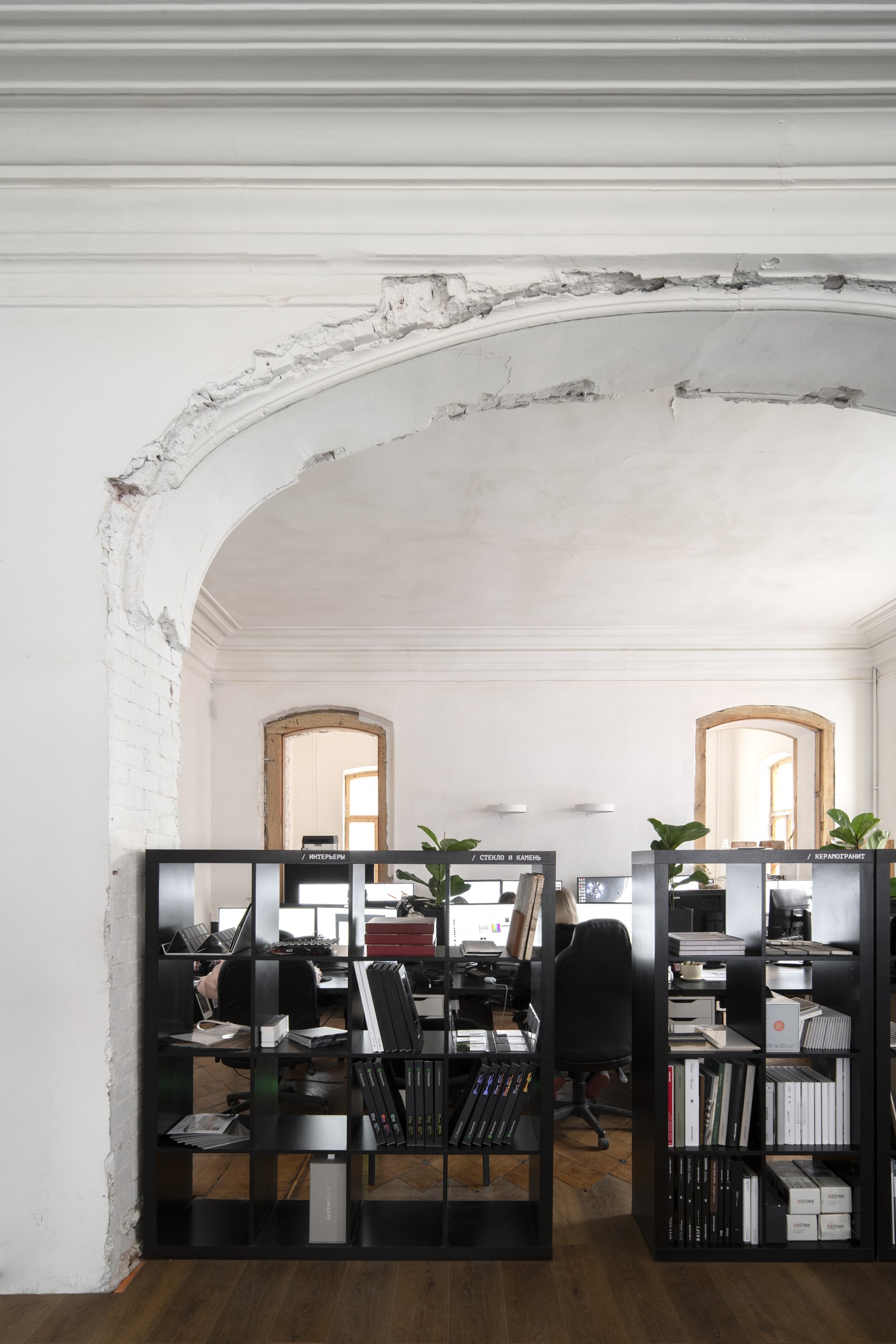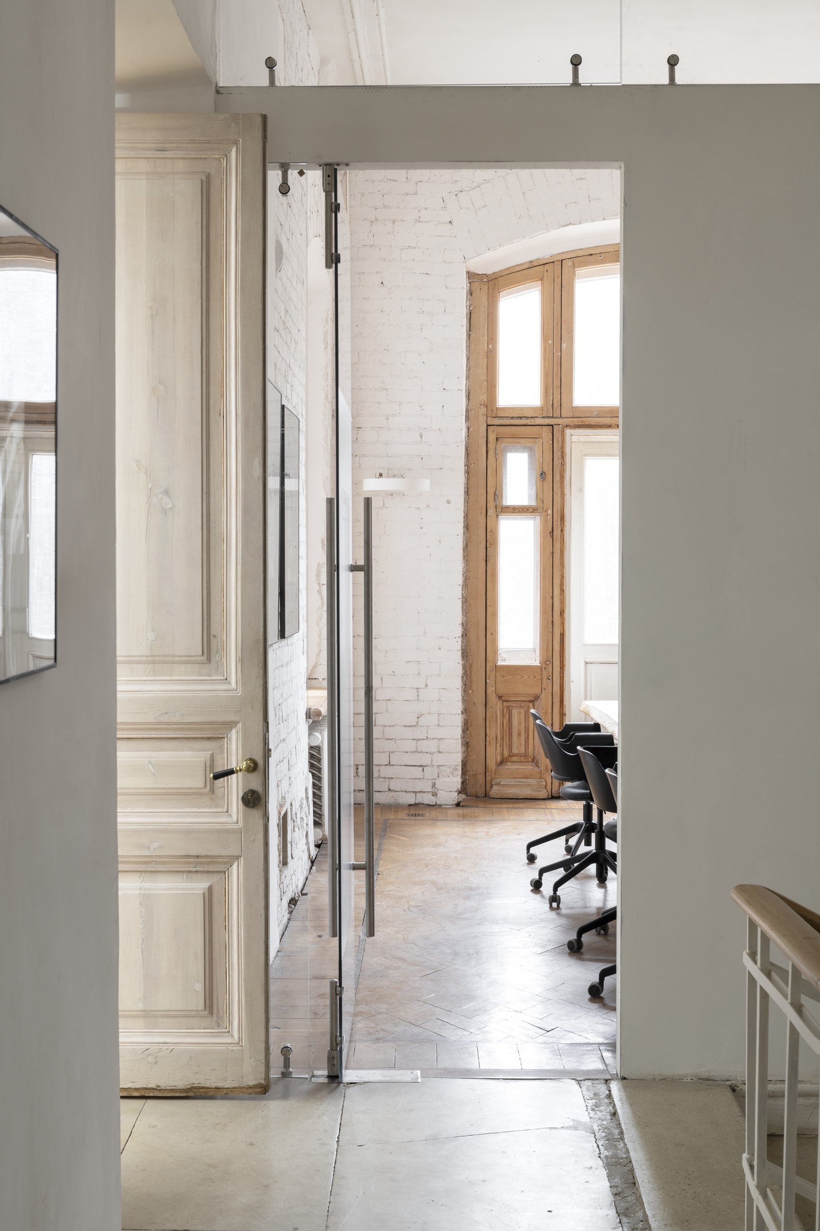 В честь талантливых личностей, связанных с локацией, назвали переговорные – большую «Геппенер», из которой есть выход на балкон-террасу, и среднюю «Ольденборгер». Исторический облик вернули и красивой арке между помещениями, где работают архитекторы: раньше она была засыпана мусором и заставлена шкафами.
