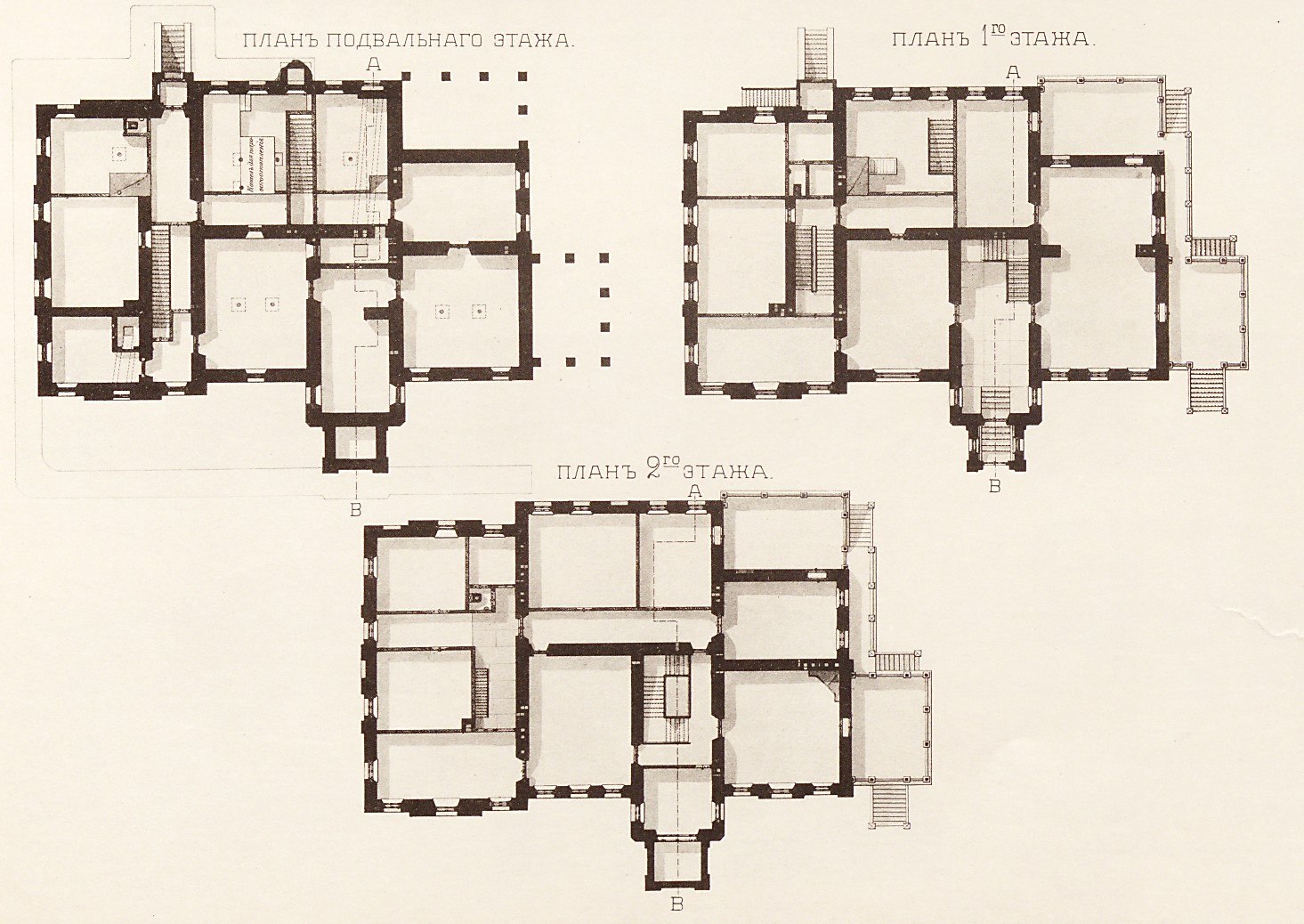 Помещения концентрируются вокруг двух лестниц – парадной и служебной. Первую в советское время заменили на бетонную, а вторая сохранилась в изначальном виде с чугунными перилами со сложным орнаментом и узором, предположительно каслинского художественного литья.