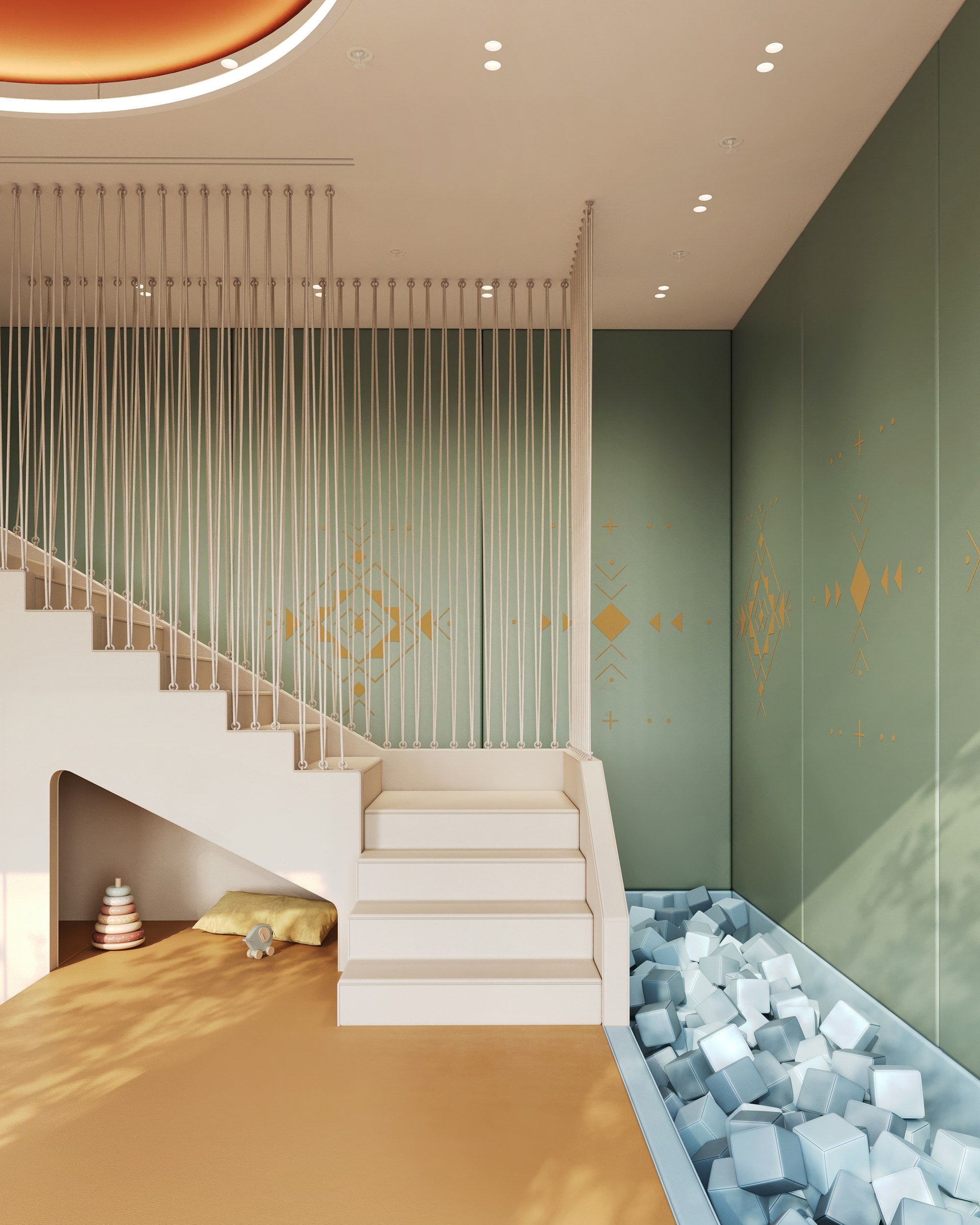 Детская игровая – самостоятельный мир со своими масштабами и логикой. Интерьер организован так, чтобы ребёнок ощущал себя в полноценном пространстве, где всё подчинено его росту, движениям и восприятию. Цветовая палитра – тёплая и сбалансированная, без излишней яркости.