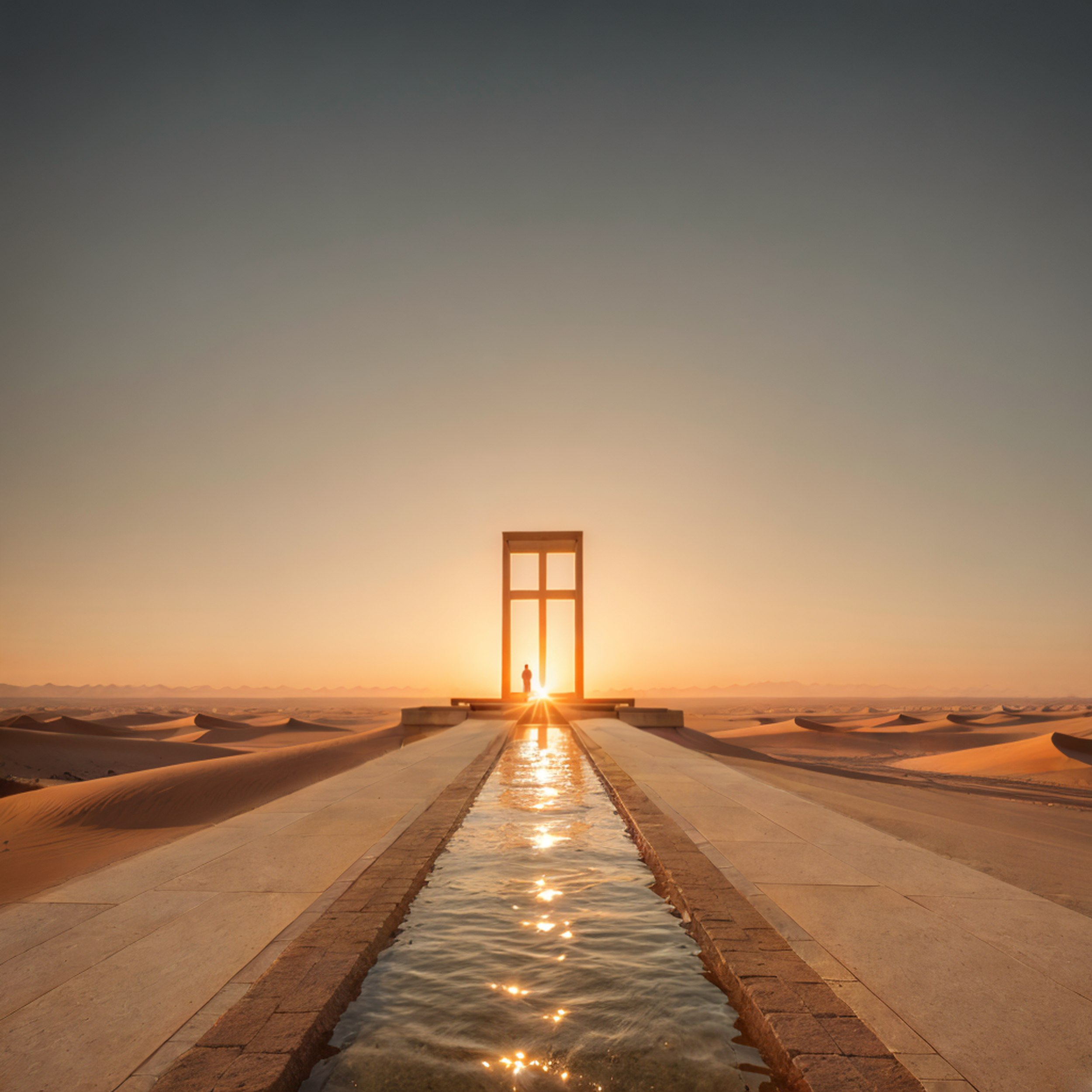 Центральная площадь служит интеграционной платформой, объединяющей все части ансамбля. Её доминанта – павильон, символизирующий Небесный Град, с внутренним садом и водной инсталляцией, отсылающей к образу райских рек.