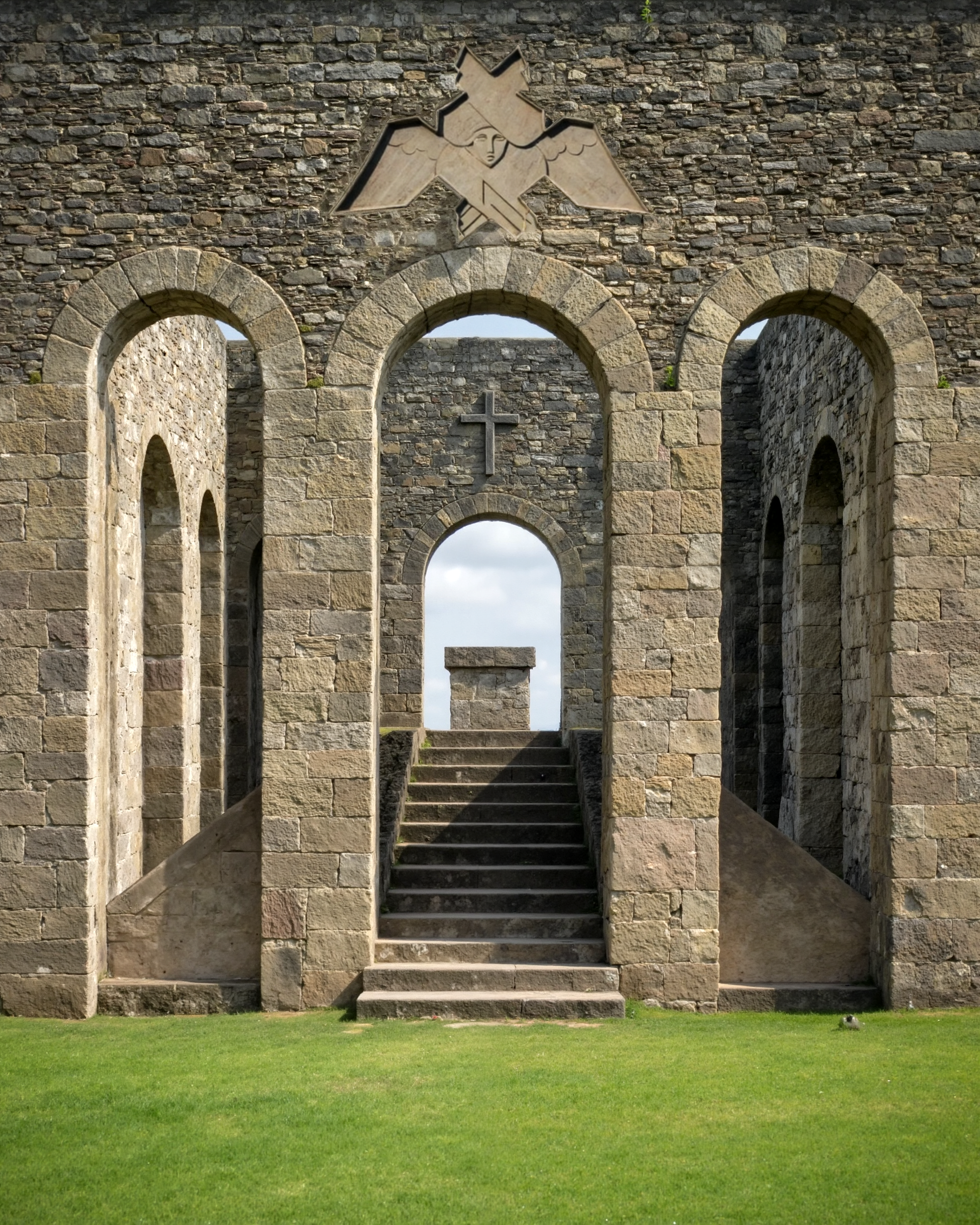 Расположена на условном Западе и частично отсылает к сакральной архитектуре северных регионов Западной Европы. В её образе читается переосмысление нордической традиции в христианском контексте.