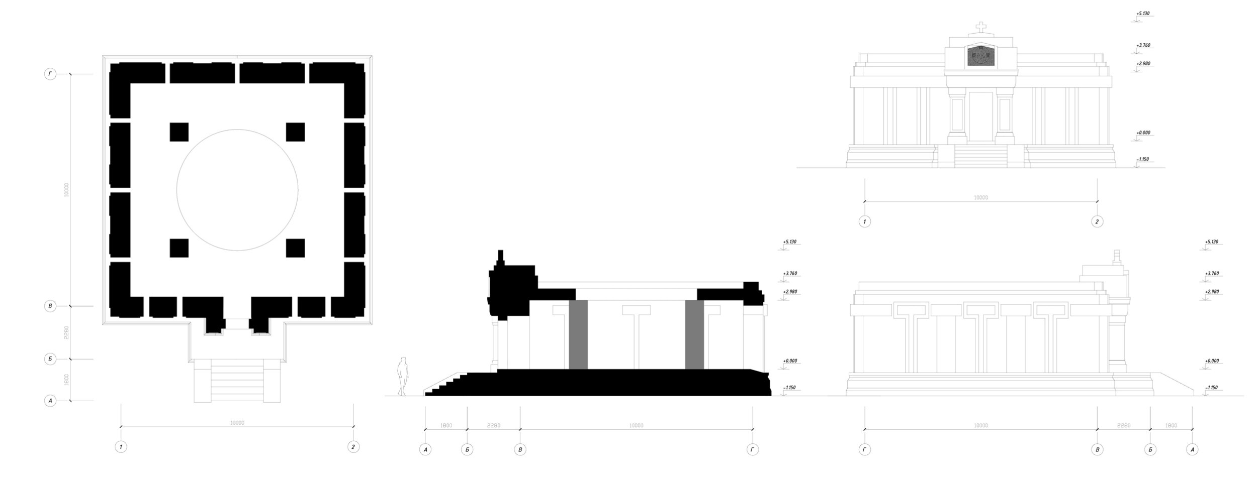 Пять часовен – это небольшие сакральные сооружения, отсылающие как к архаическим формам, так и к развитию религиозной традиции. Такое соединение прошлого и будущего позволяет определить их как выполненные в духе сакрального археофутуризма.