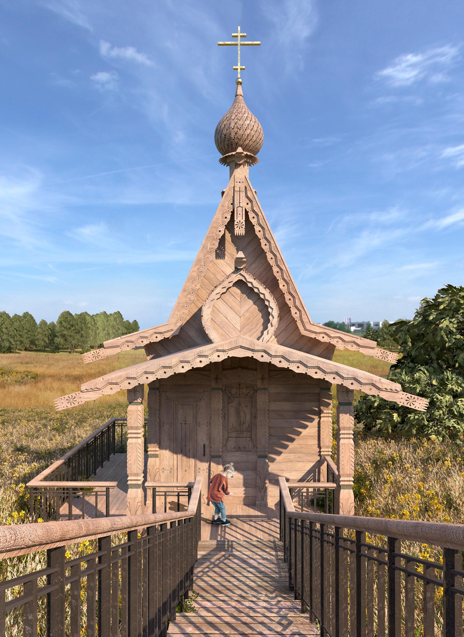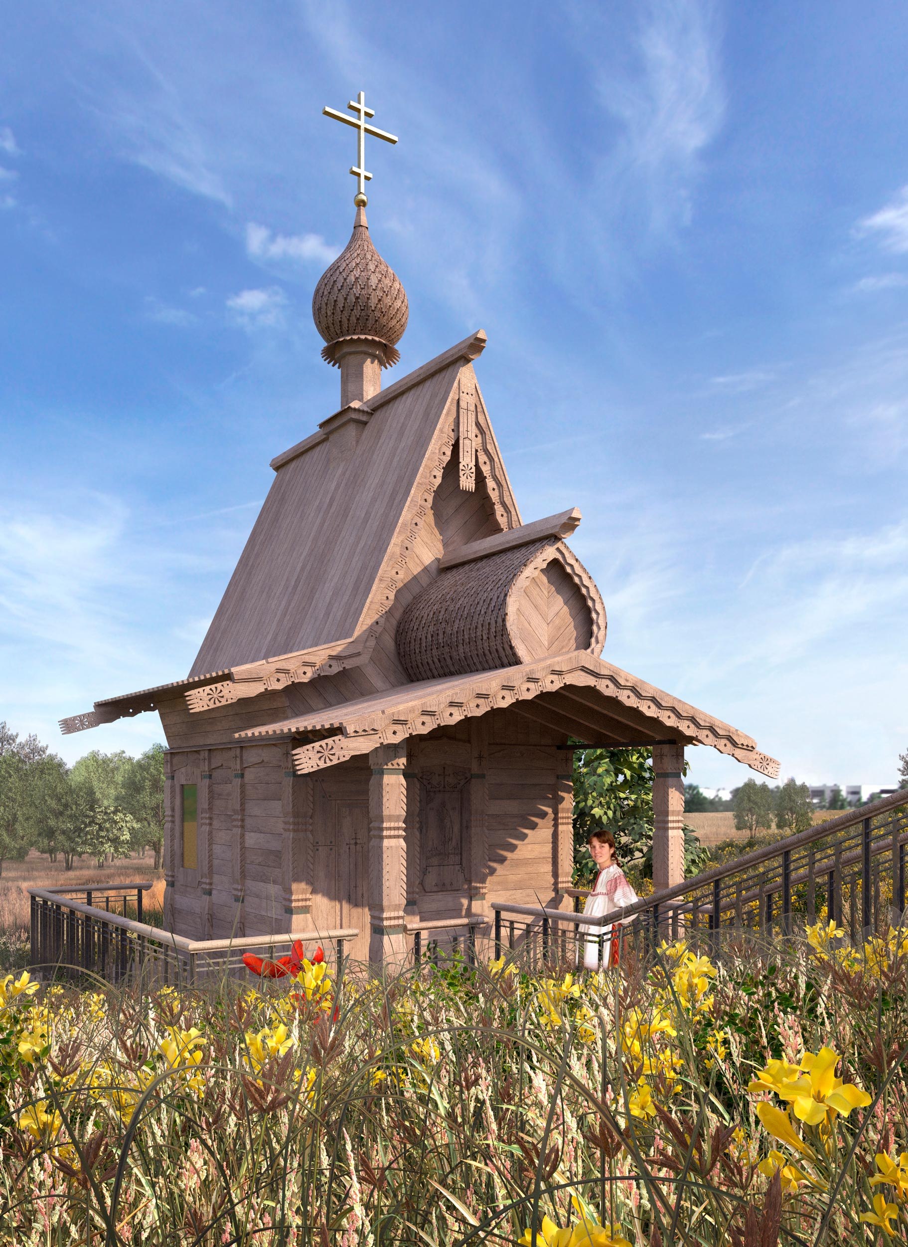 Архитектурный облик часовни опирается на традиции северного деревянного зодчества.