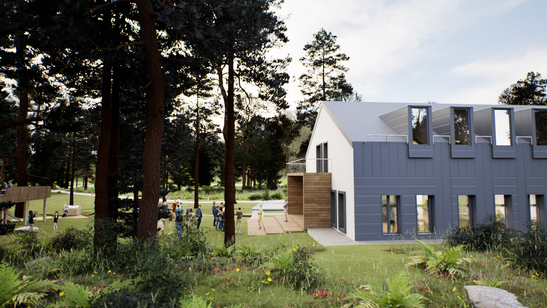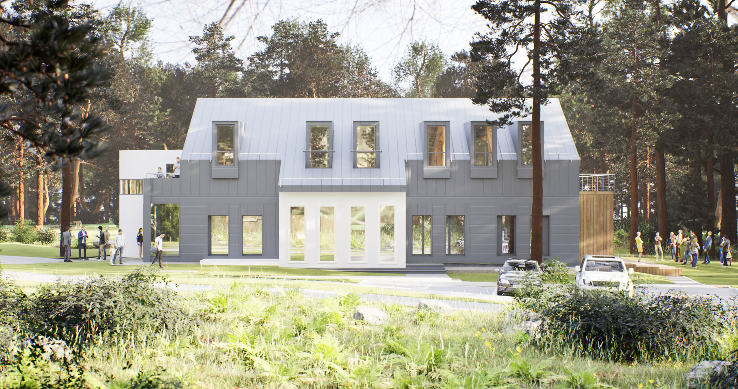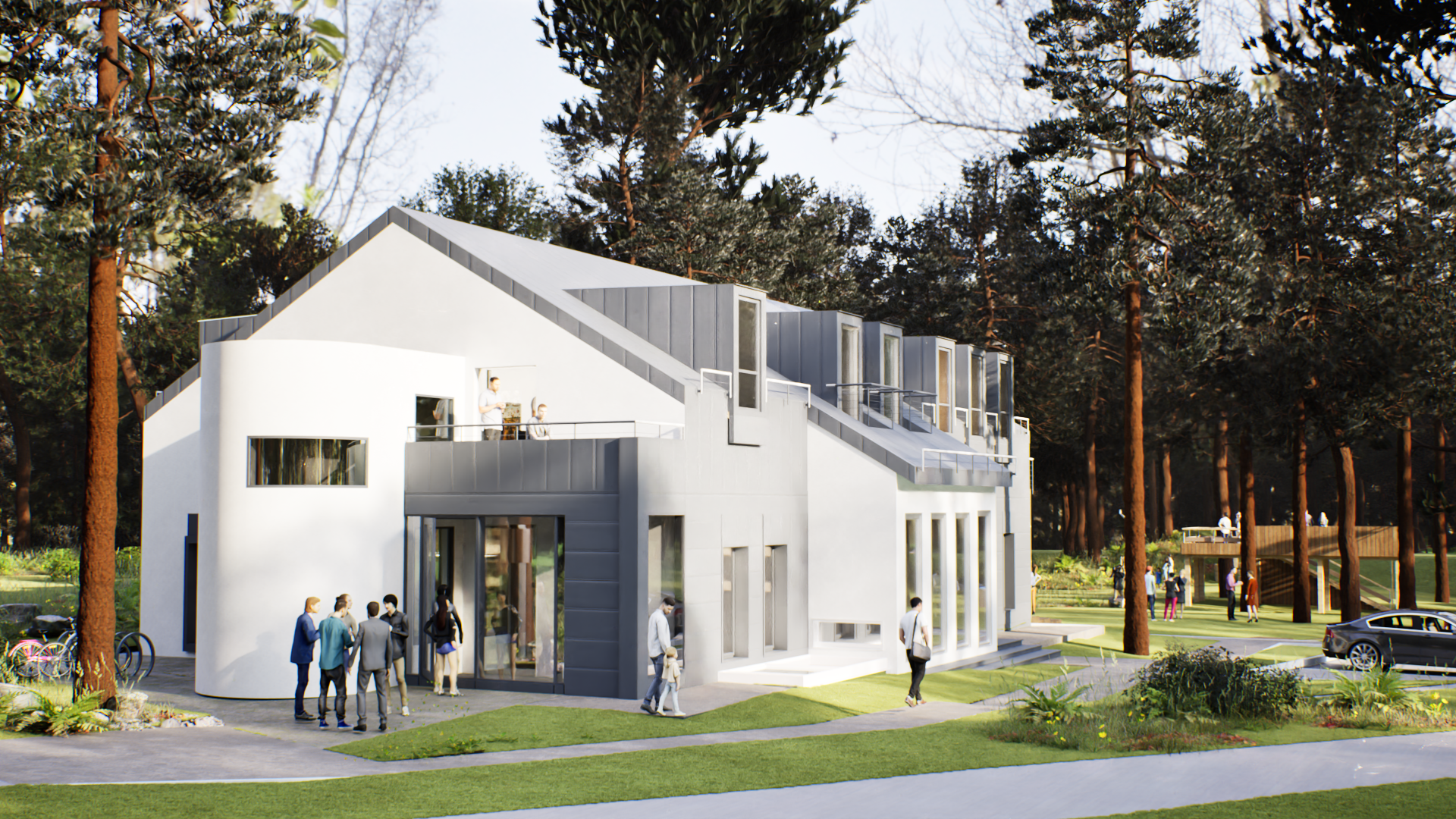 Главная идея будущего арт-пространства – «терапия прекрасным». Исцеление природой посредством архитектуры: окна-порталы и террасы впускают свет солнца, шум леса, чистый воздух, способствуют общению людей.