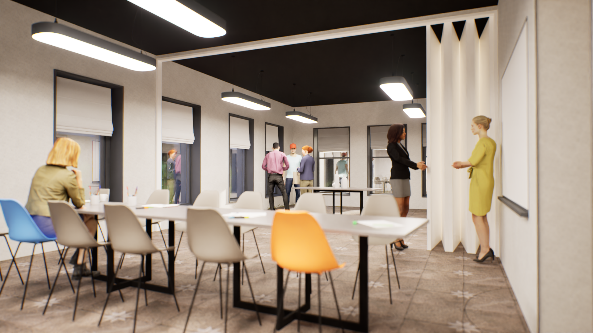 Открытое пространство для творчества. В подвале – звукозаписывающая студия, на первом этаже – трансформируемое пространство для мероприятий разного масштаба от лекции до мастер-класса, на мансардном этаже – выставочное пространство. -