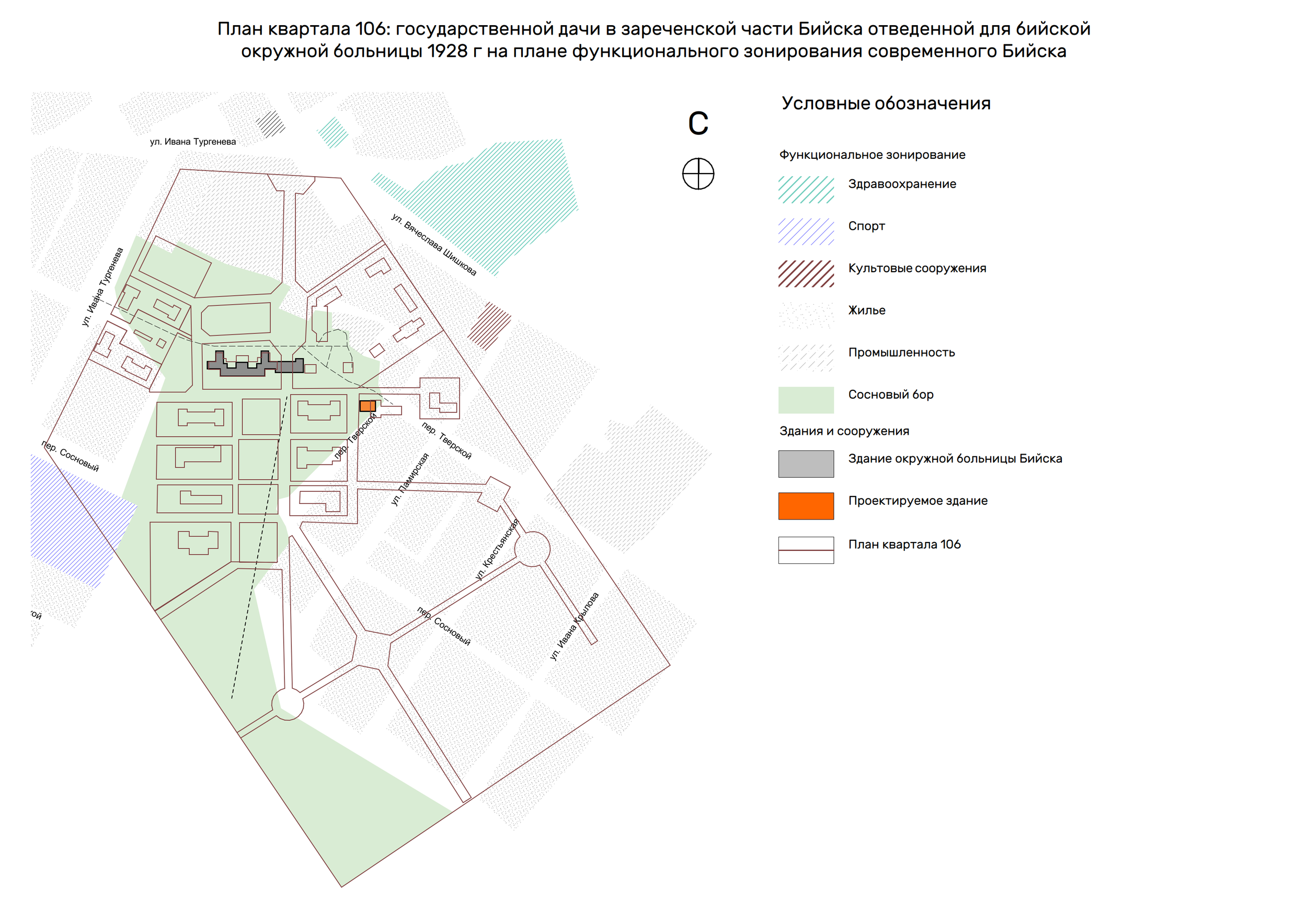 В конце 1920-х годов был составлен план квартала №106 Государственной лесной дачи в Зареченской части г. Бийска, отведенной для Бийской Окружной больницы.
