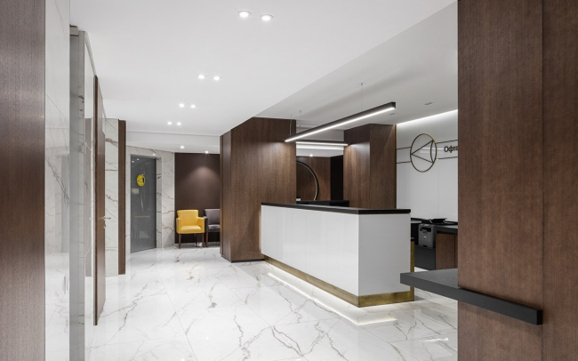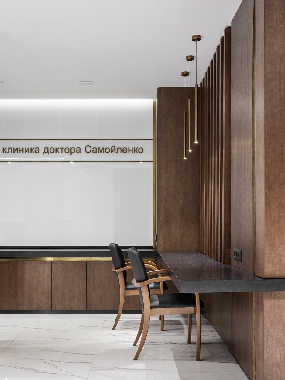 Заказчиком была поставлена задача спроектировать планировку и дизайн-проект клиентской и офисной части клиники, который подчеркнул бы высокий статус пространства и в то же время оставался дружелюбным и комфортным для посетителей.