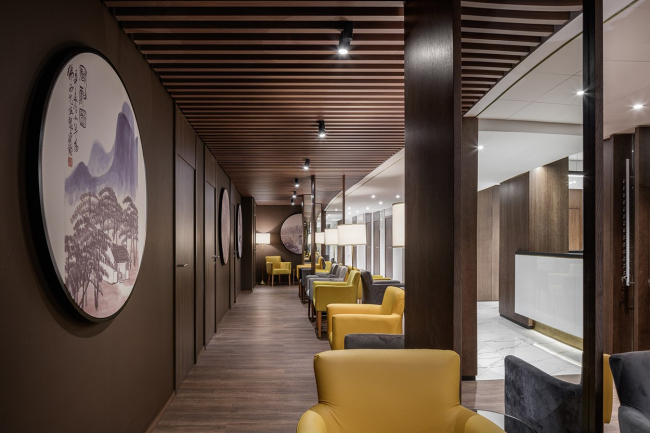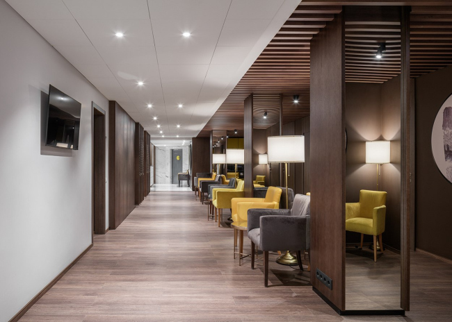 Задача – создать интерьер общественных зон клиники, где пациенты чувствовали бы себя спокойно и расслабленно, как перед СПА-процедурами, а не как в медицинском учреждении