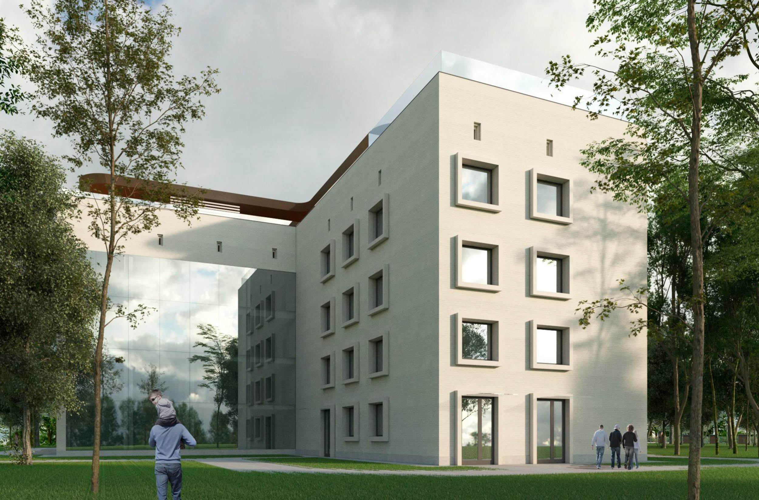 Проект реконструкции лечебного корпуса предполагает обновление здания санатория, построенного на территории усадьбы в 70-е годы ХХ века, – прекрасного образца советского модернизма.