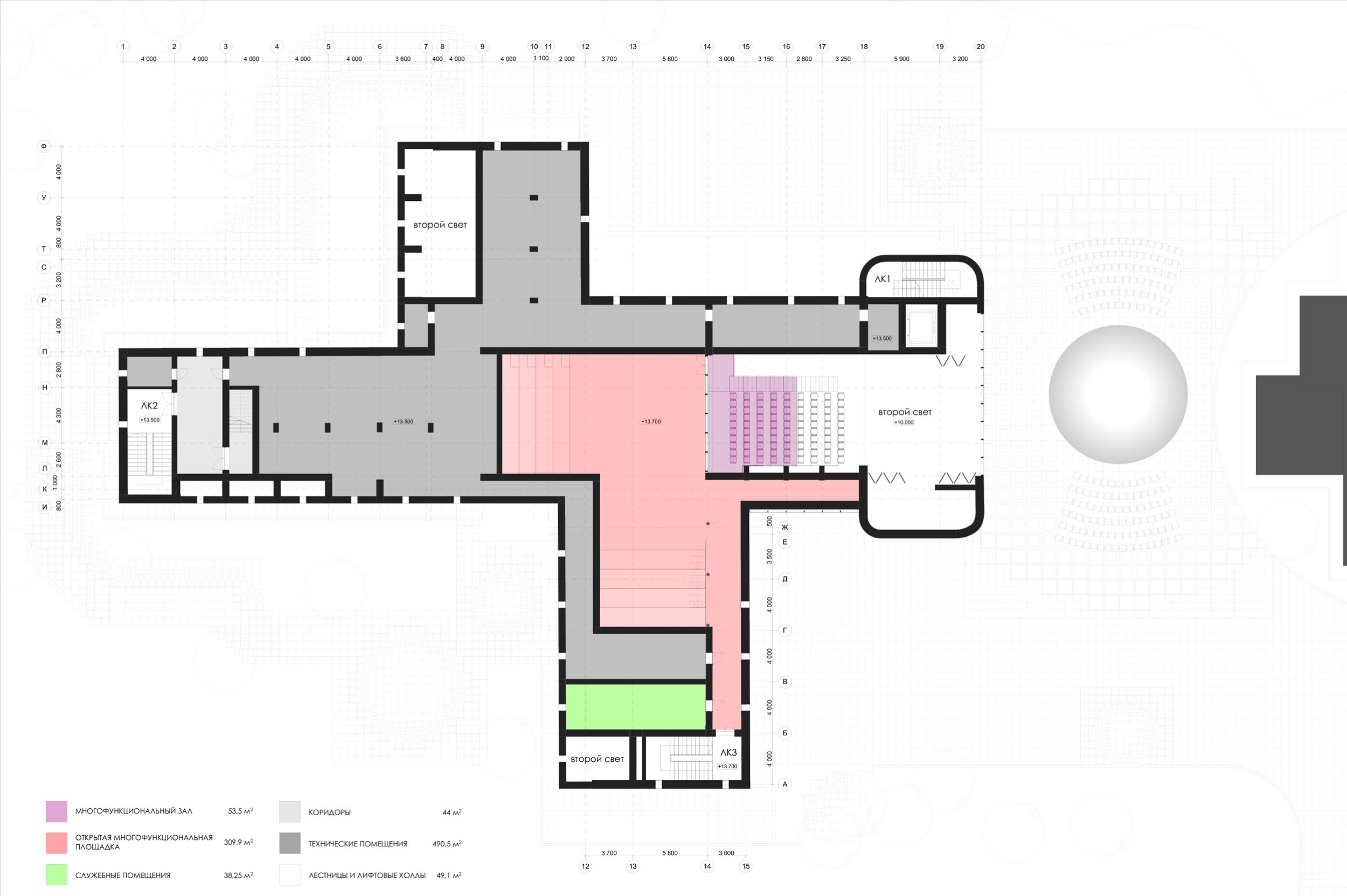 Важнейшим шагом станет демонтаж крытого перехода, соединяющего два здания и некогда грубо врезанного в усадьбу. На его месте появится открытая многофункциональная площадка для проведения фестивалей и мероприятий – смысловой центр ансамбля.