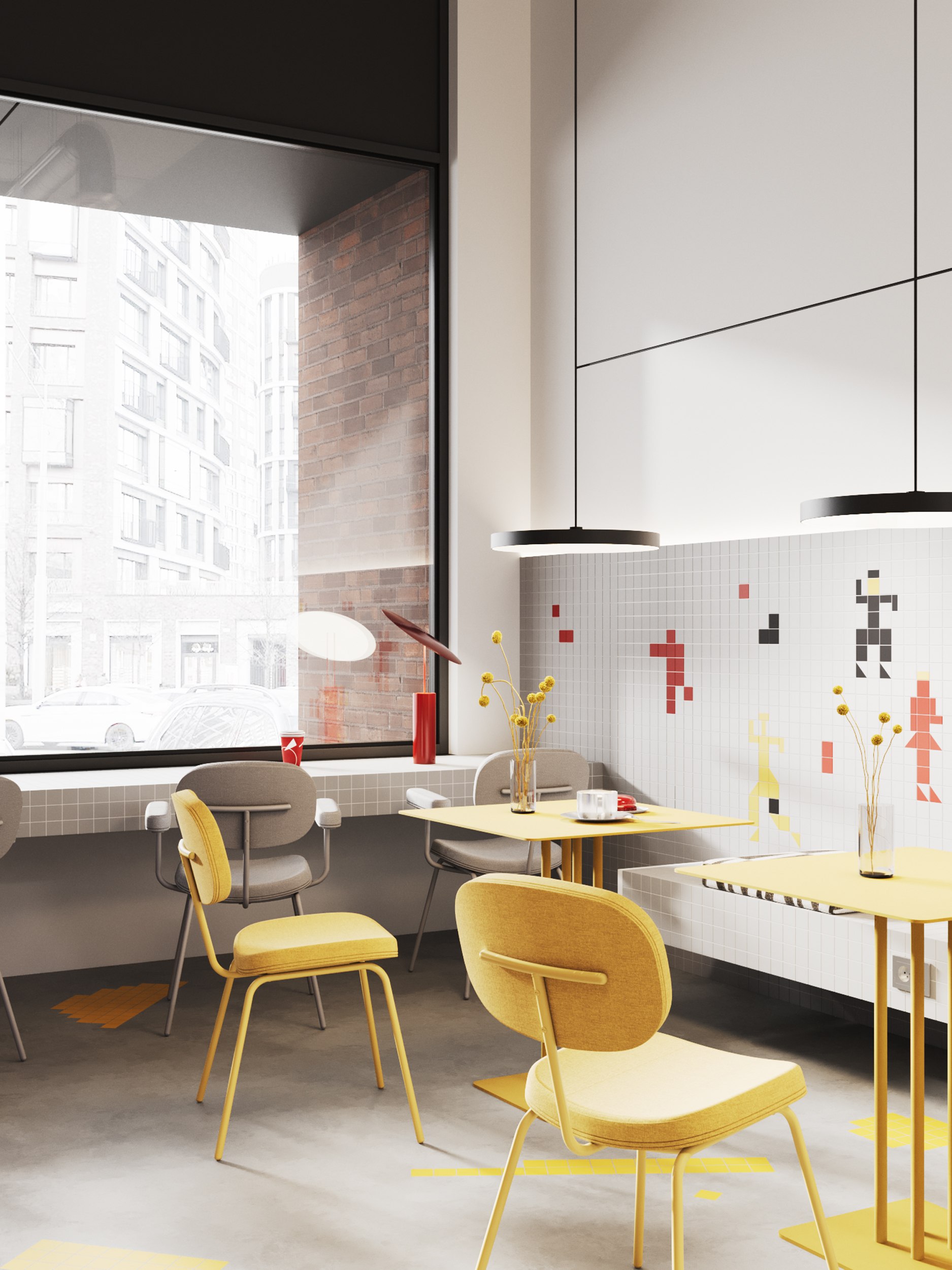 Обеденные группы спроектированы с учётом различных сценариев посещения кофейни – от уединённого до коллективного.