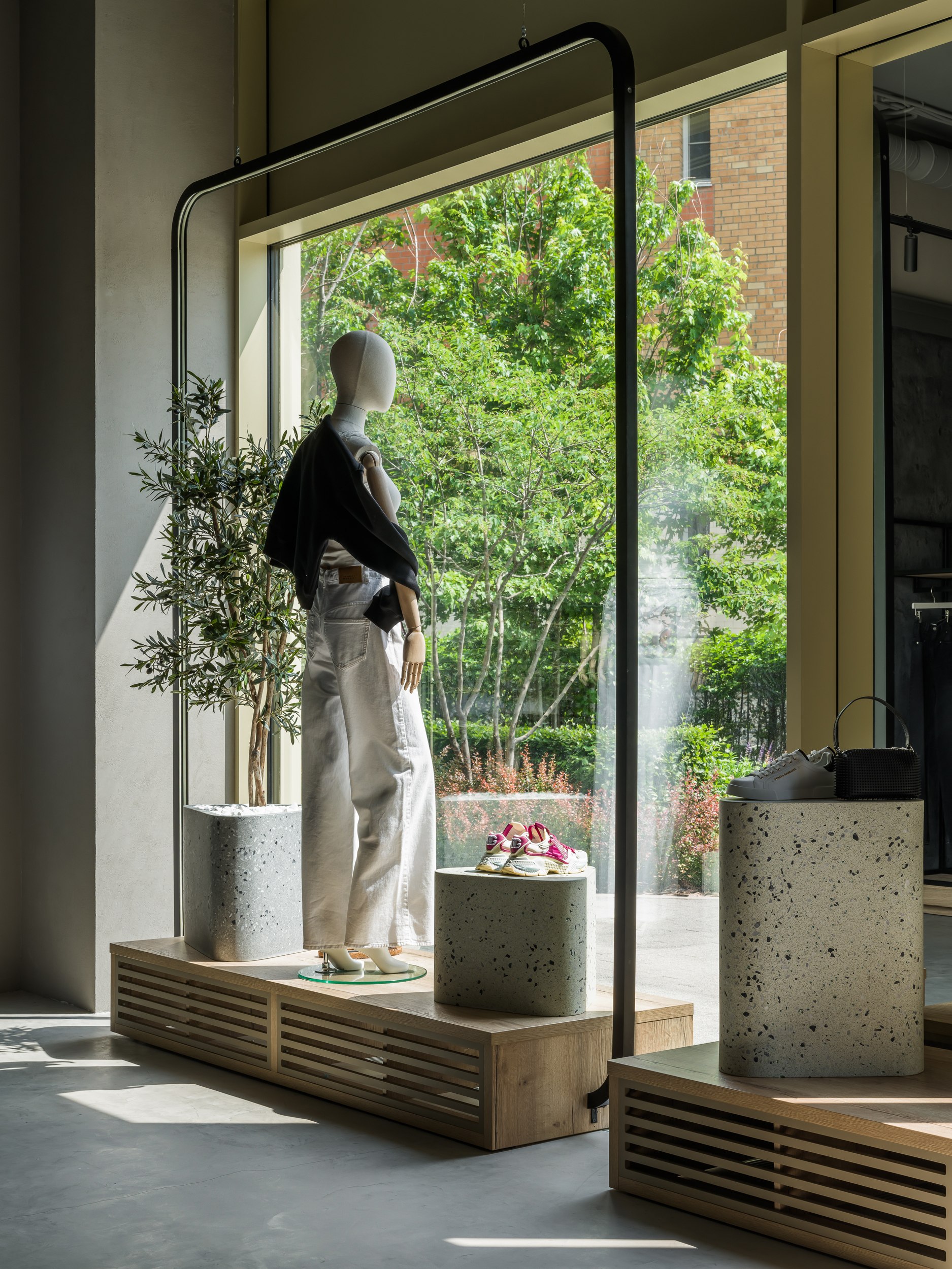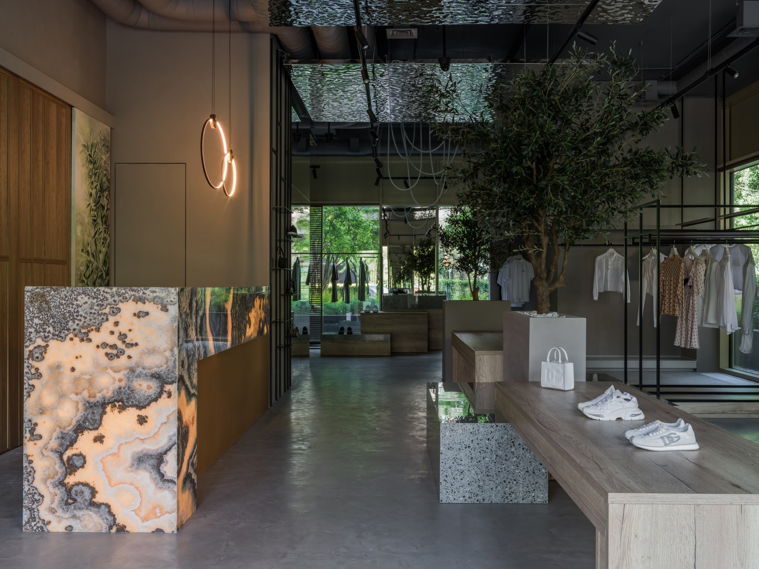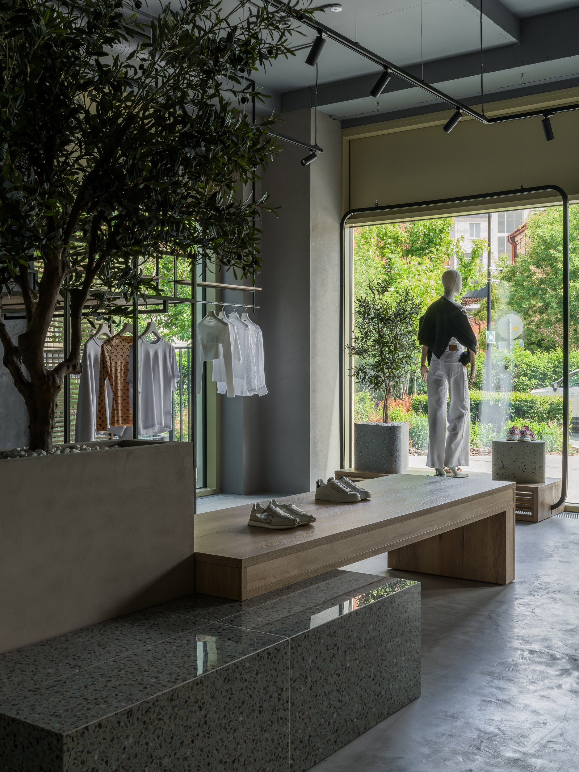 Эстетика бутика обращается к Италии – но не к той, что сияет брендами и витринами. Здесь нет прямых ассоциаций с роскошью, глянцем и показной модой. Напротив, пространство вдохновлено природой, архитектурной простотой и ремесленным началом, свойственными Апеннинскому полуострову. Незаметные, лёгкие параллели формируют атмосферу уюта, глубины и тактильности.