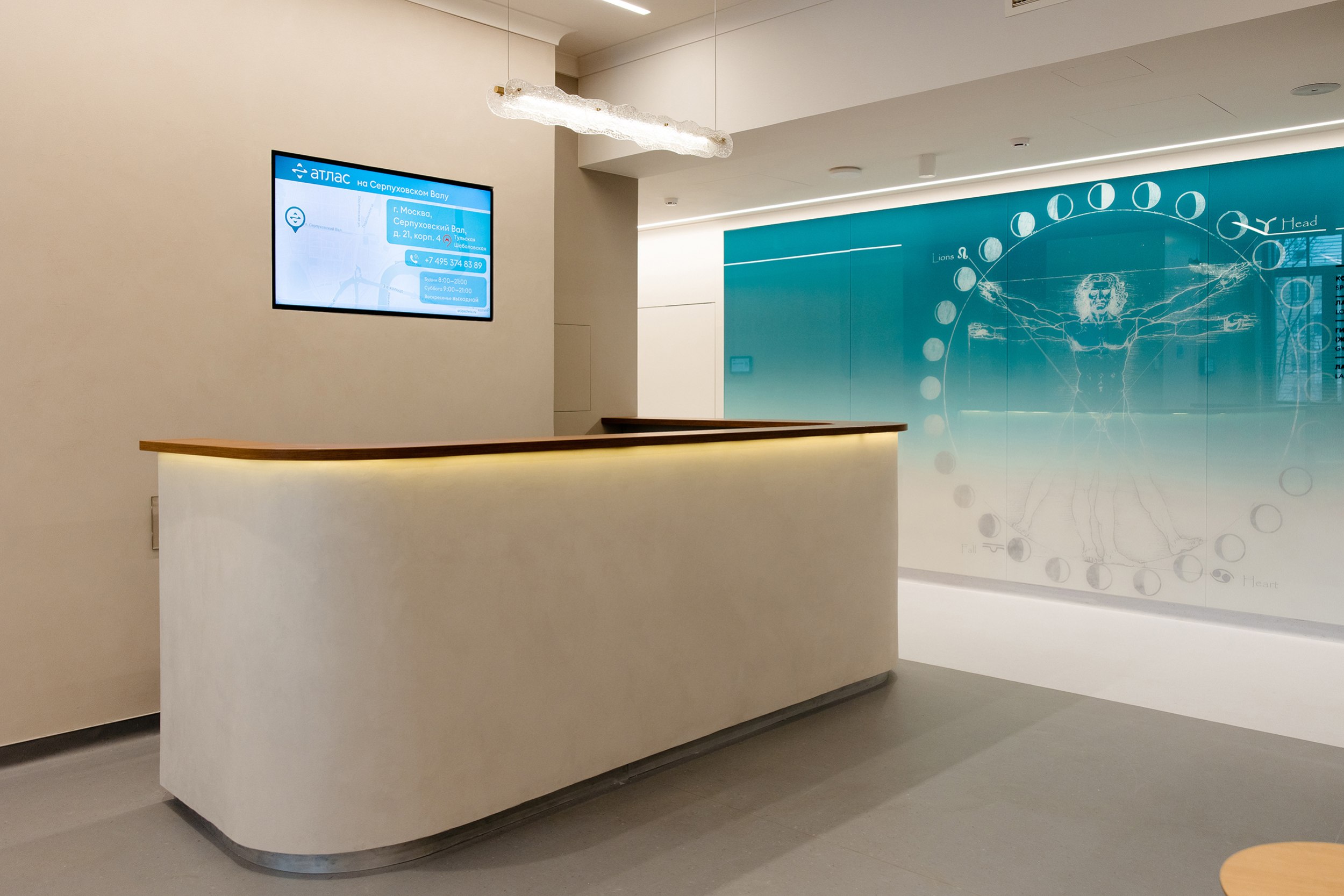 Мы разработали интерьер для первой клиники «Атлас» на Кутузовском проспекте в Москве. После смены собственника была пересмотрена стратегия развития, что привело к полному обновлению концепции и созданию новых интерьеров. Так появилась новая линия – масштабный сетевой проект с узнаваемым визуальным кодом, выверенной цветовой системой и обновлённой философией клиники.