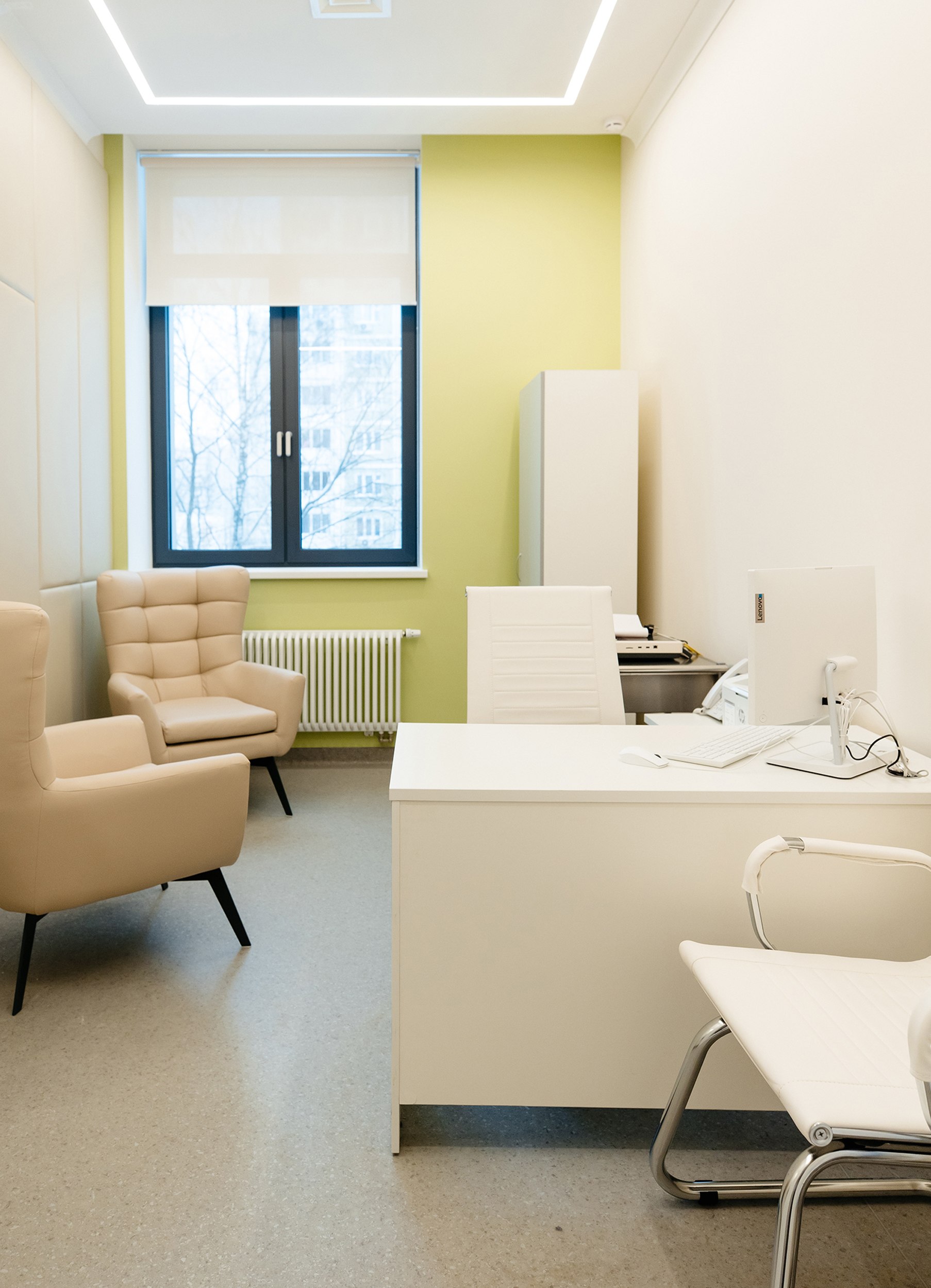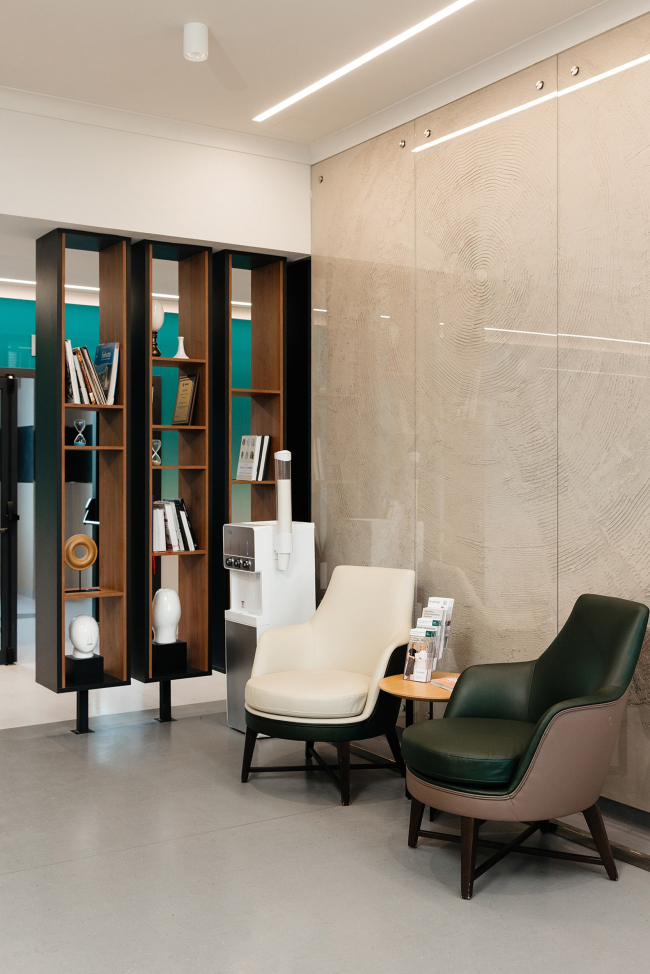 На наш взгляд, в работе над проектом нам удалось по-новому интерпретировать ключевые зоны медицинского центра и сделать их максимально комфортными, избавляя пациента от ощущения формальности и подчеркивая человеческую сторону медицинской среды.