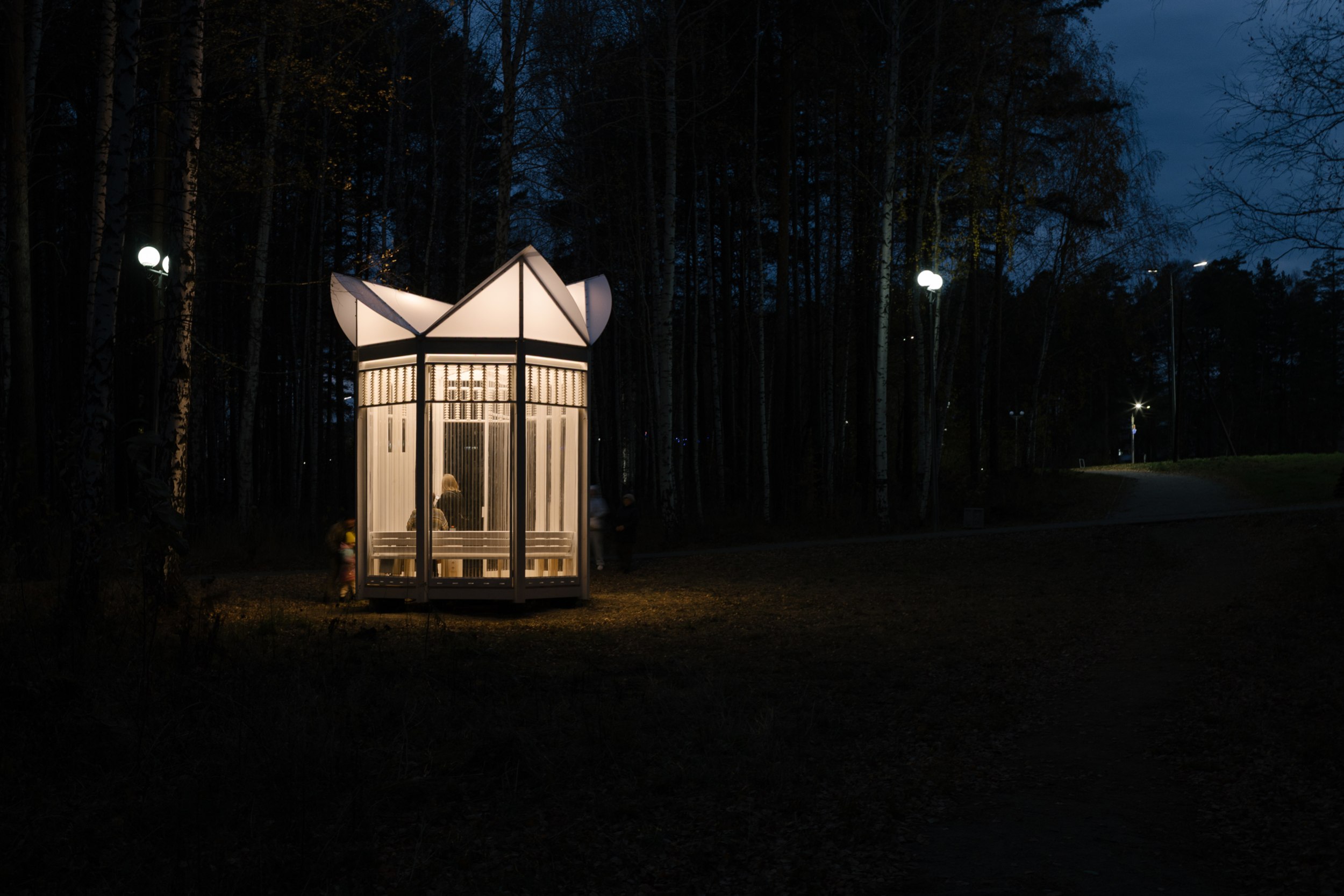 Объект расположен в зеленой зоне между набережной и Центром культуры и искусств – двумя ключевыми общественными точками Рефтинского. Здесь «Теплица» стала символическим сосудом для тепла – природного и человеческого. Кровля ротонды напоминает распустившийся цветок и отсылает к световым конструкциям-«тюльпанам» – неофициальному символу города в советские годы. Вечером «Теплица» светится изнутри, наполняя парк мягким теплым сиянием и становясь новой точкой притяжения.