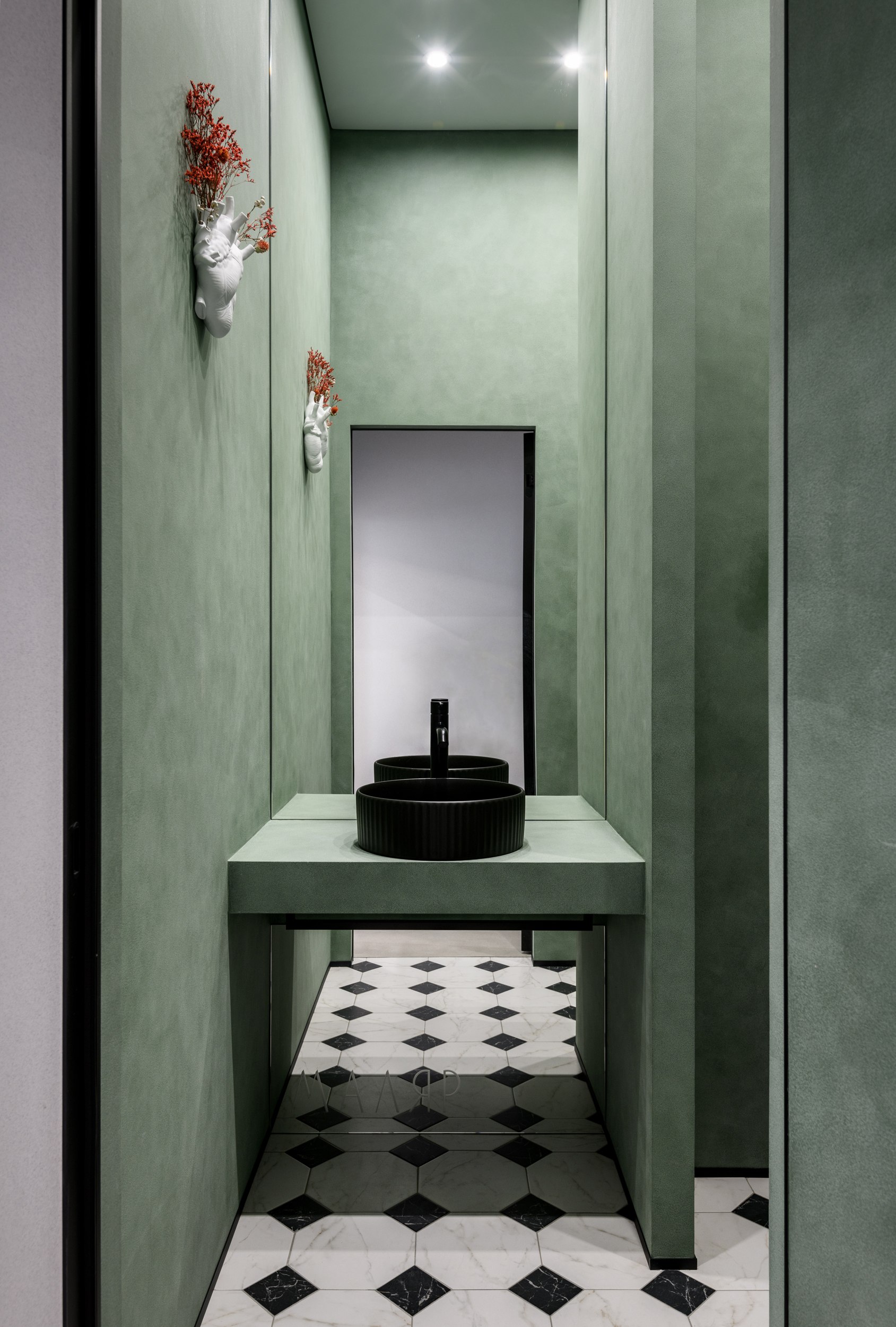 Невероятно маленькие проемы (высотой всего 1900мм) нельзя было увеличить физически, поэтому пришлось «вытягивать» проемы визуальными приемами.