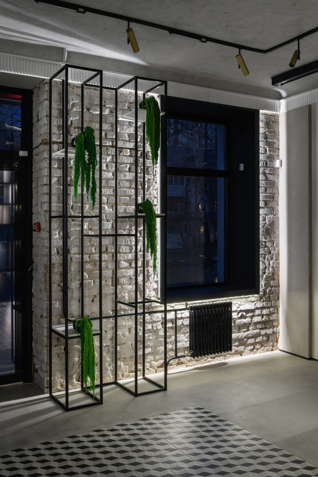 Помещение будто открыло свою душу, обнажившись до черновых стен из кирпича и потолка с арочным закруглением. Чтобы добраться до самого кирпича, старую отделку стен удаляли с археологической щепетильностью.