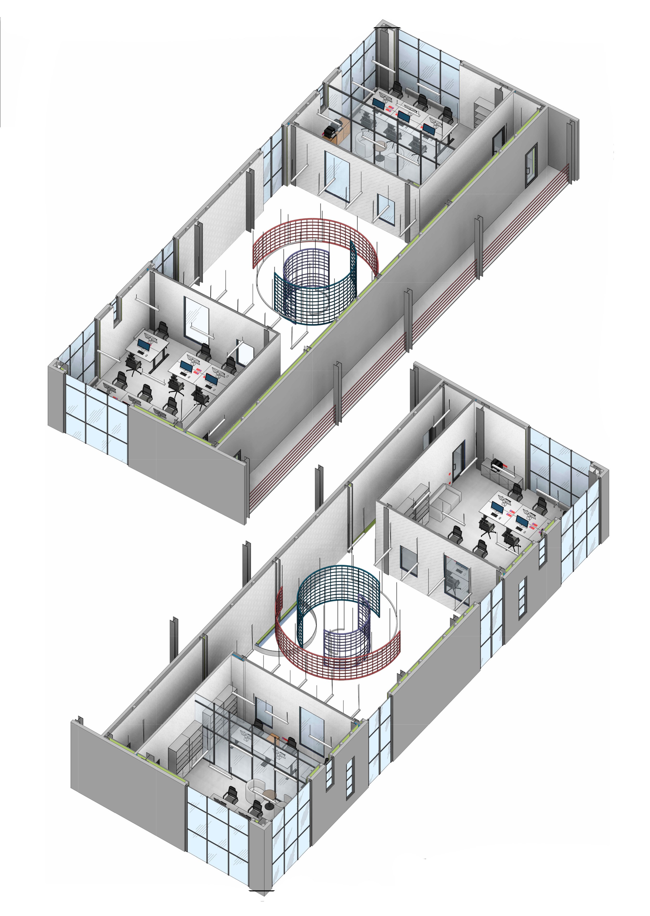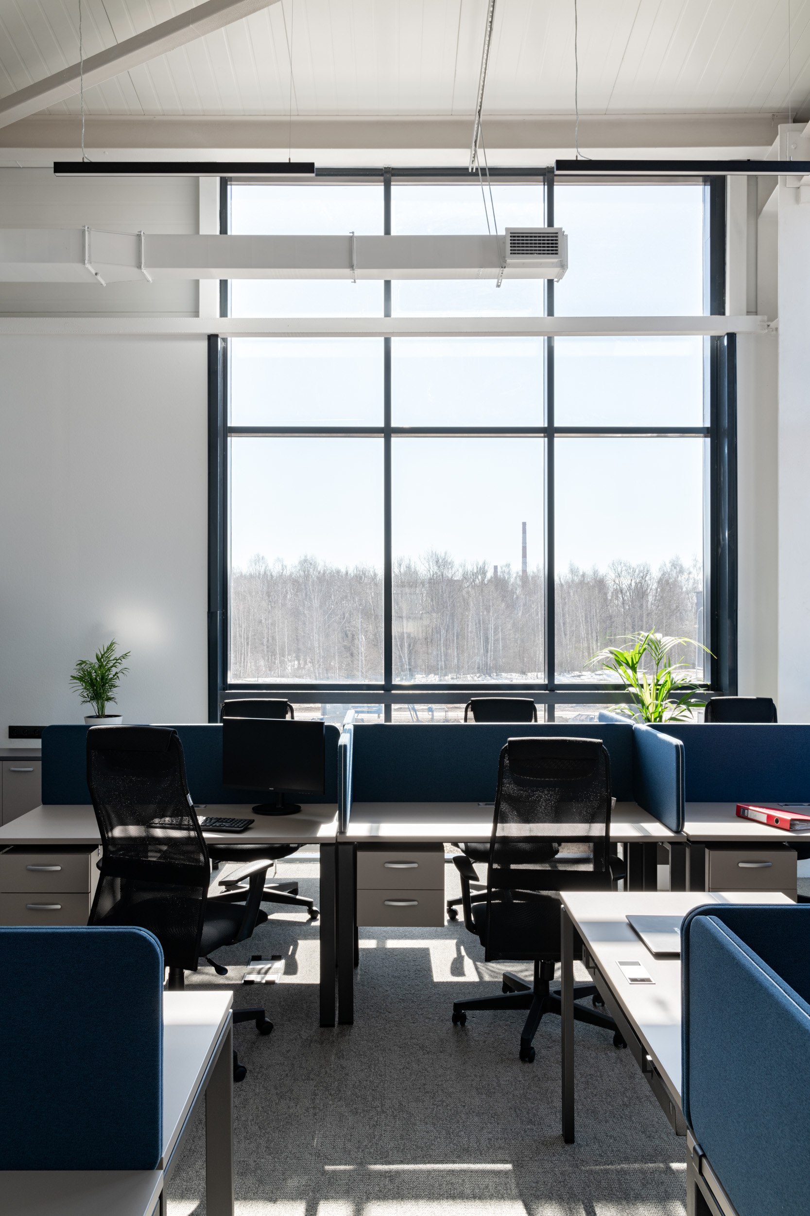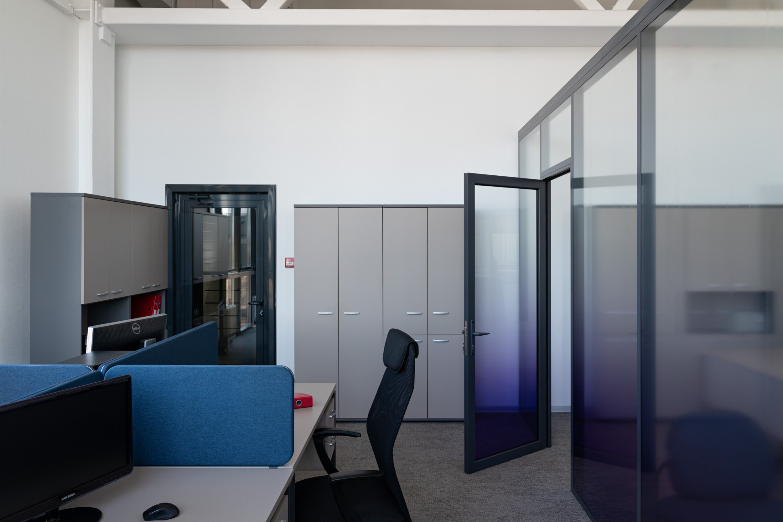 Особое внимание было уделено функциональному зонированию. Важно было соблюсти санитарные, пожарные и технологические нормы, организовав маршруты так, чтобы сотрудники могли свободно взаимодействовать, но не пересекались там, где это недопустимо. Мы предусмотрели специальный балкон вдоль цеха, связывающий административный блок с производственной частью. Он позволяет быстро перемещаться между кабинетами и рабочими зонами, не теряя времени на лестницы и длинные переходы.