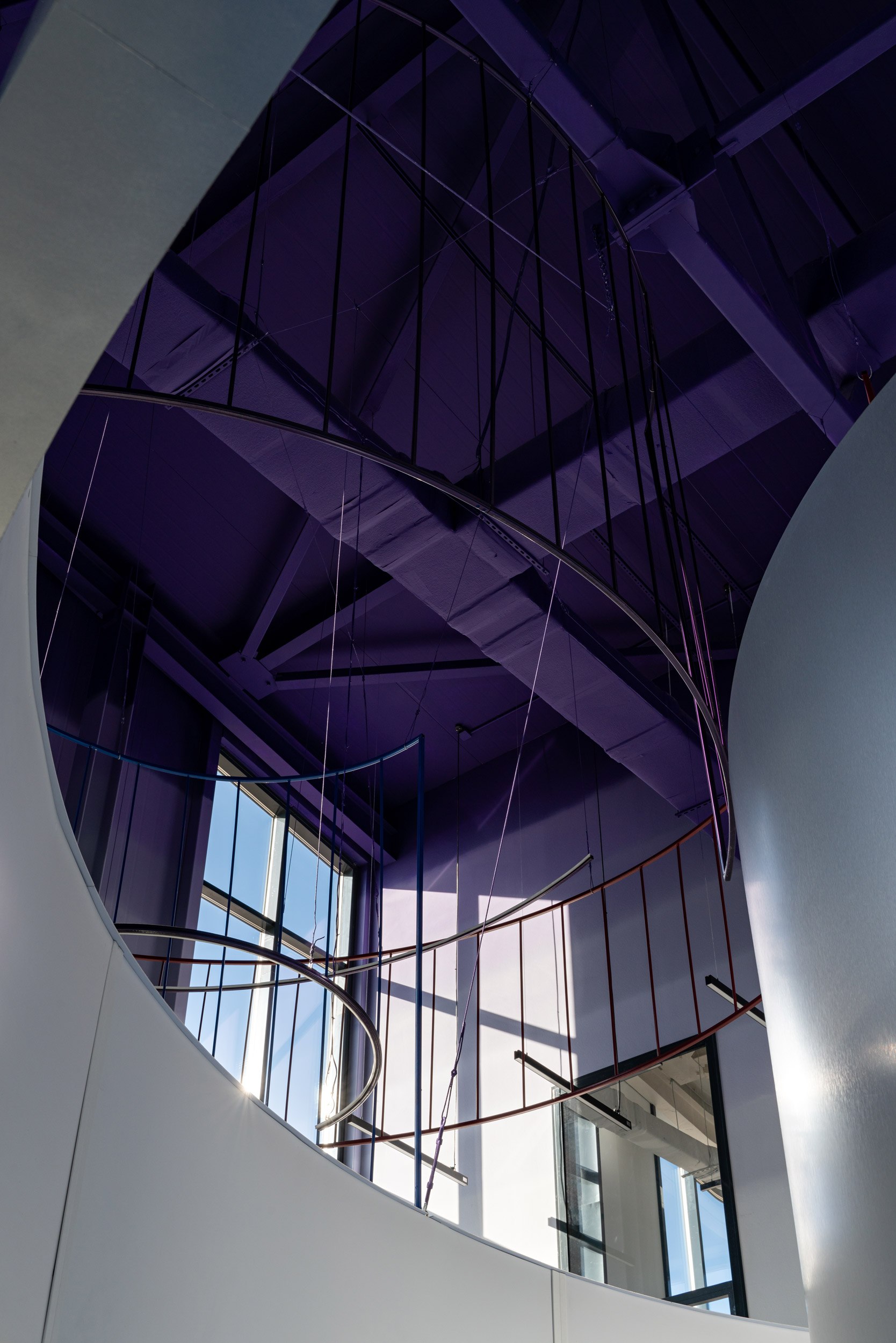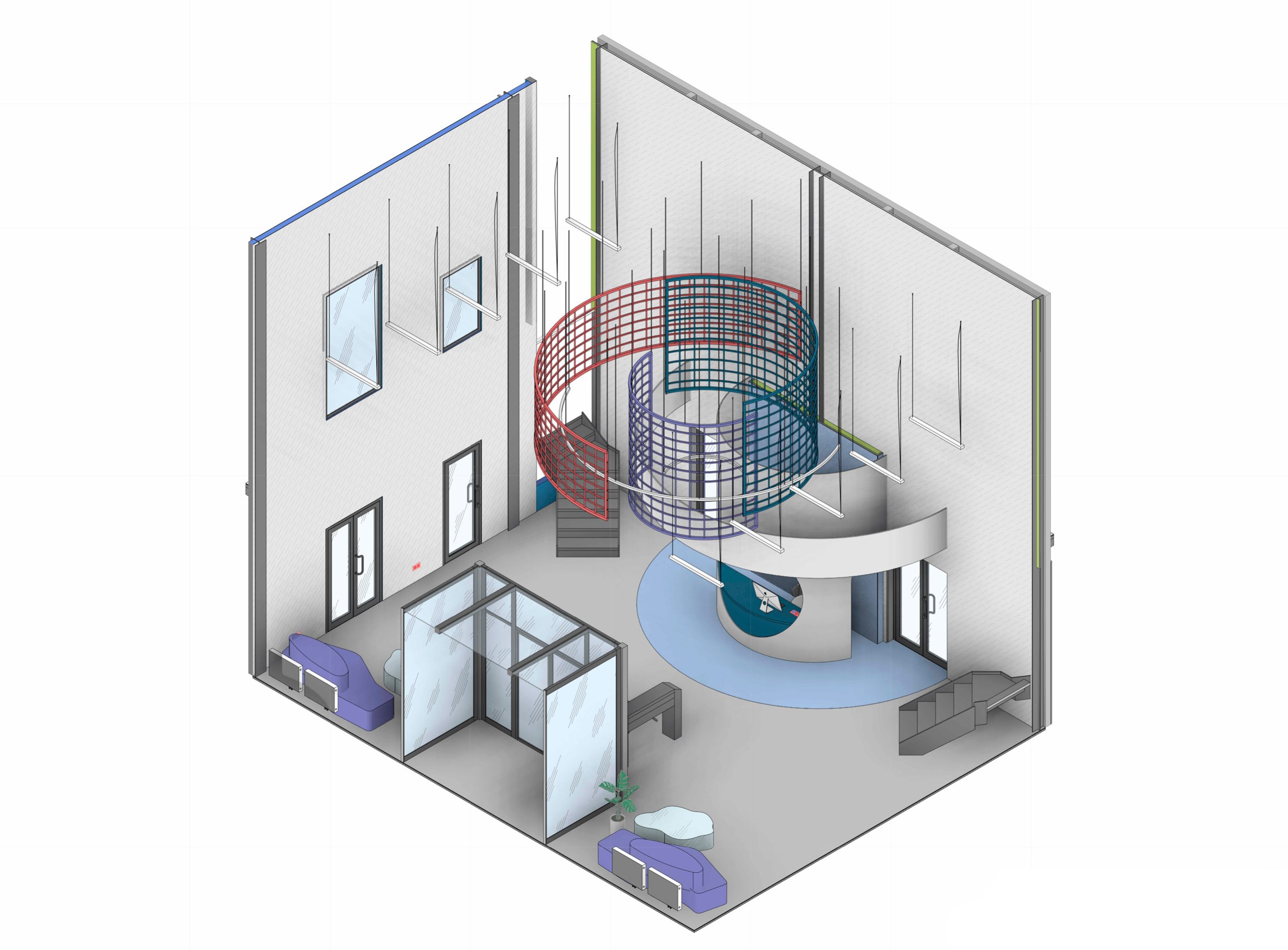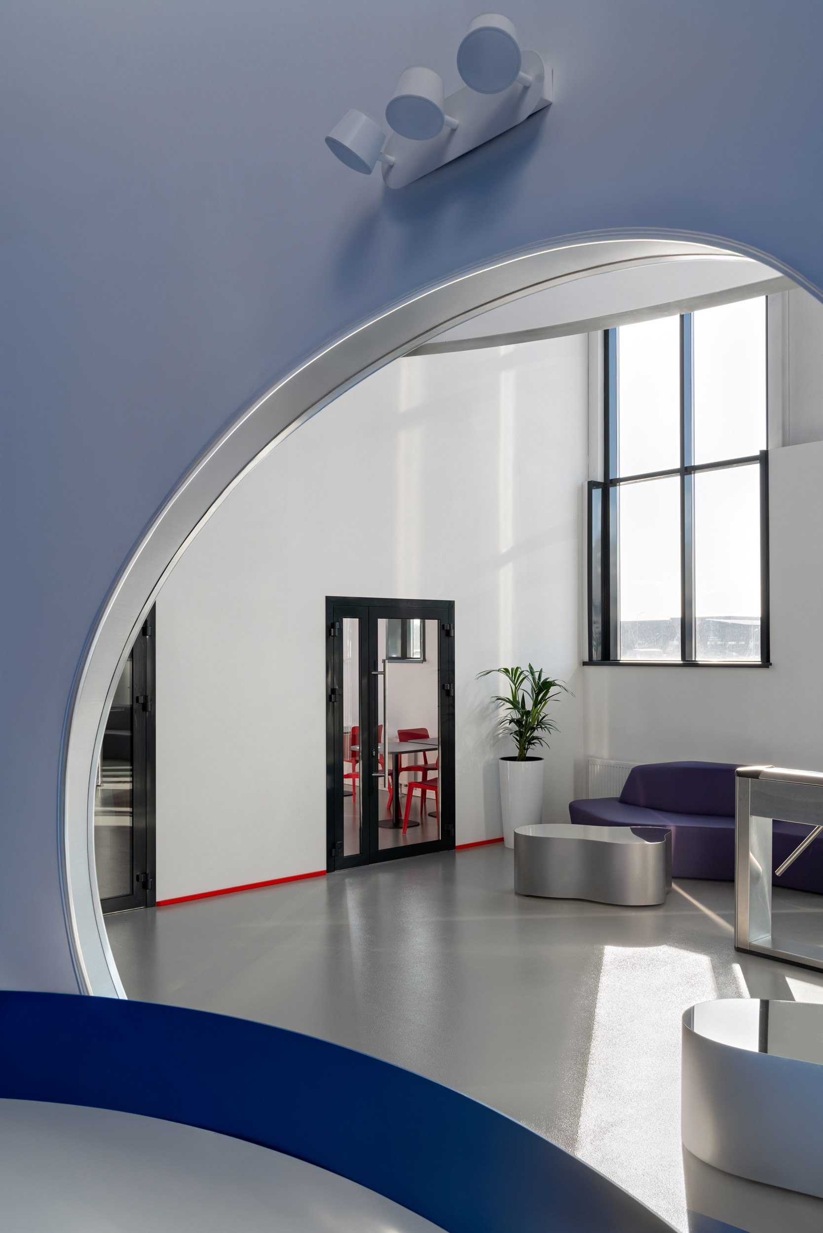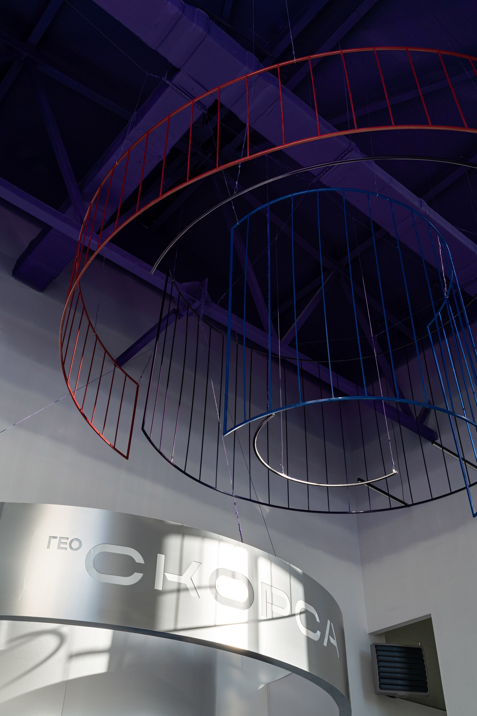 Концепция интерьера строилась на образах потока, энергии и вихря – метафорах, связанных с работой газотурбинного двигателя, который выпускается на этом заводе. Мы стремились передать ощущение движения и технического прогресса через архитектуру, пластику, свет и материалы.