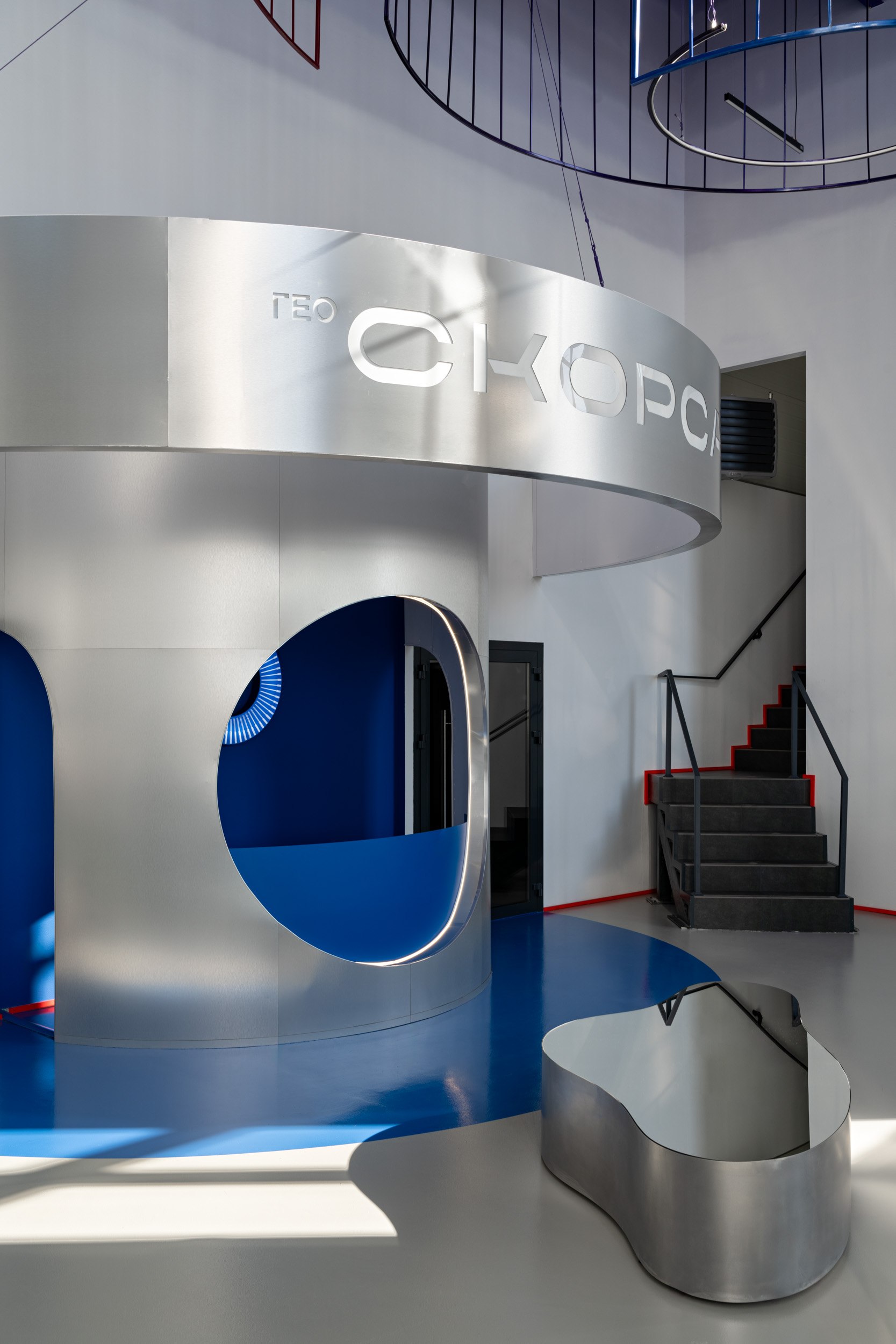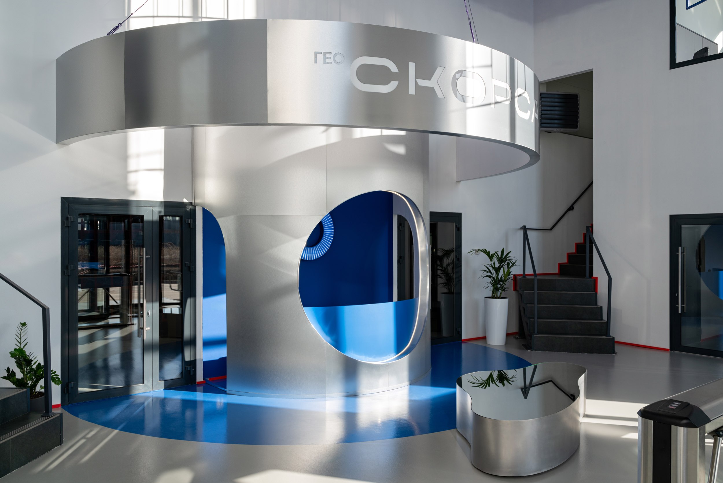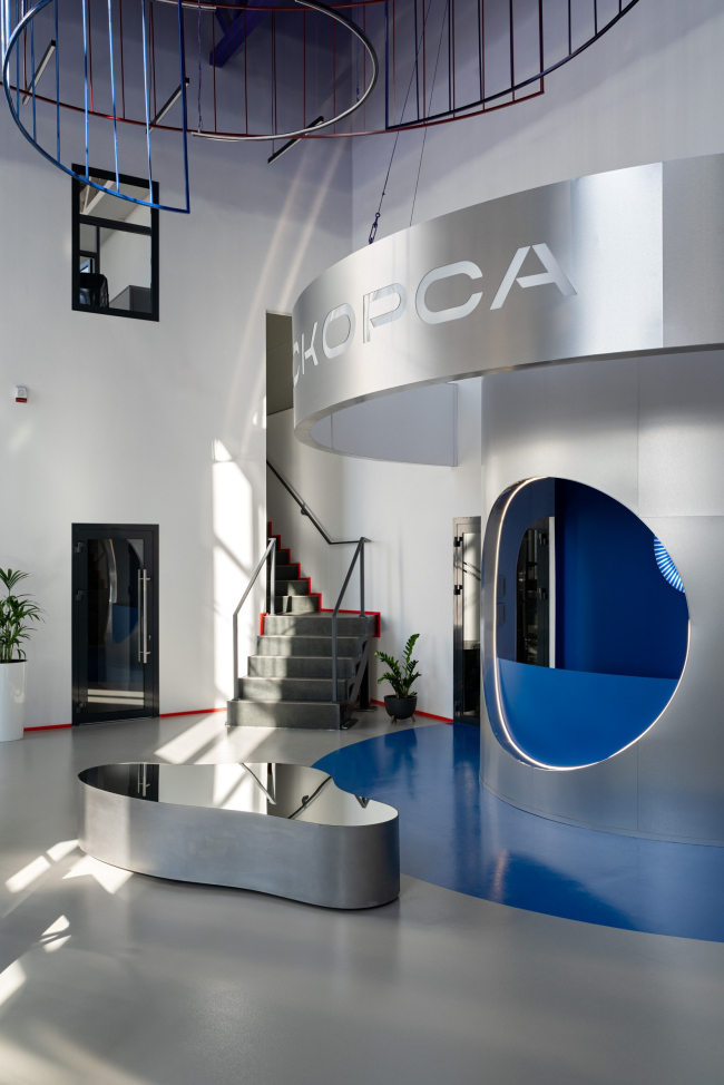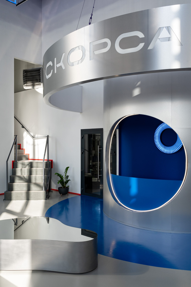 «Скорса» – это современное высокотехнологичное производство, одно из передовых в своей отрасли. Здесь используется сложнейшее оборудование, автоматизированные процессы, и всё построено на точности, скорости и эффективности. Поэтому и интерьер не мог быть оформлен в классическом промышленном ключе. Он должен был стать дерзким, футуристичным, визуально мощным и при этом продуманным до мелочей.