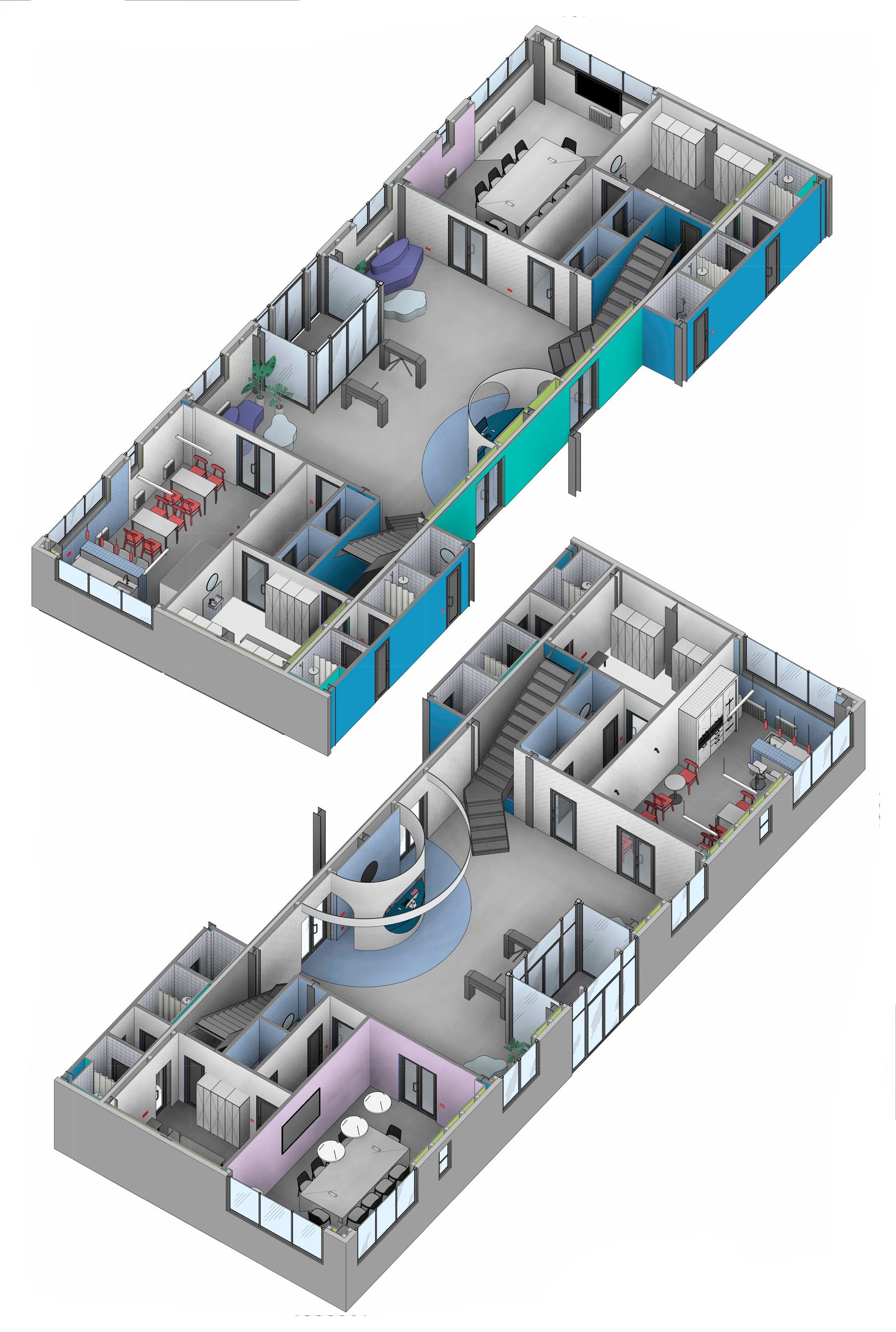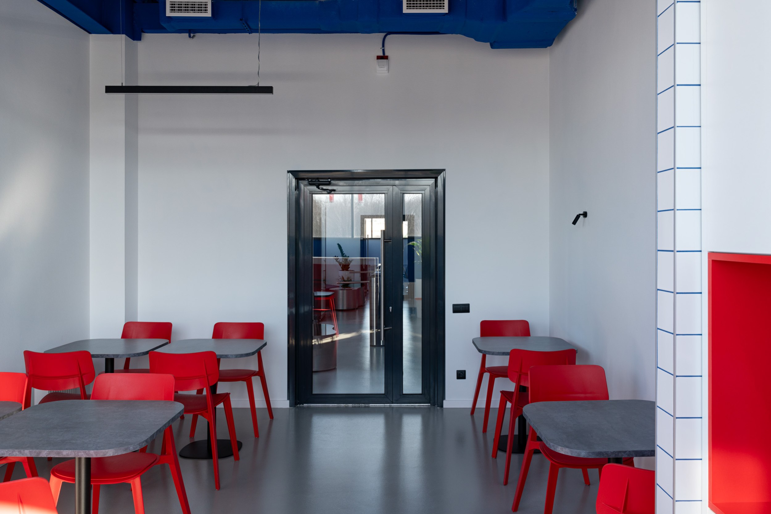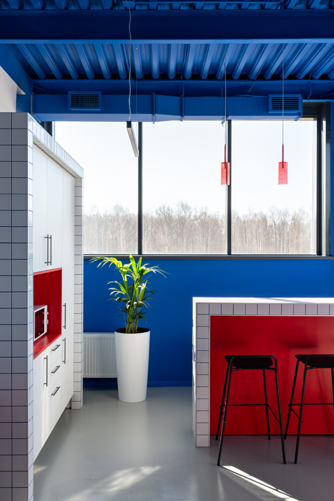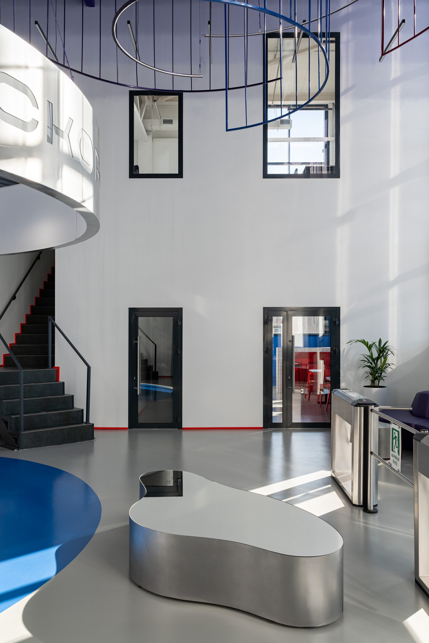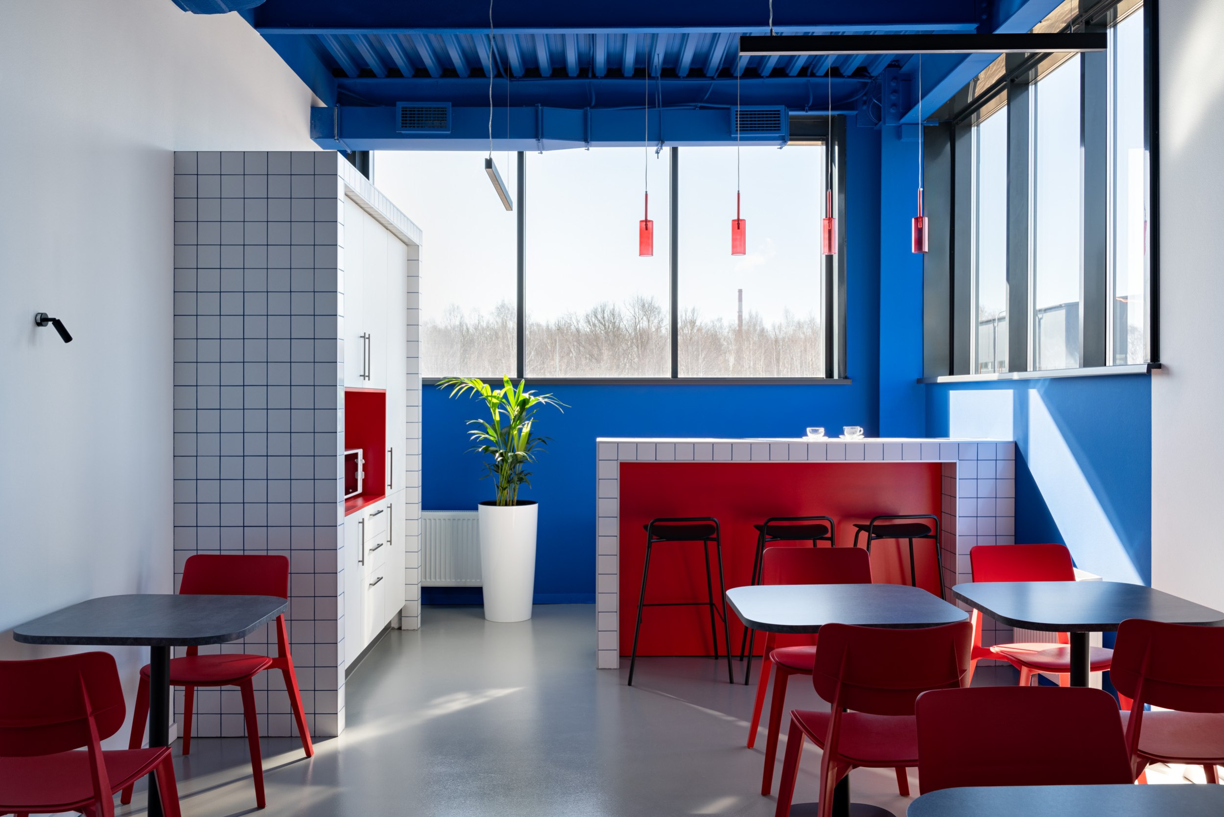Такое разделение и организация пространства об еспечивает комфорт и приватность для всех с отрудников.В архитектурном и дизайнерском решении ключевым источником вдохновения стал фирменный стиль компании. Мы смело и уверенно использовали фирменные цвета, создав динамичную композицию, построенную на работе с яркими цветовыми акцентами. При этом пространство оставалось визуально чистым, воздушным, без излишней нагрузки, где каждое цветовое пятно работает как элемент структуры и ритма. Мы сознательно стремились изменить традиционное
