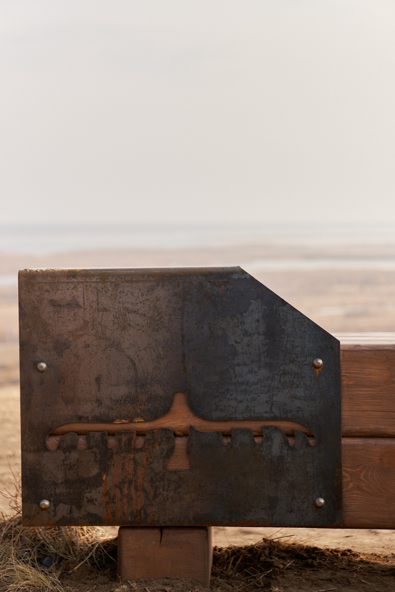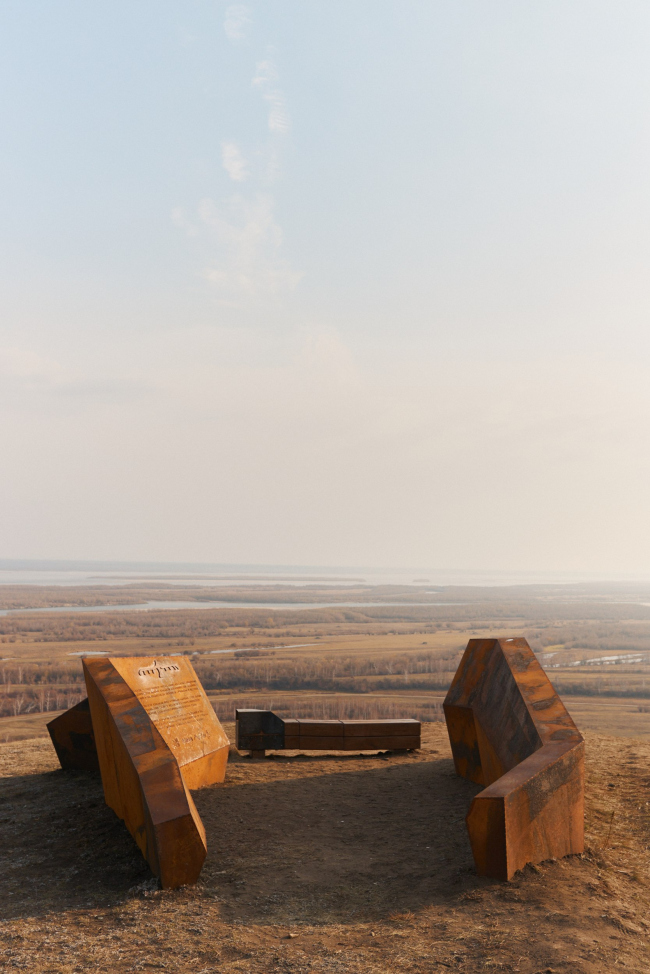 Для реализации выбран кортен – материал, который «стареет красиво» и естественно взаимодействует с климатом. Его поверхность окисляется, образуя патину, похожую на следы времени, ветра и холода.