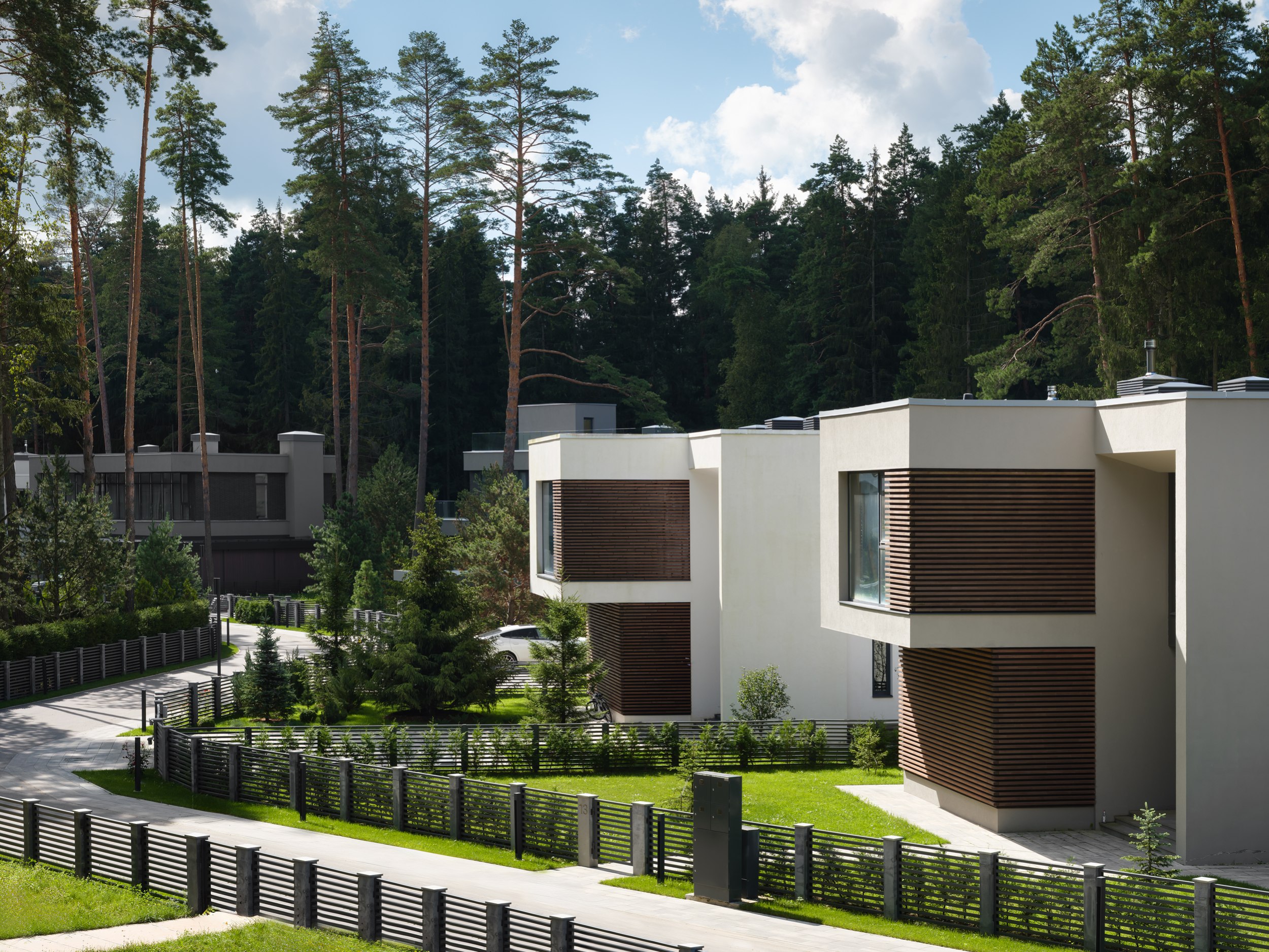 Дома формируют целостный архитектурный ансамбль, в котором соединяются эстетика и функциональность. Каждый дом органично вписан в ландшафт, выдержан в общей стилистике и при этом сохраняет индивидуальность.