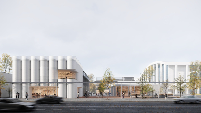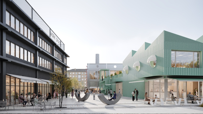 Осью композиции стал променад, к которому примыкают общественные пространства. Каждый объём имеет свой характер: трубы и наружные лестницы на фасадах напоминают о городской мануфактуре, а лёгкие витражи и металлические ламели создают игру света и отражений.