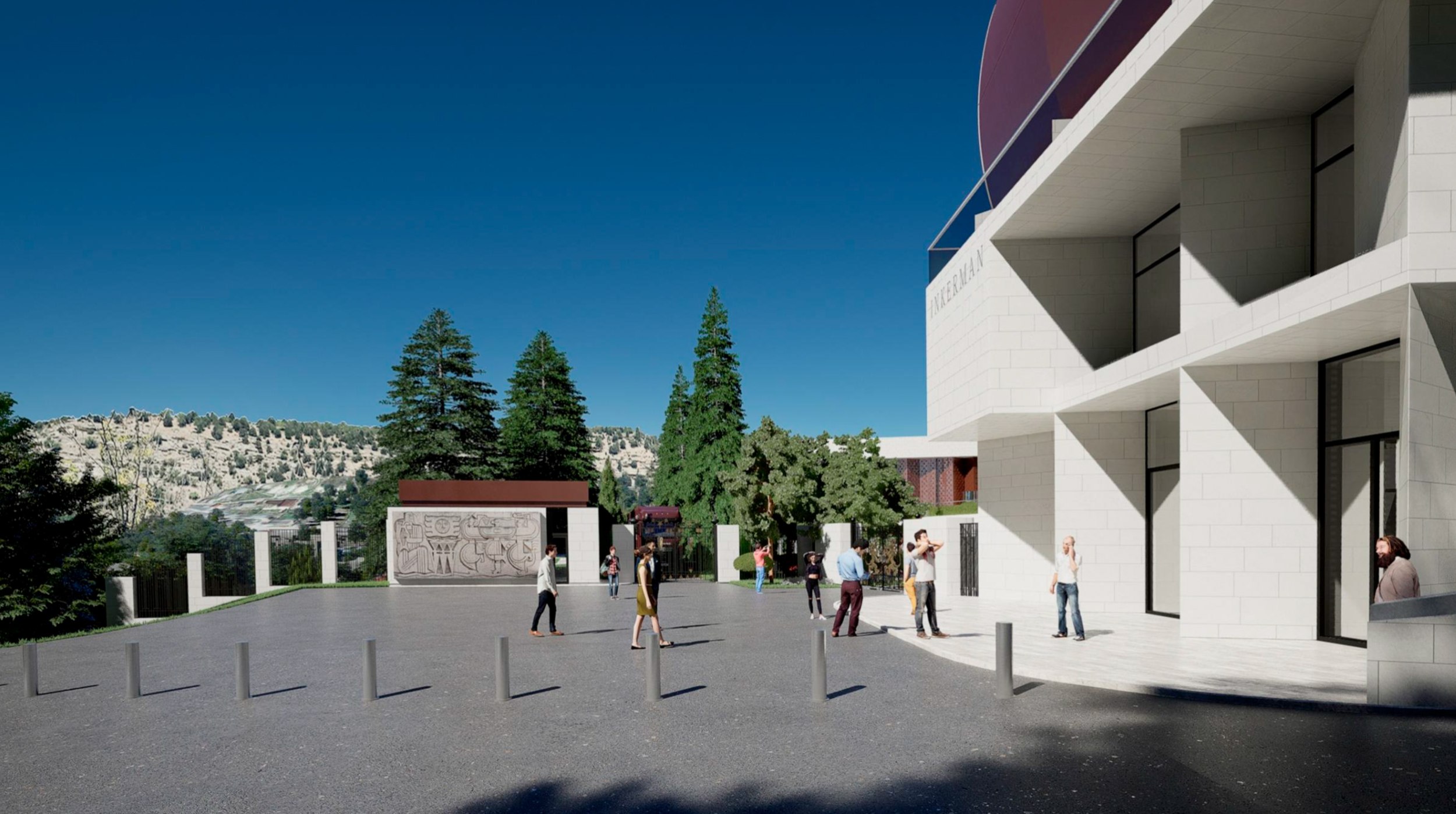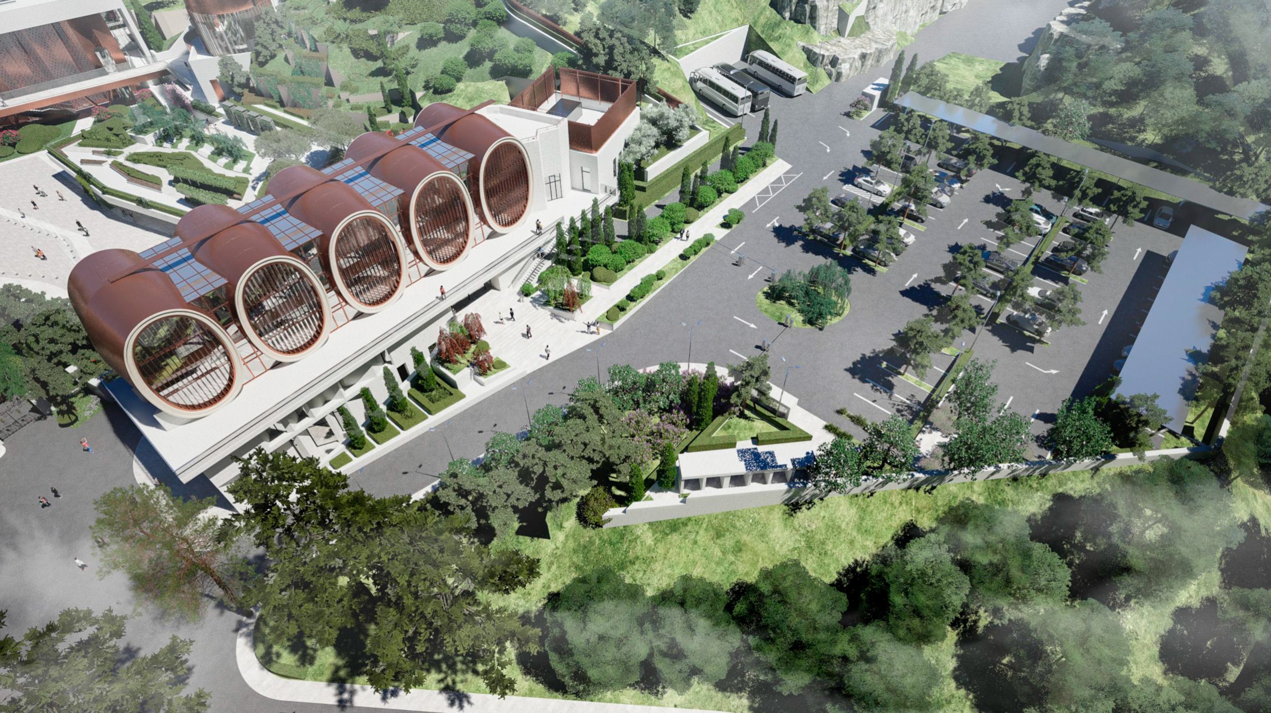 Проект реконструкции Инкерманского завода марочных вин. Вид на парк на кровле нового экскурсионного центра с антресоли ресторана