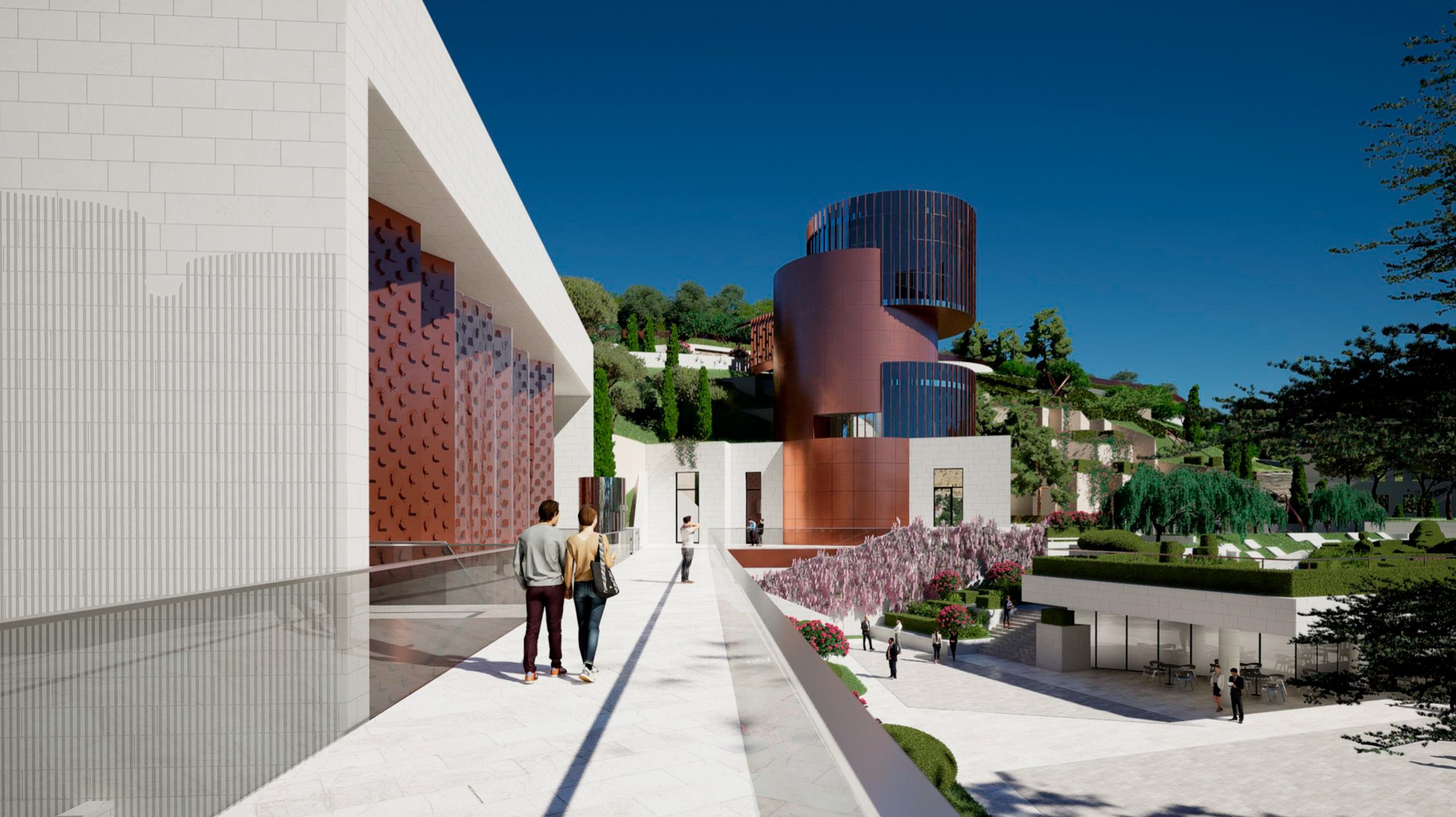 Проект реконструкции Инкерманского завода марочных вин. Вид на новое здание ПСК с террасы VIP дегустационного зала