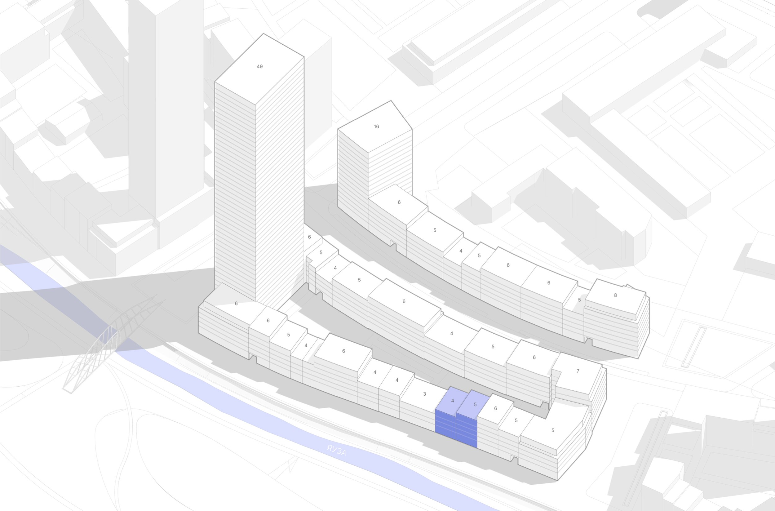 Бюро СИВИЛ участвовало в конкурсе на разработку архитектурной концепции урбан-блока. Девелопер FORMA распределил секции комплекса апартаментов между несколькими бюро, чтобы каждая команда представила своё видение в рамках общей концепции.