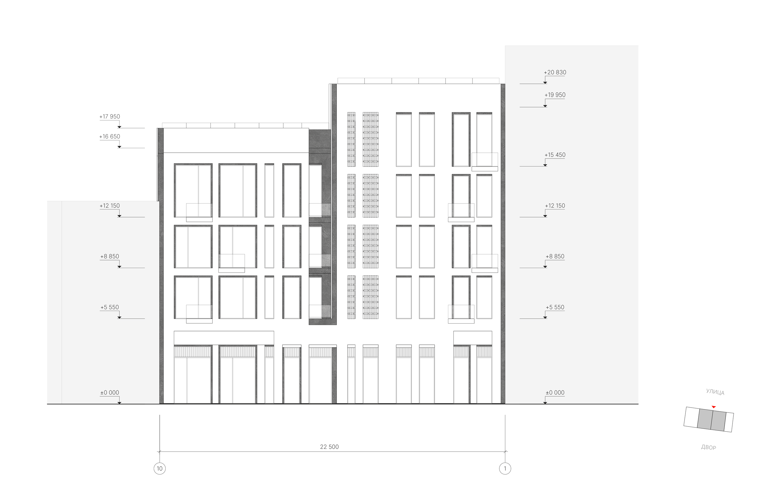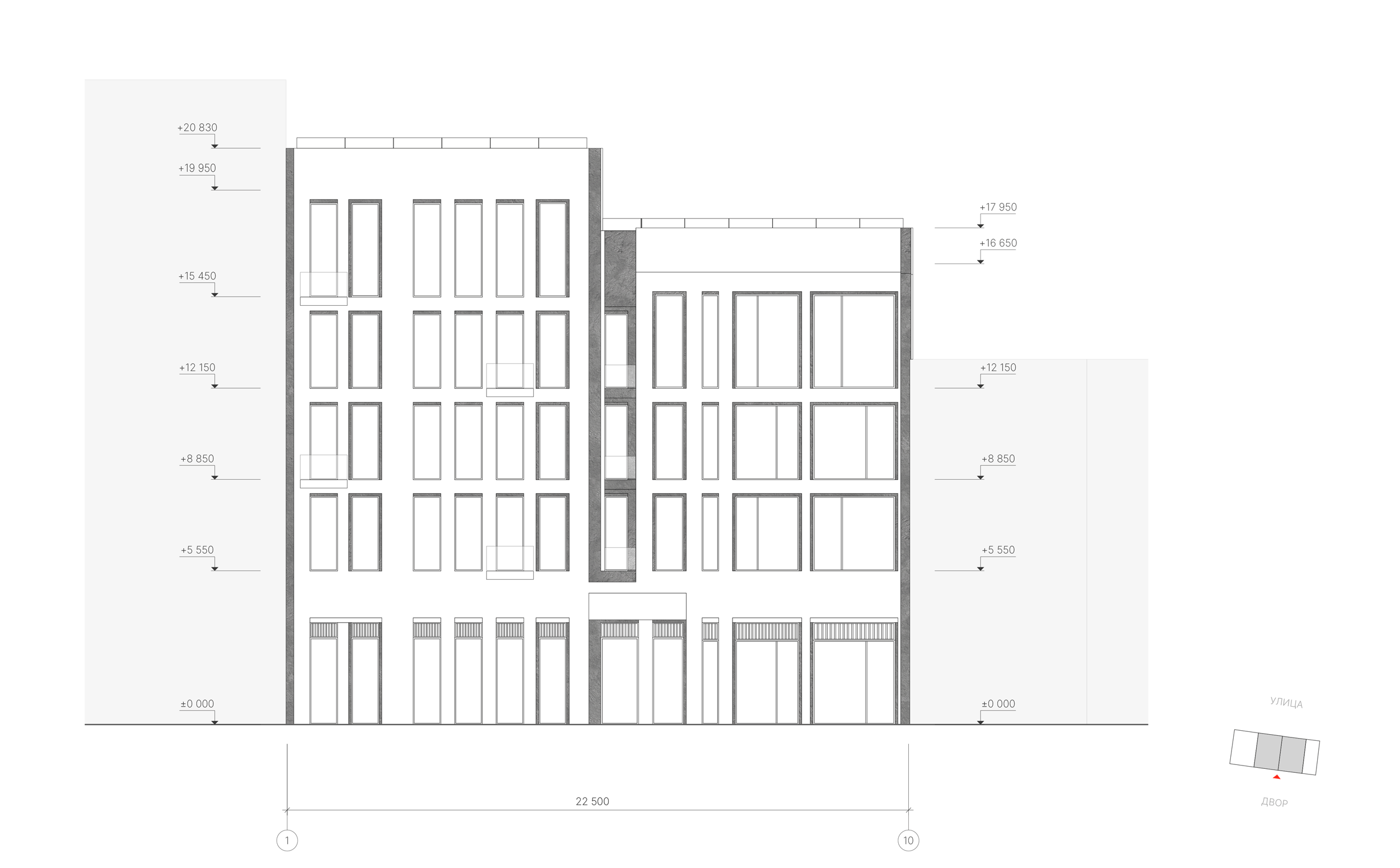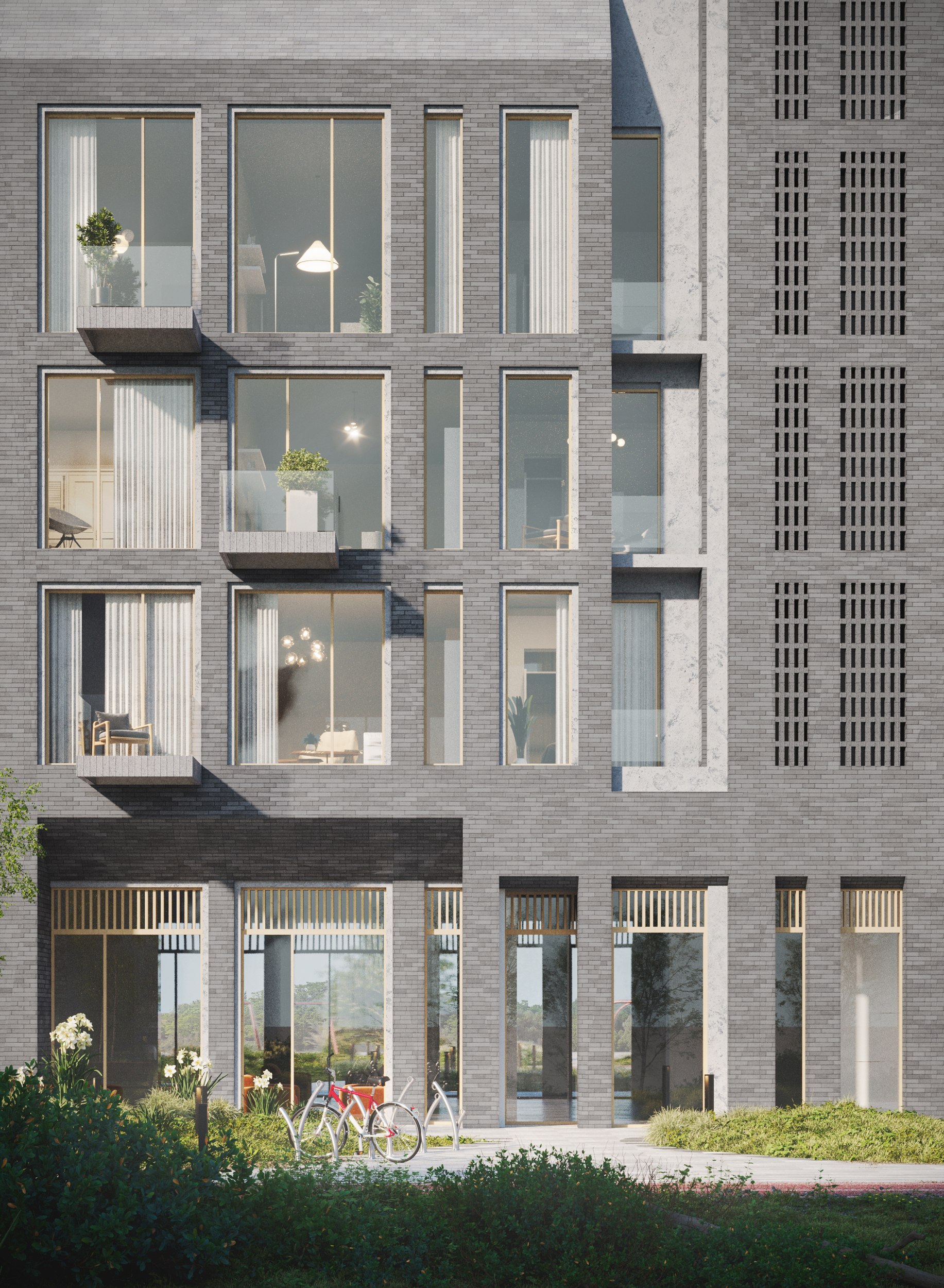 Перед архитекторами стояла задача создать апартаменты с панорамными окнами и террасами, продумать объёмные решения и сформировать непрерывный фронт вдоль воды. В проекте должны были появиться возможные отступы на верхних этажах, лоджии, французские балконы, разнообразные дворовые фасады и скрытая интеграция инженерных элементов.