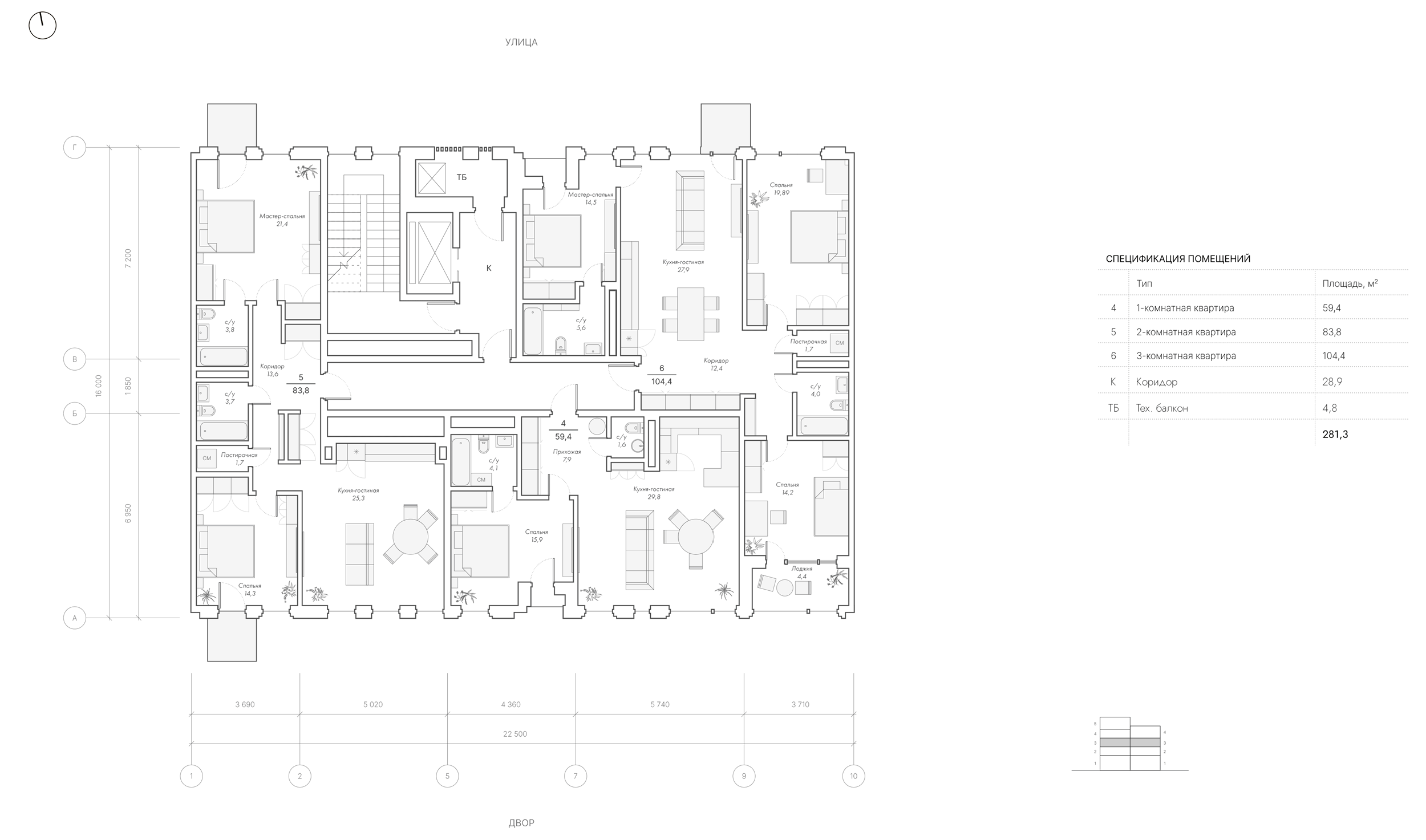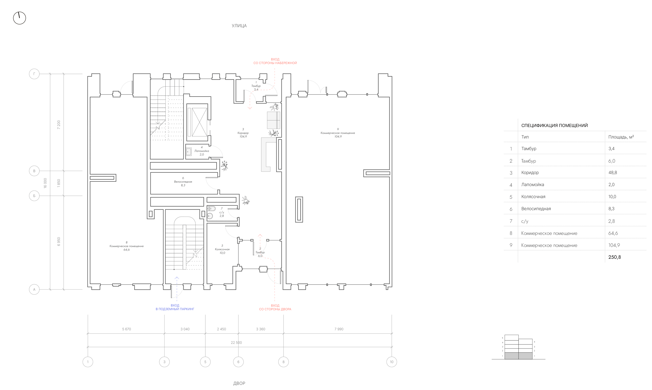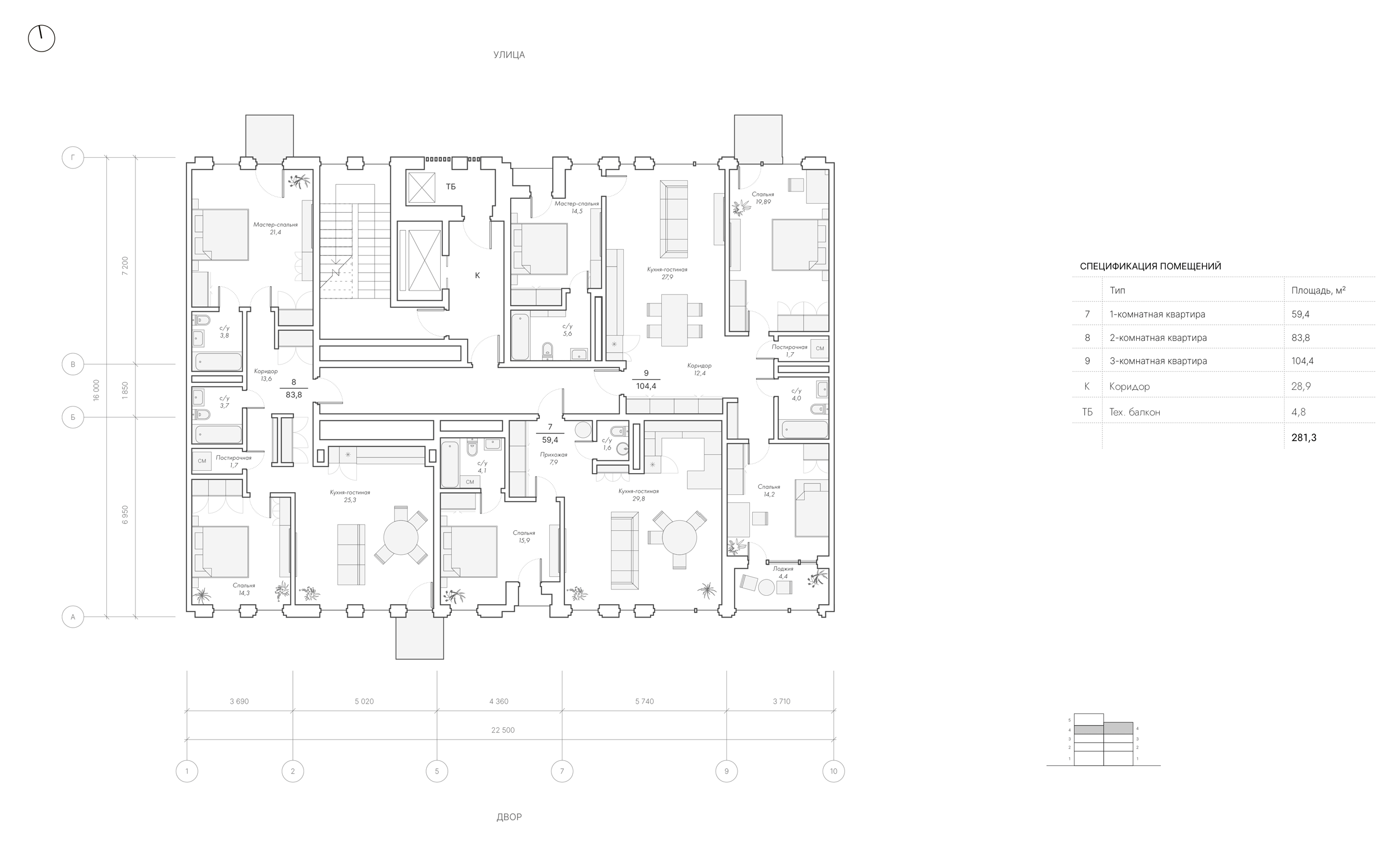Перед архитекторами стояла задача создать апартаменты с панорамными окнами и террасами, продумать объёмные решения и сформировать непрерывный фронт вдоль воды. В проекте должны были появиться возможные отступы на верхних этажах, лоджии, французские балконы, разнообразные дворовые фасады и скрытая интеграция инженерных элементов.