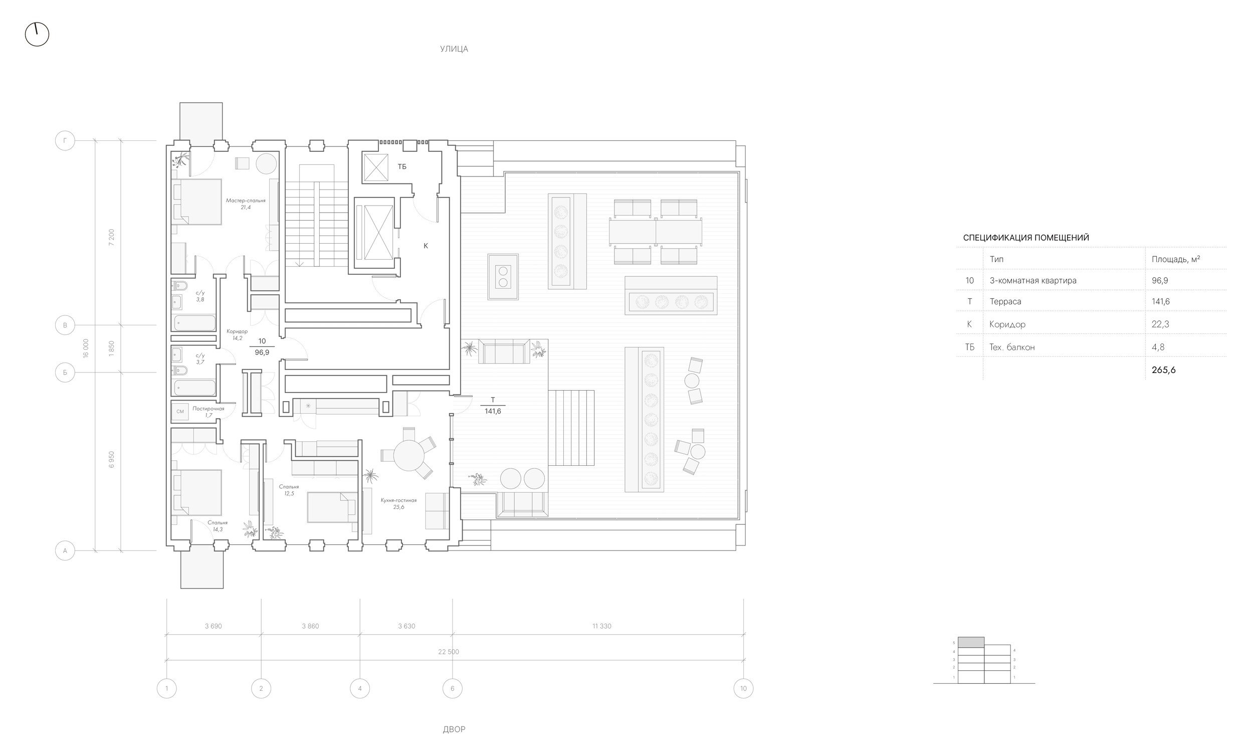 Небольшая этажность и панорамные окна, ориентированные на набережную, создают лёгкое туристическое настроение, а строгая пластика фасадов подчеркивает приверженность бюро минимализму. Так рождается культурная отсылка к одноимённому флорентийскому мосту – настроение повседневной городской поэзии: позднее утро у воды, свет, просачивающийся сквозь ткань штор, запах кофе и цветов, тишина, в которой слышен лёгкий скрип старого проигрывателя.
