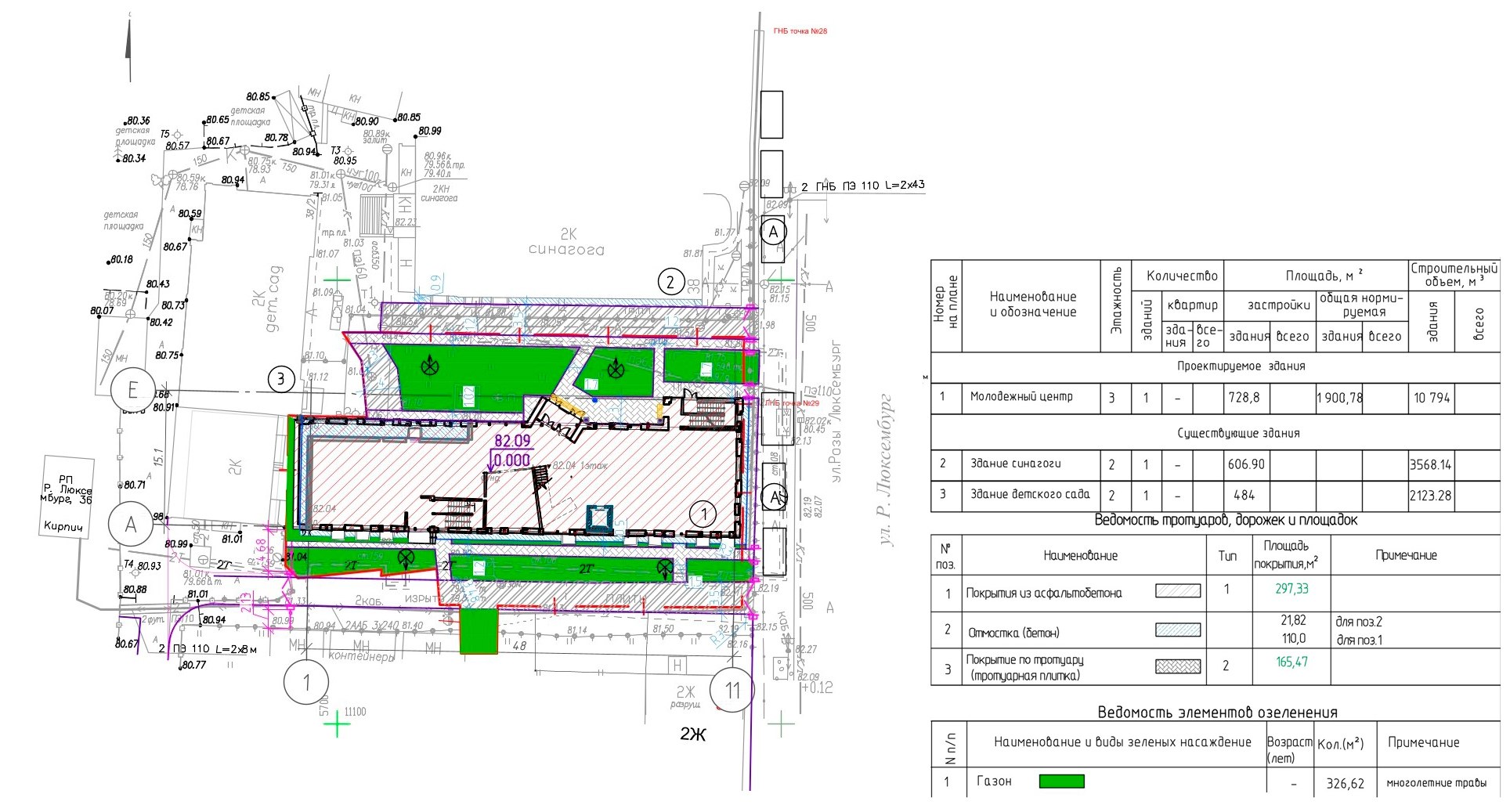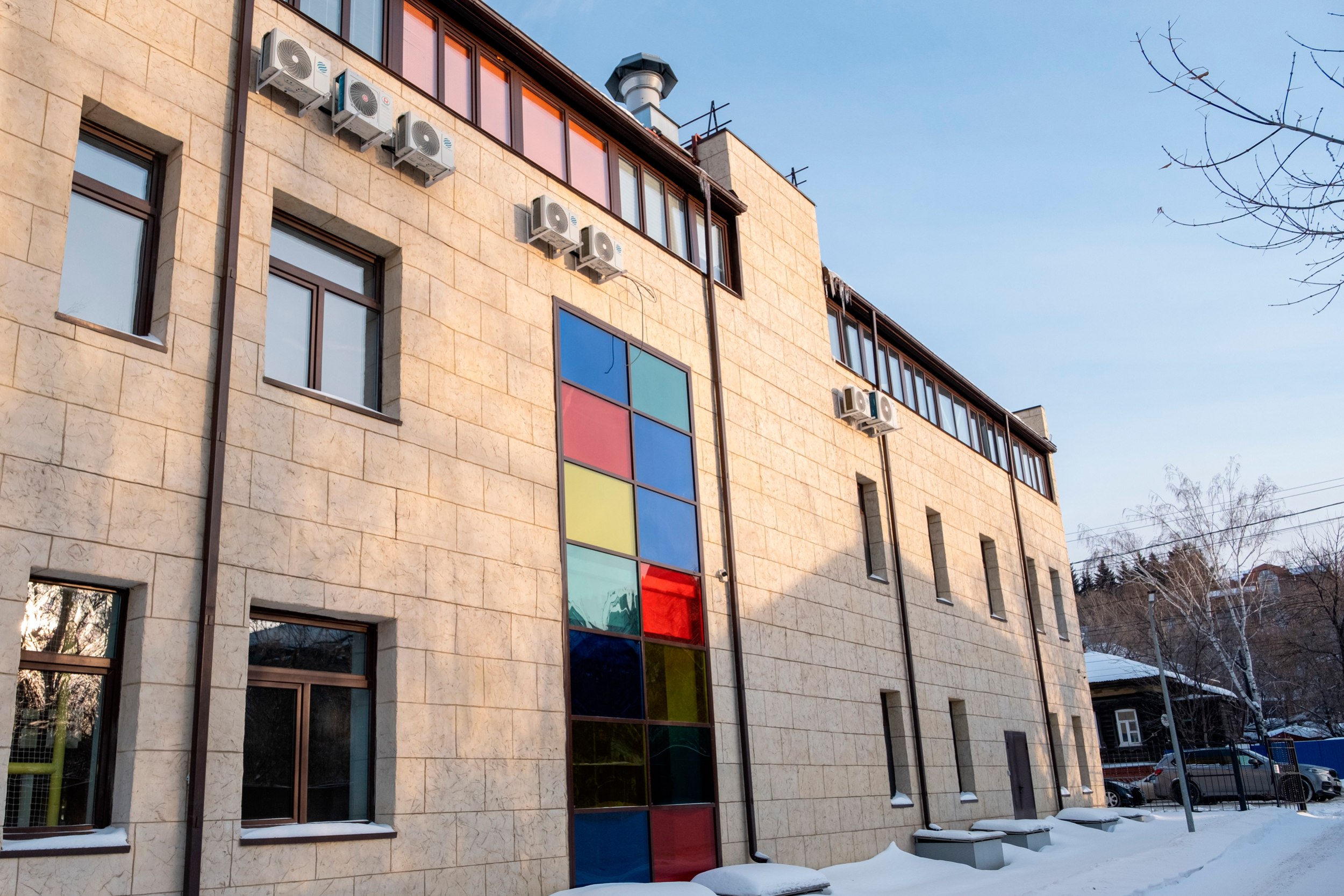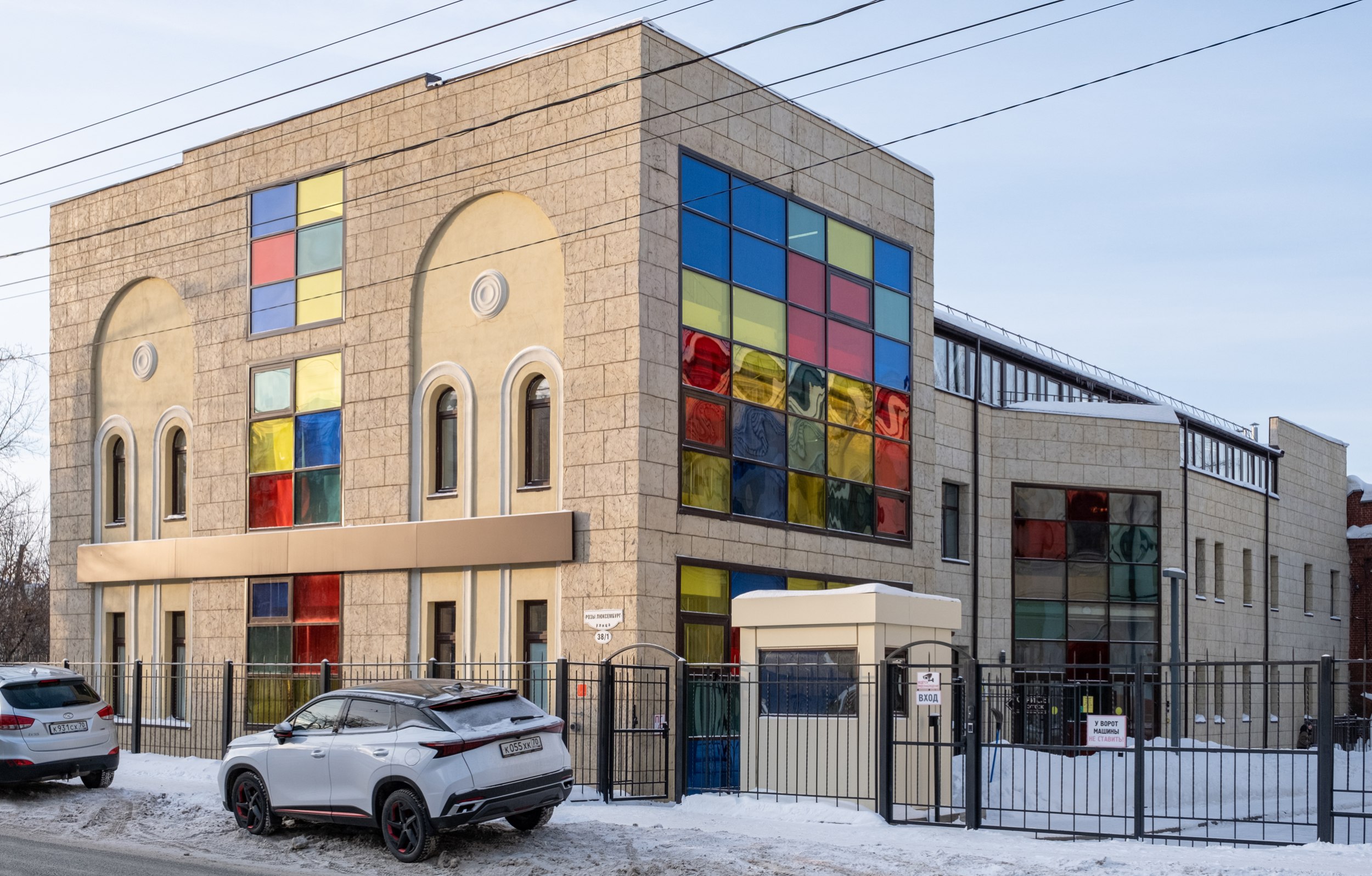 Двухэтажное здание молодежного еврейского центра предназначено для обучения и развития детей дошкольного и младшего школьного возраста. Группы рассчитаны на шесть человек, предусмотрены игровая, буфет и классы развивающих занятий. В здании предусмотрен подвал.