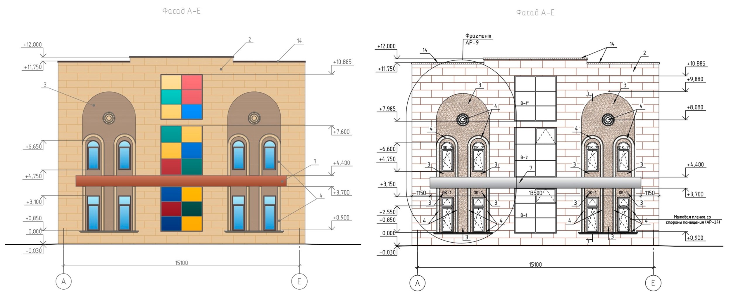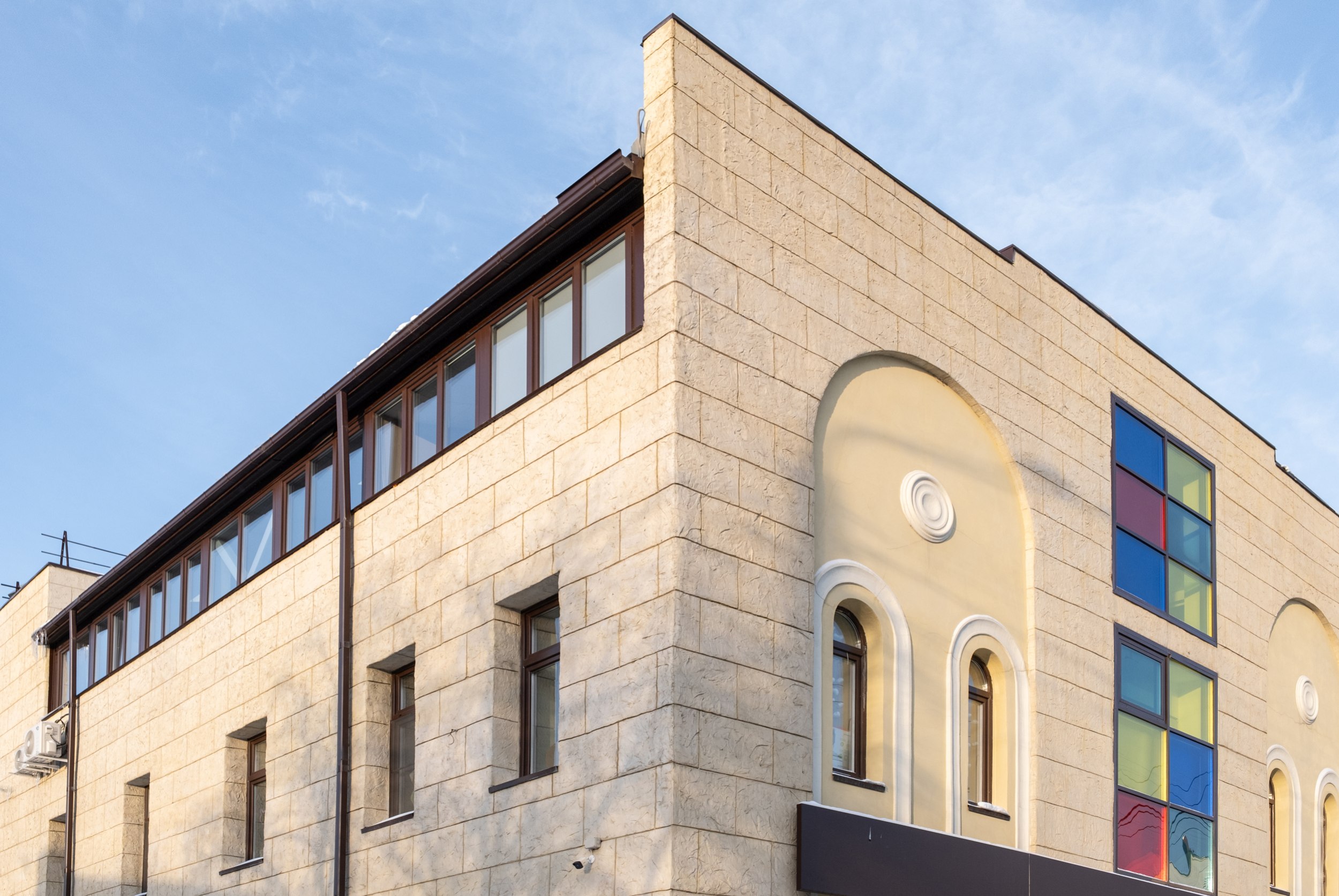 Декоративные элементы фасадов по стилистике перекликаются с архитектурно–художественным решением фасадов здания синагоги, благодаря чему здание еврейского центра гармонично вписывается в окружающую застройку.