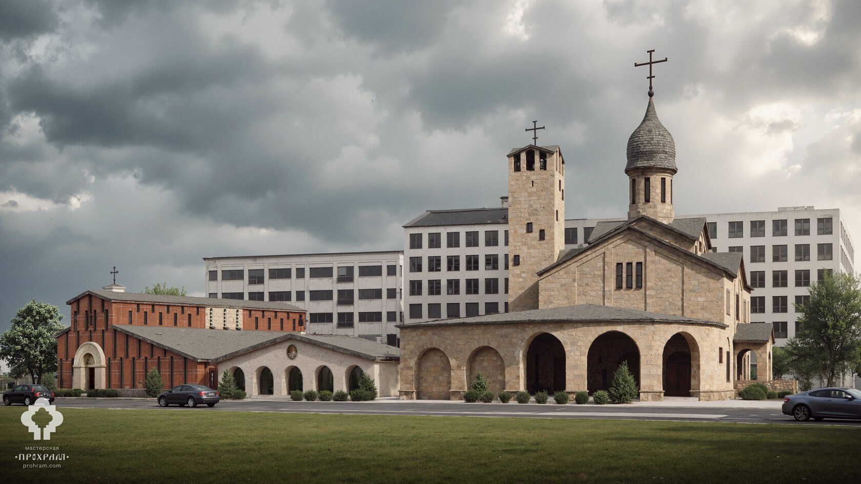 Таким образом, архитектура комплекса становится не просто функциональной средой для проведения богослужений и жизни прихода, но и визуальным отражением объединения двух мощных традиции: романской, с её фундаментальностью, массивностью форм и при этом устремленности вверх, простотой и подлинностью материалов, и неовизантийскую, акцентирующую внимание на развитии во временной горизонтальной оси.